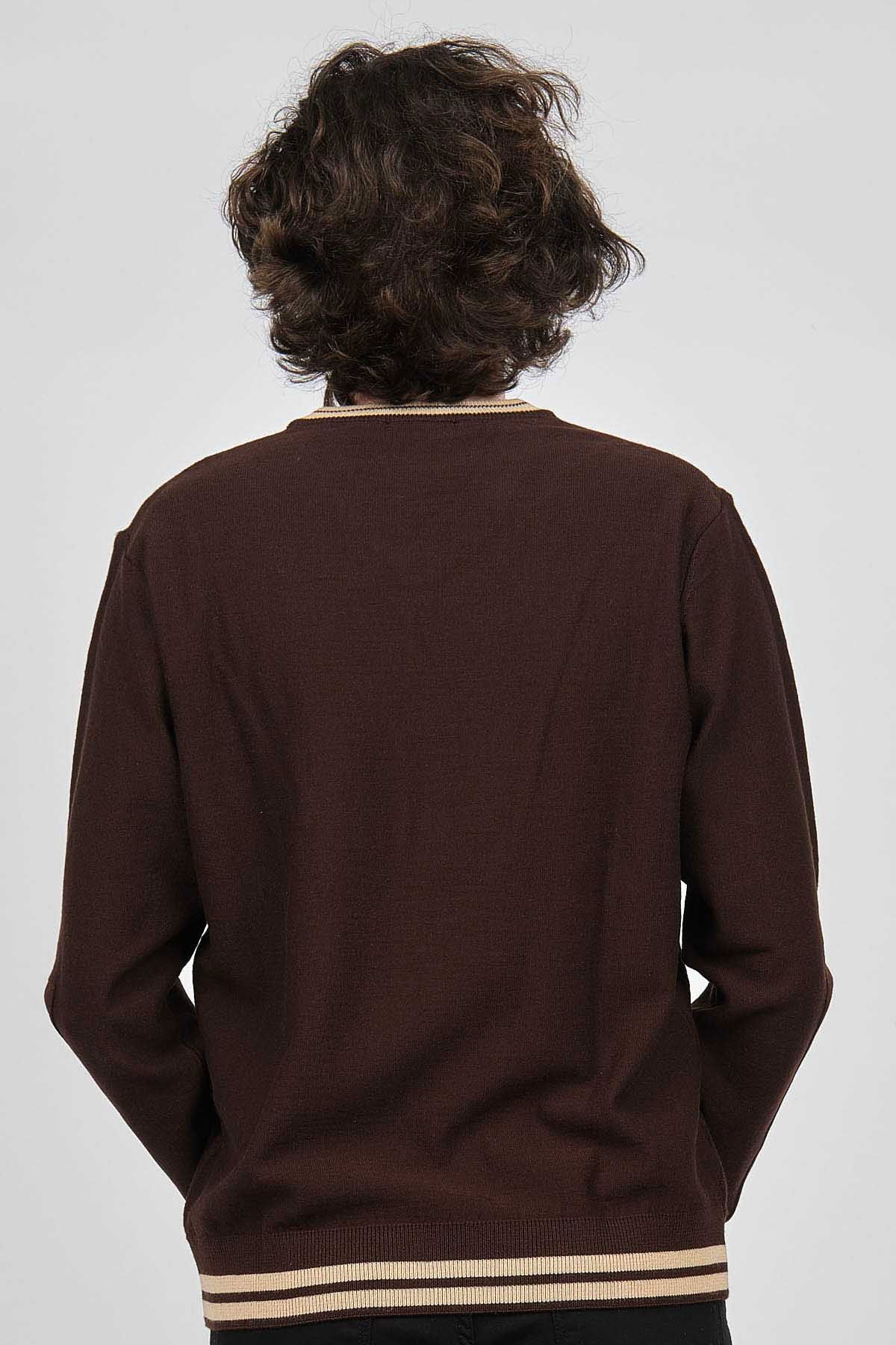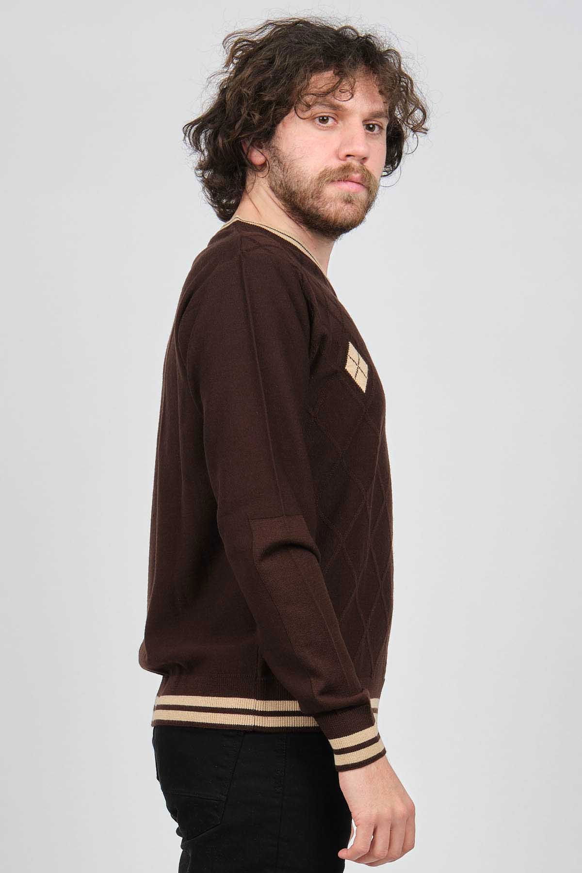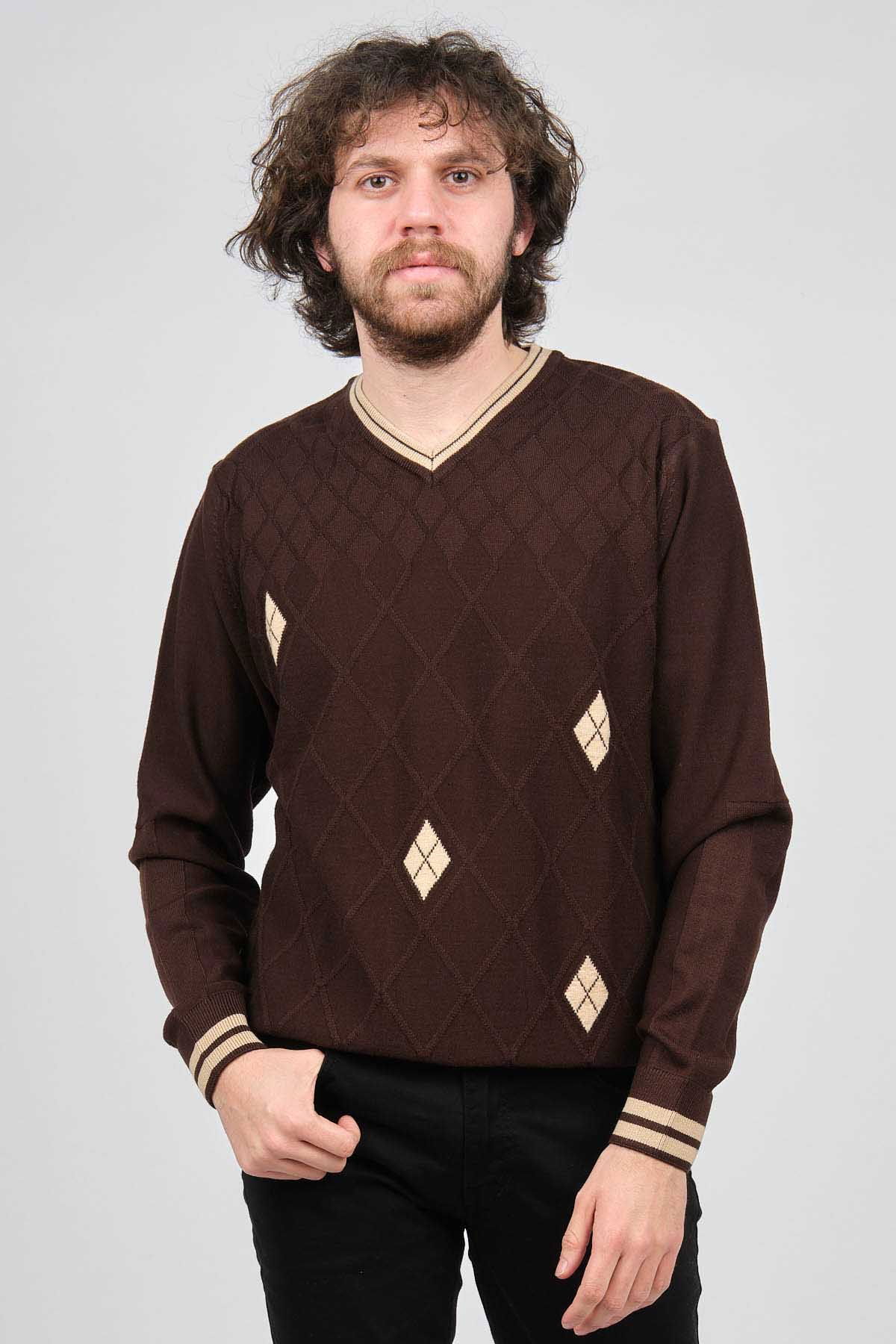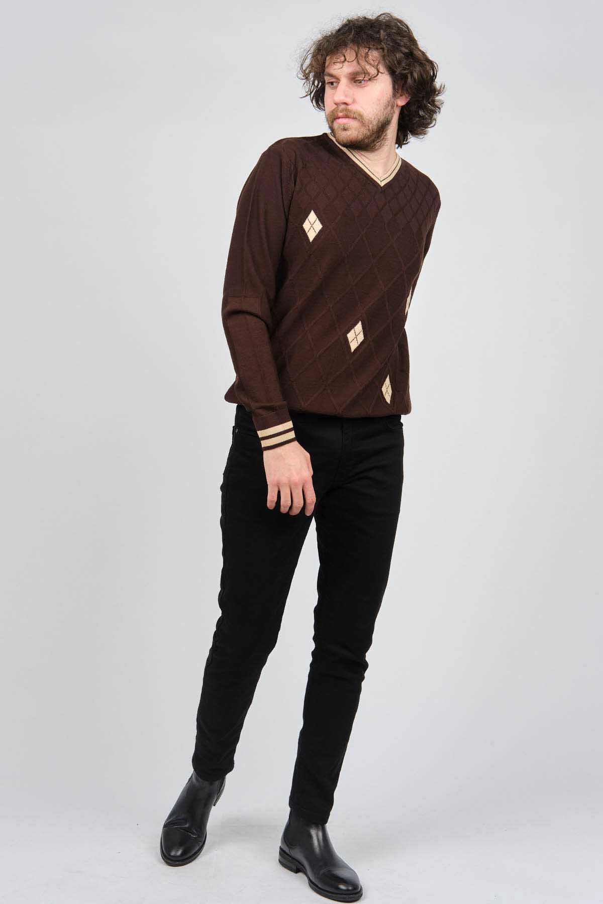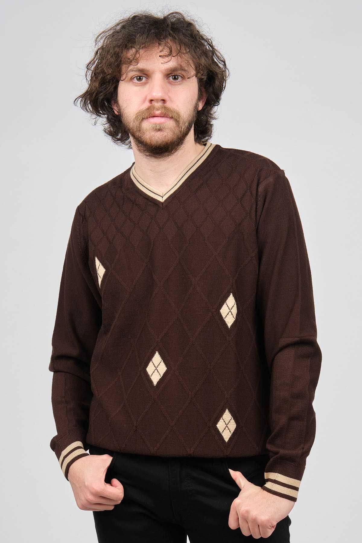 Neyir Erkek V Yaka Baklava Desenli Yün Kazak 1343102 Kahverengi