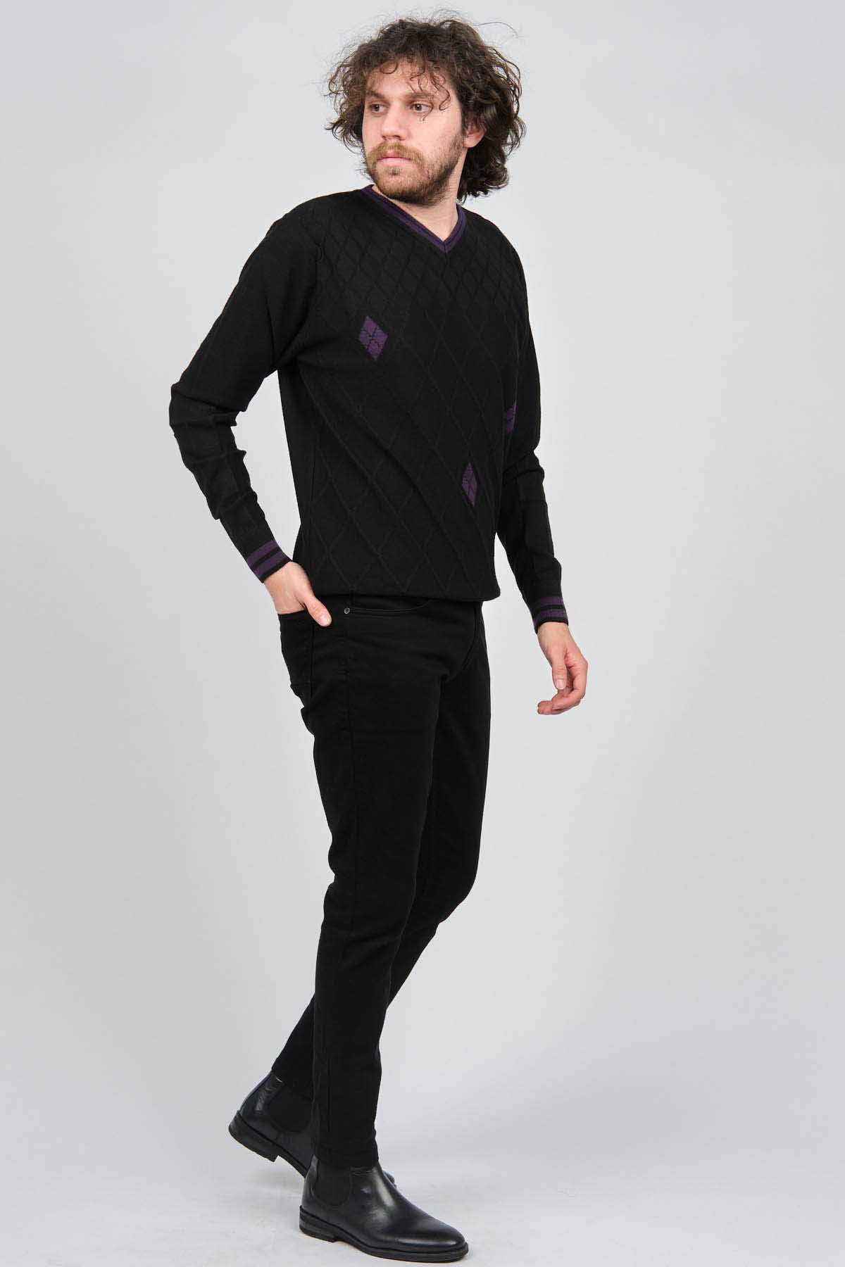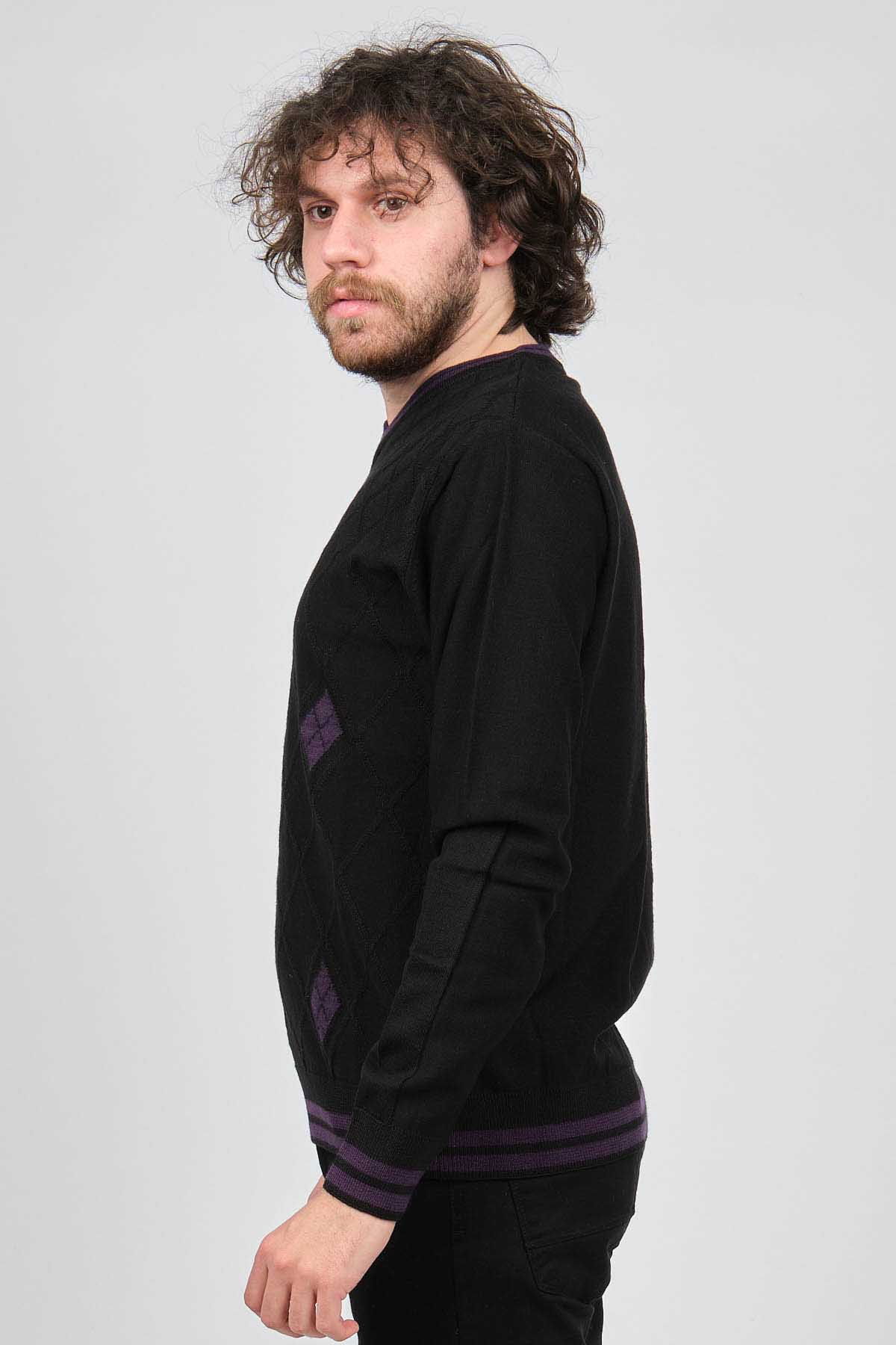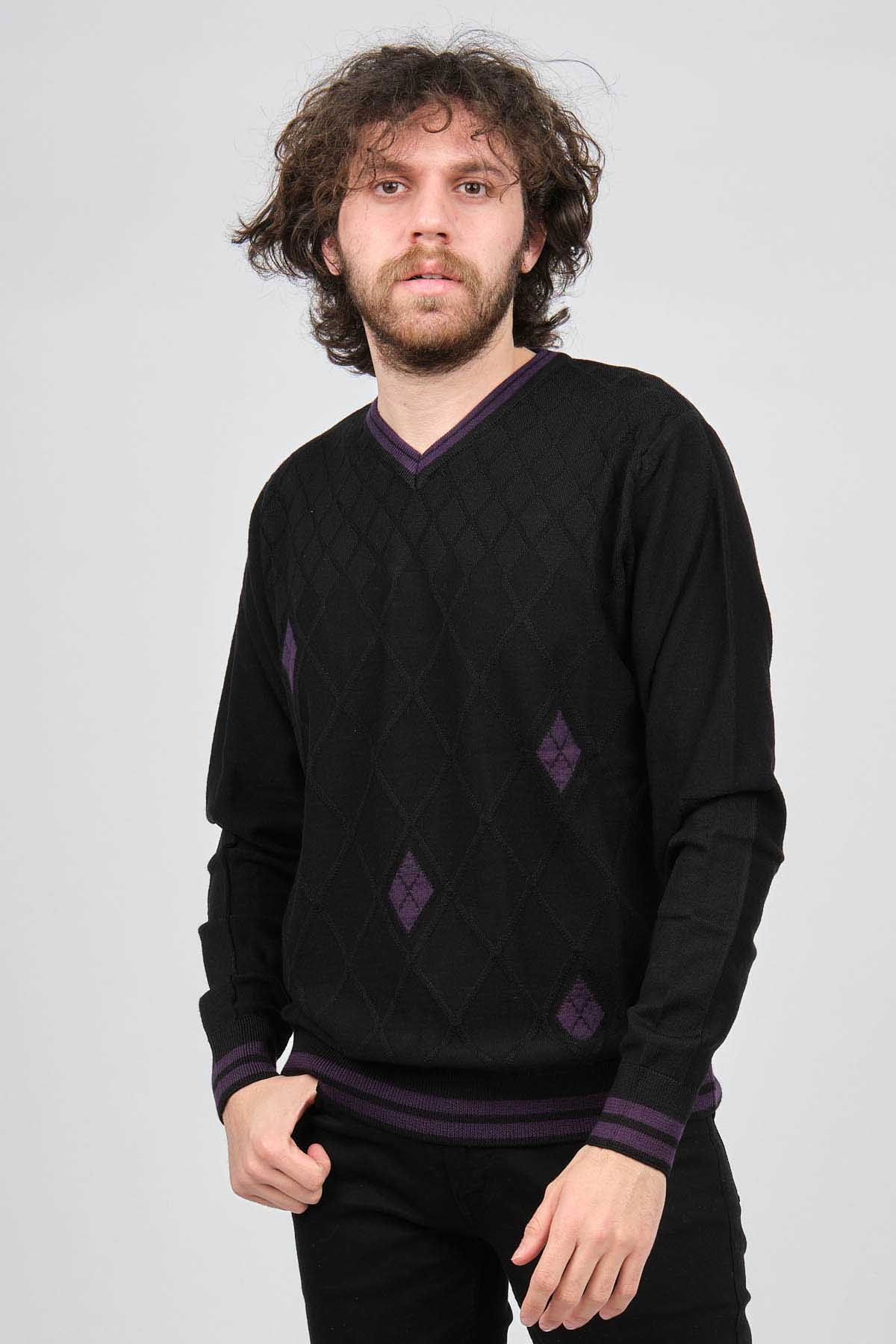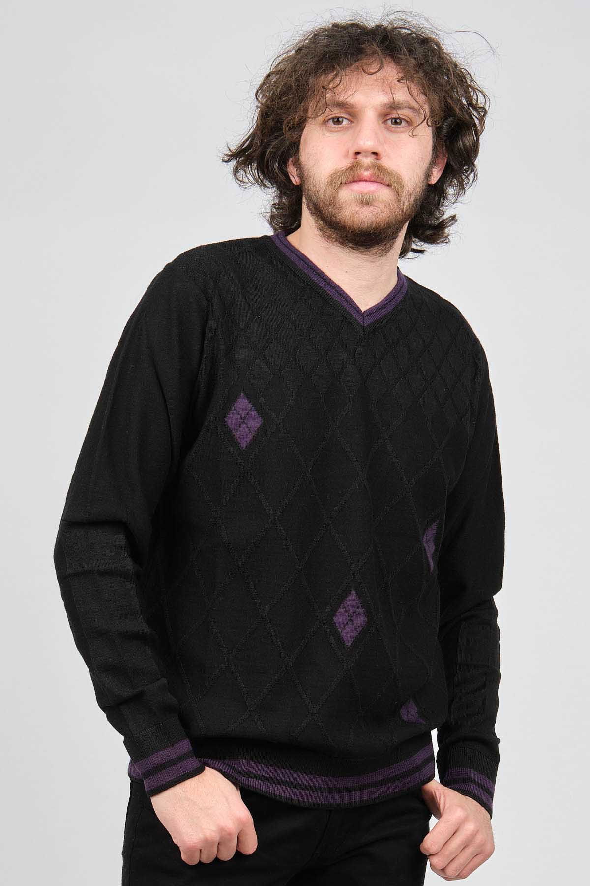 Detay: V yaka, Baklava desenli, Kol ucu yaka ve etek ucu şerit detaylı, Uzun kollu yün kazak;