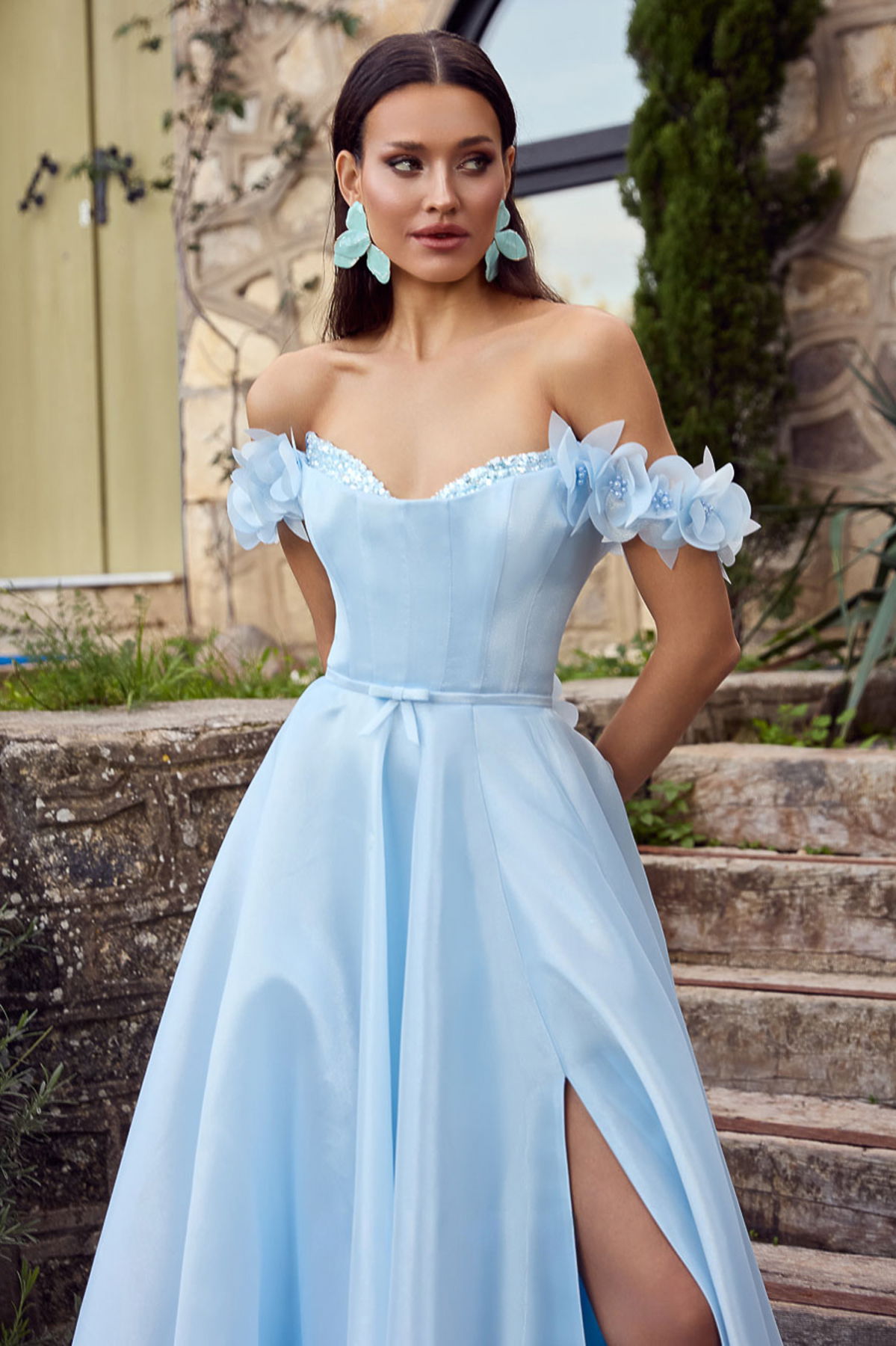 Detay: Saten kumaştan üretilmiş, astarlı ve uzun tasarımıyla zarif bir duruş sergileyen bu abiye elbise; kol ve sırtta yer alan minik çiçek süslemeleriyle romantik bir hava kazanır. Düşük kollu formu ve göğüs kısmındaki taş işlemeleriyle göz alıcı bir şıklık sunarken, fermuar kapamalı yapısı ve belde sabit kemeriyle vücut hatlarını zarifçe ortaya çıkarır. Özel davetlerde ihtişamı ve zarafeti bir arada yaşatmak isteyenler için ideal bir seçimdir.;