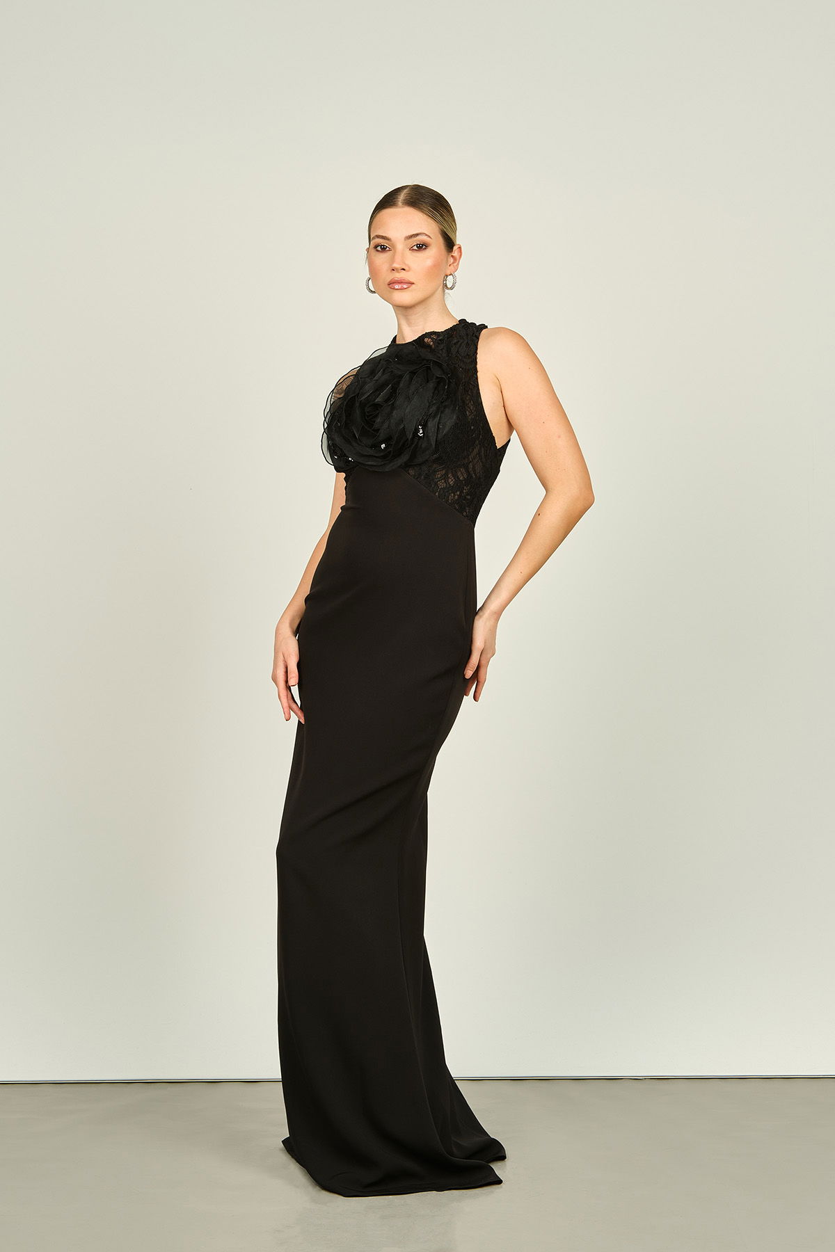 Materyal Bilgisi: Üst beden dantel - gül detayı organze kumaş ve taş - alt kısım krep kumaş ;