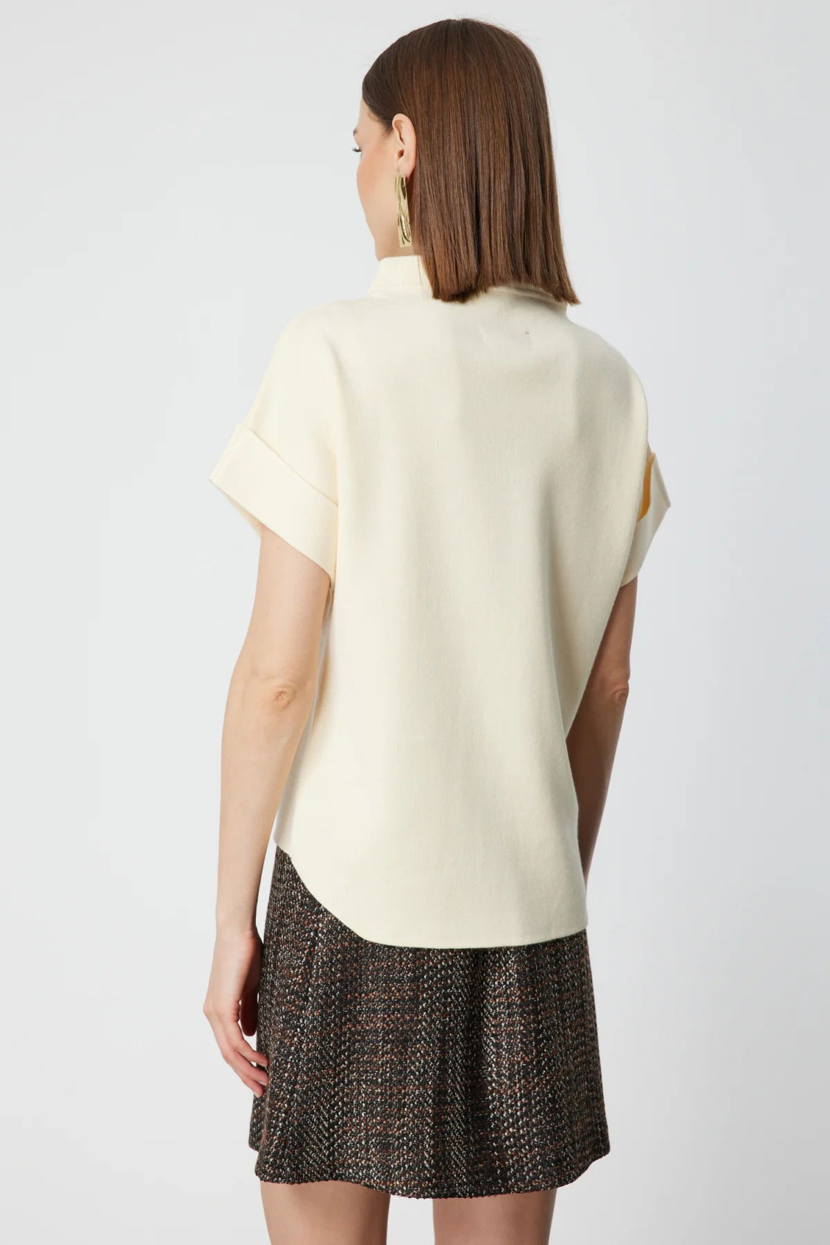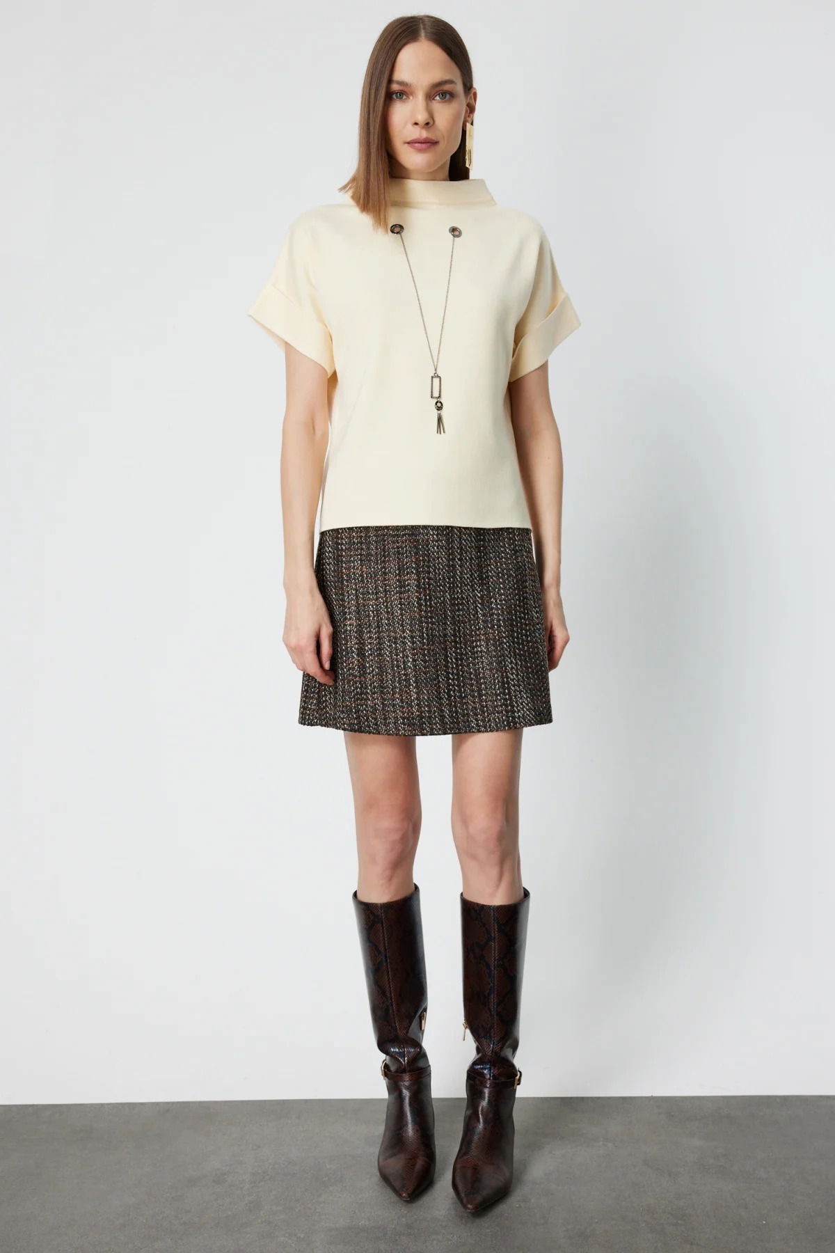 On Kadın Aksesuar Detaylı Dik Yaka Triko Kazak 65340 Krem