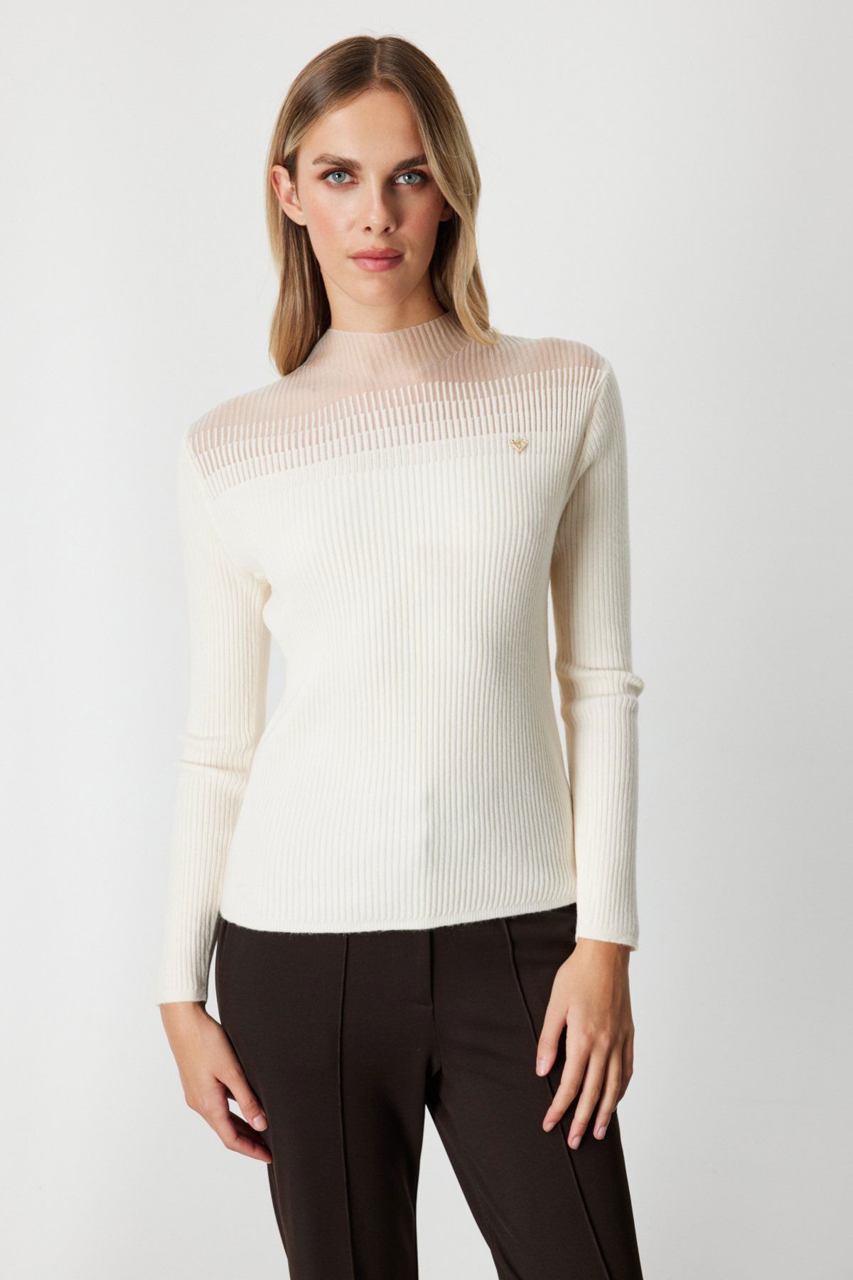 On Kadın Aksesuar Detaylı Triko Kazak 60346 Bej