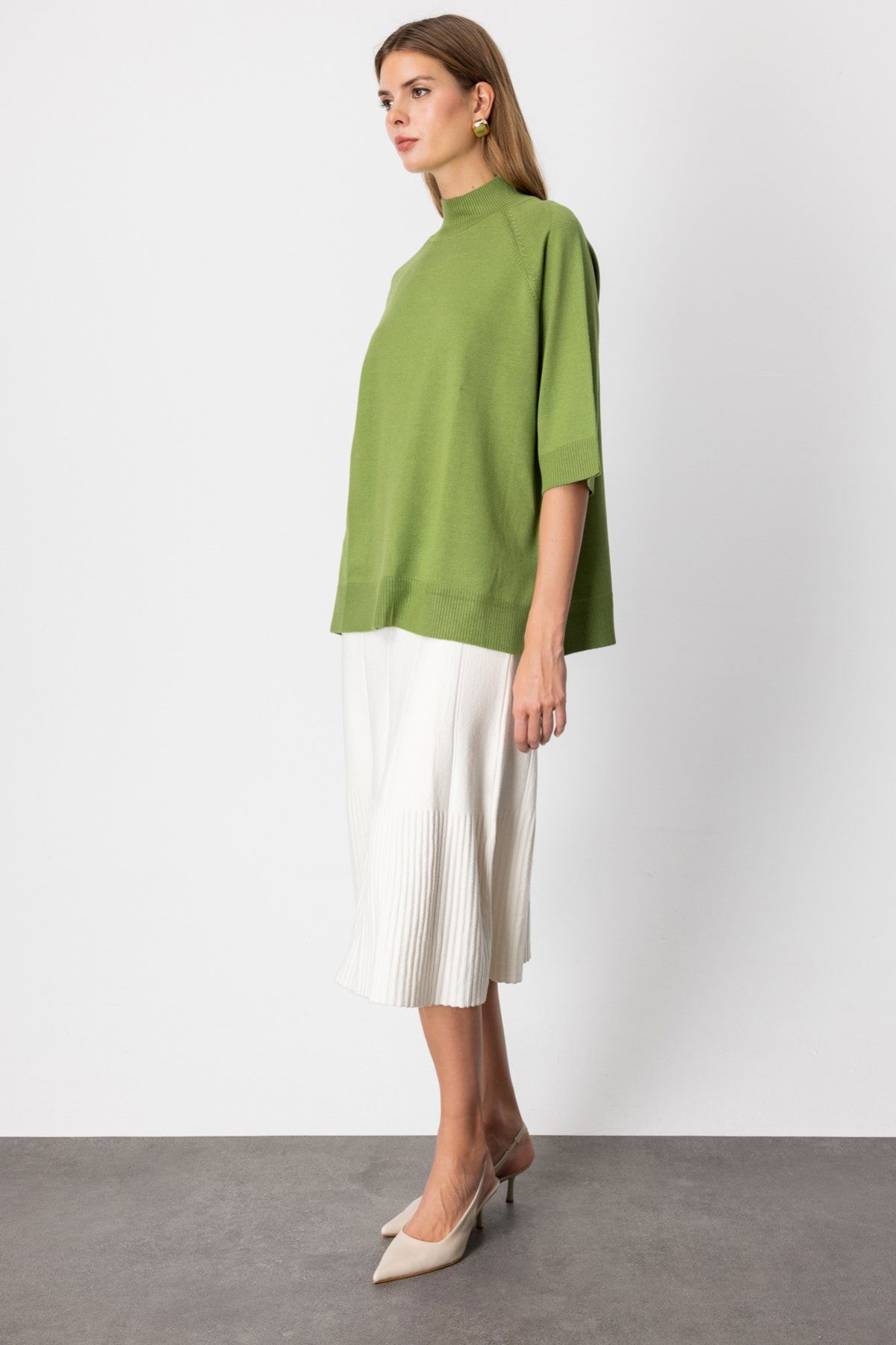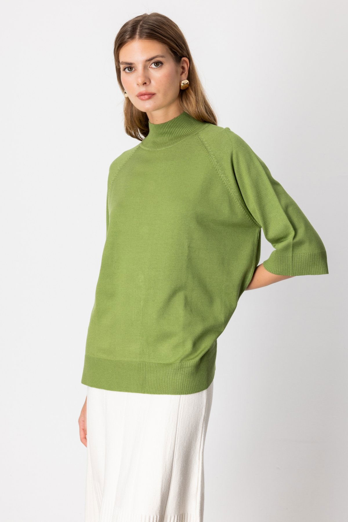 On Kadın Arkası Düğmeli Truvakar Kol Kazak 65310 Oliv