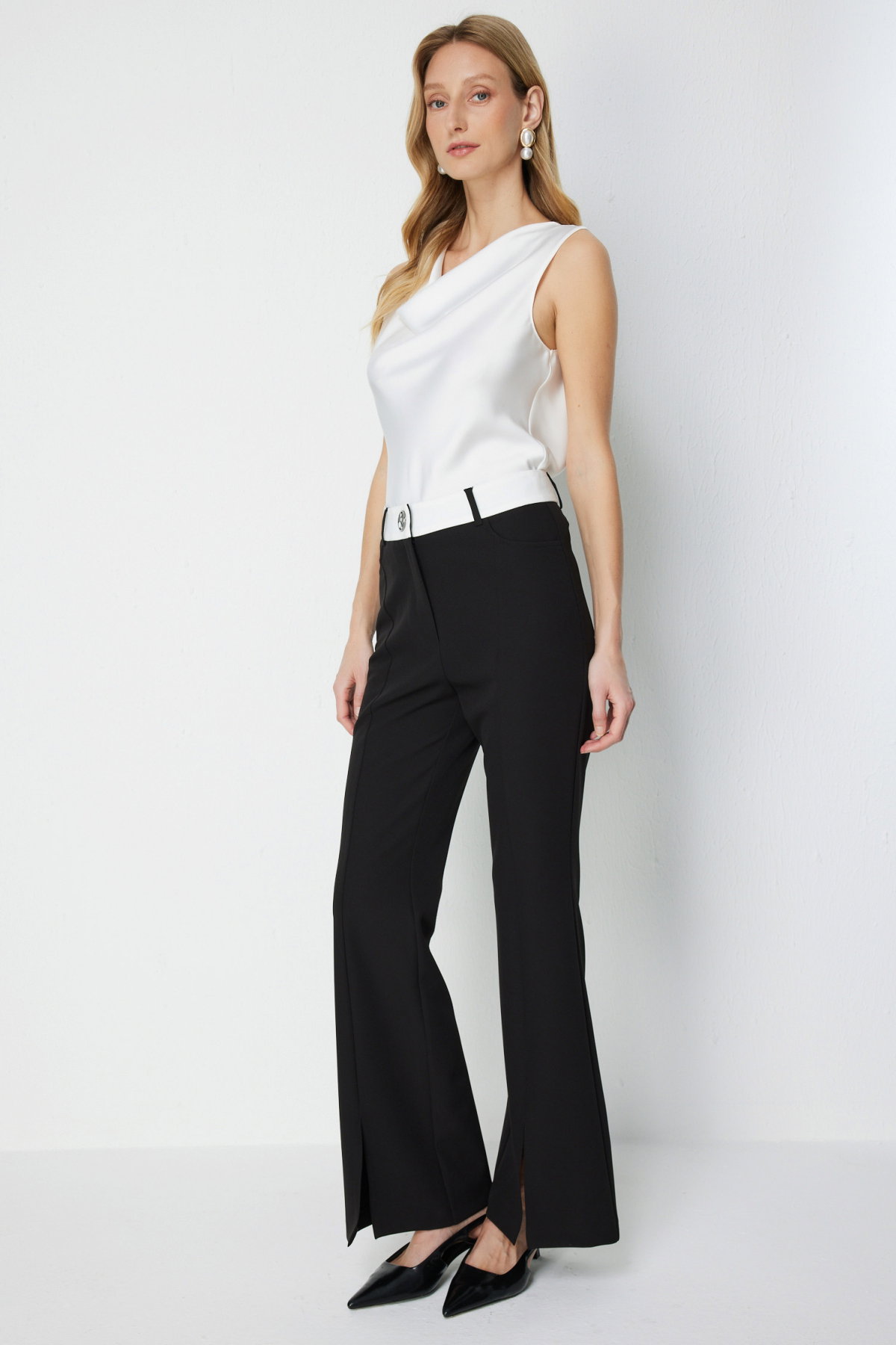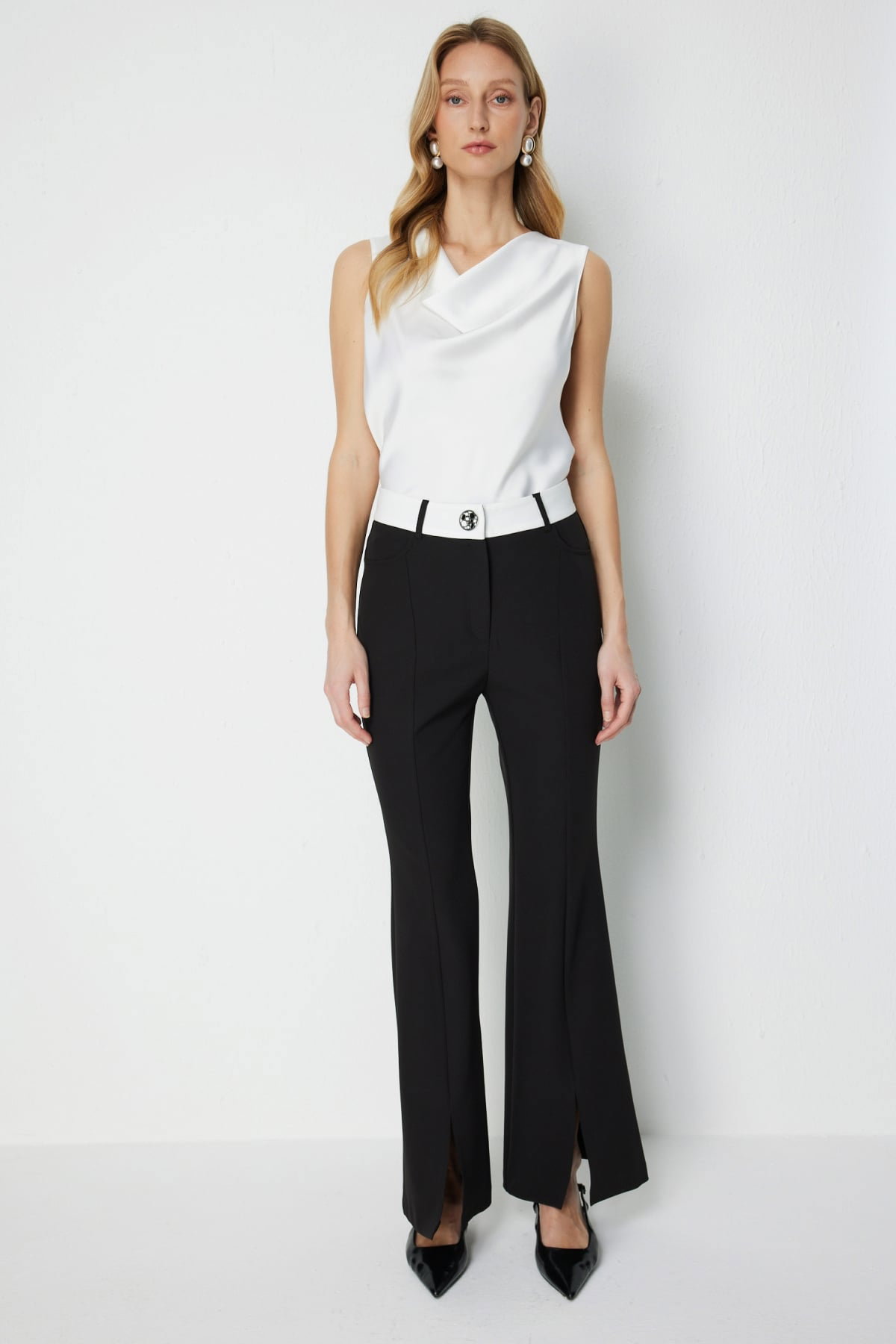 Detay: Yüksek bel formunda, İspanyol paça kesimli, yan cepli, fermuarlı kapama detaylı, dokuma kumaştan ve astarsız bu pantolon şık ve modern bir tasarıma sahiptir. Yüksek bel detayı zarif bir siluet oluştururken İspanyol paça kesimi feminen bir duruş kazandırır. Yan cepler ise günlük kullanımda fonksiyonel bir avantaj sunarak rahatlık sağlar;