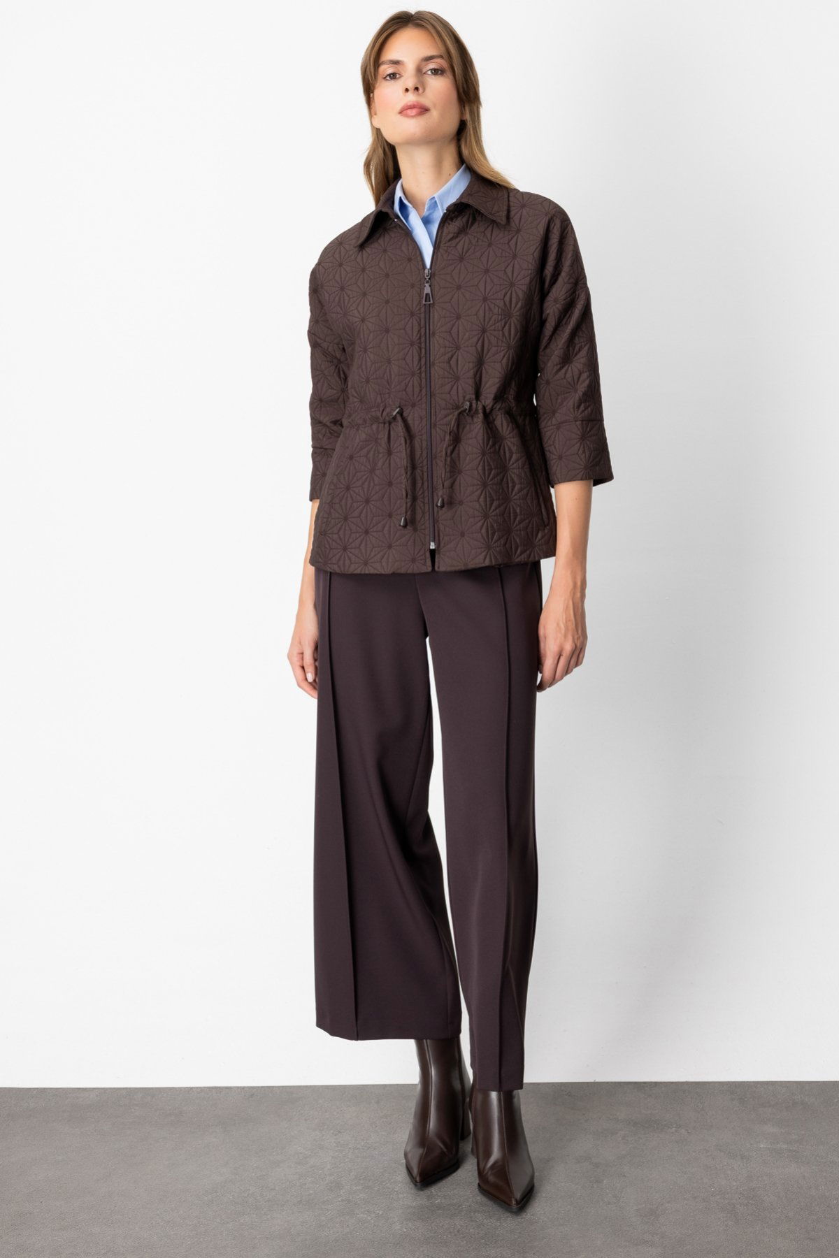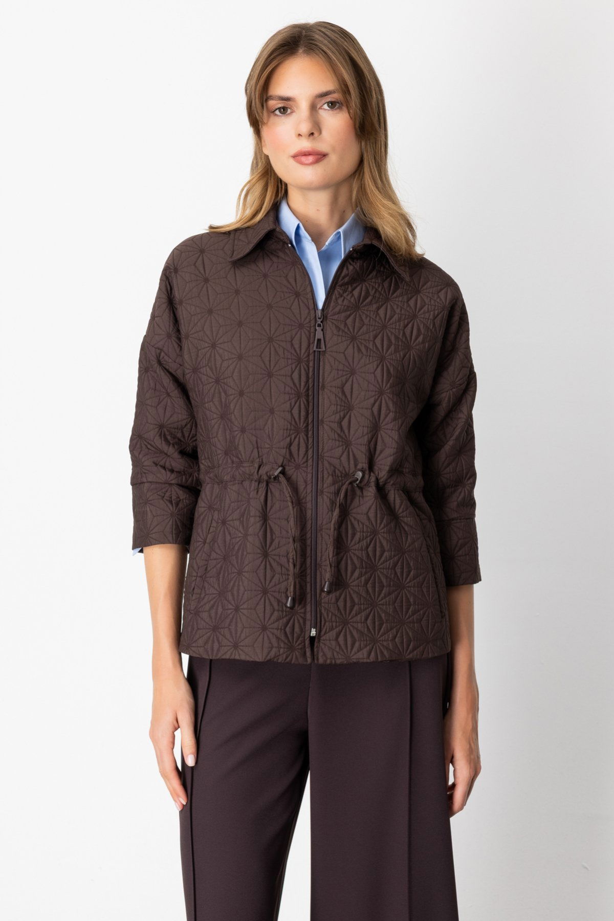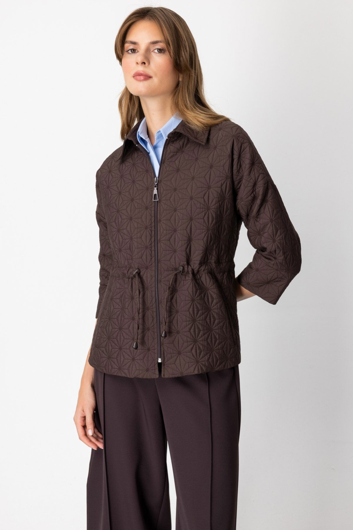 On Kadın Beli İpli Kapitone Ceket 62500 Kahverengi