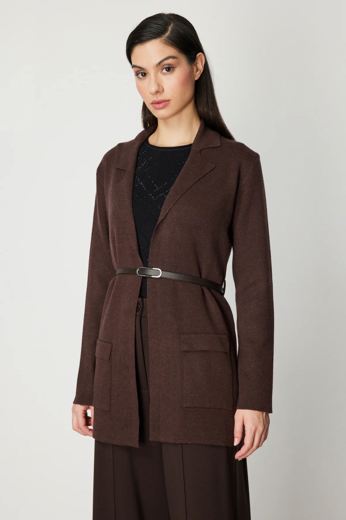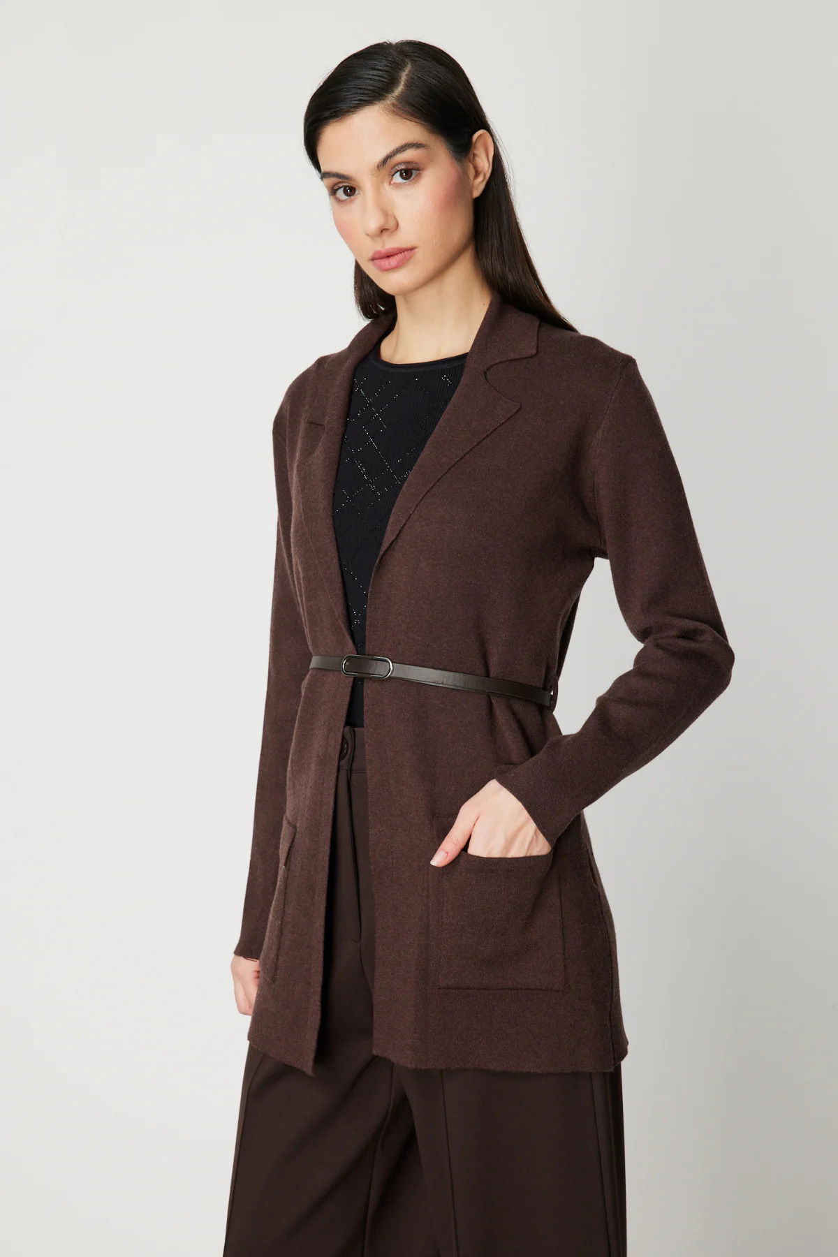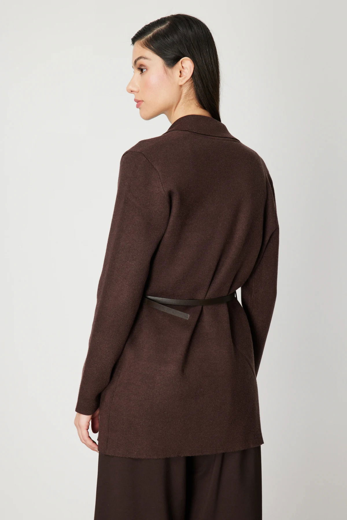 On Kadın Beli Kemerli Kapak Cepli Hırka 69907 Kahverengi