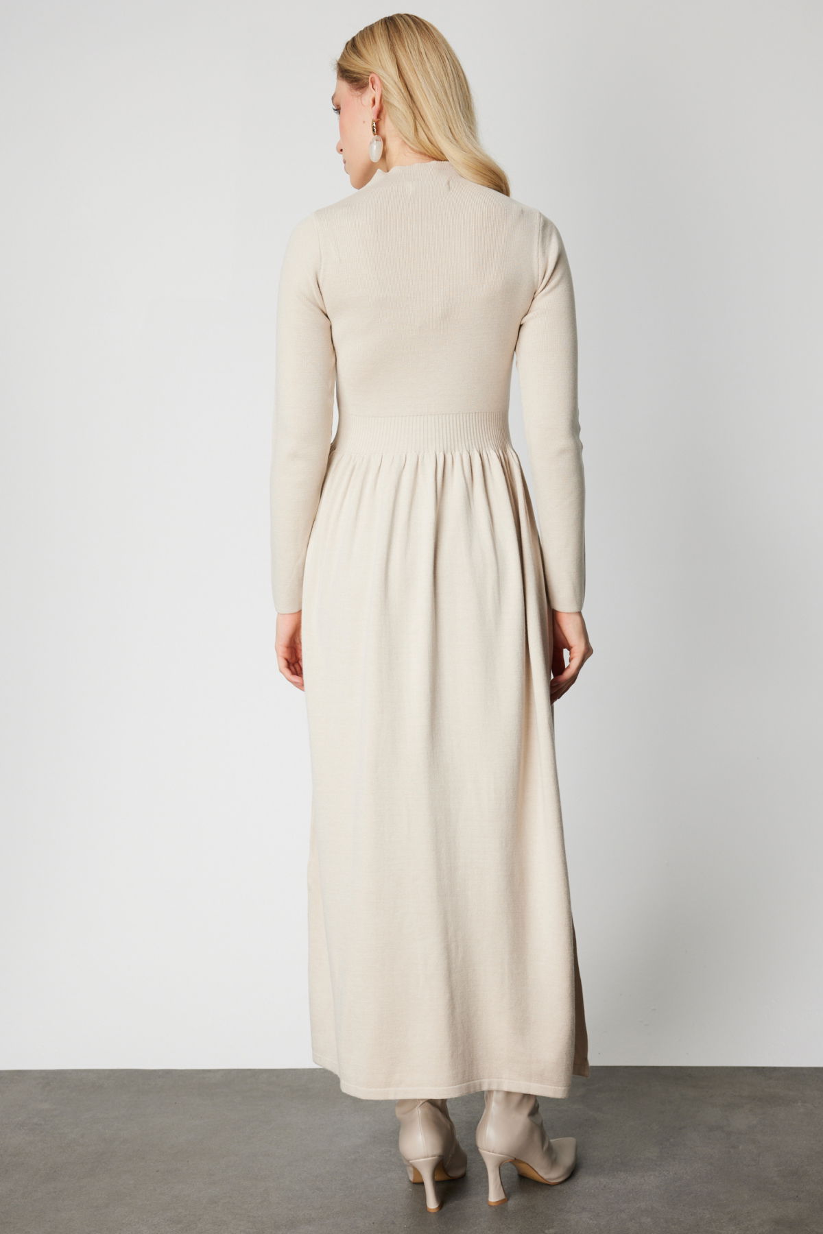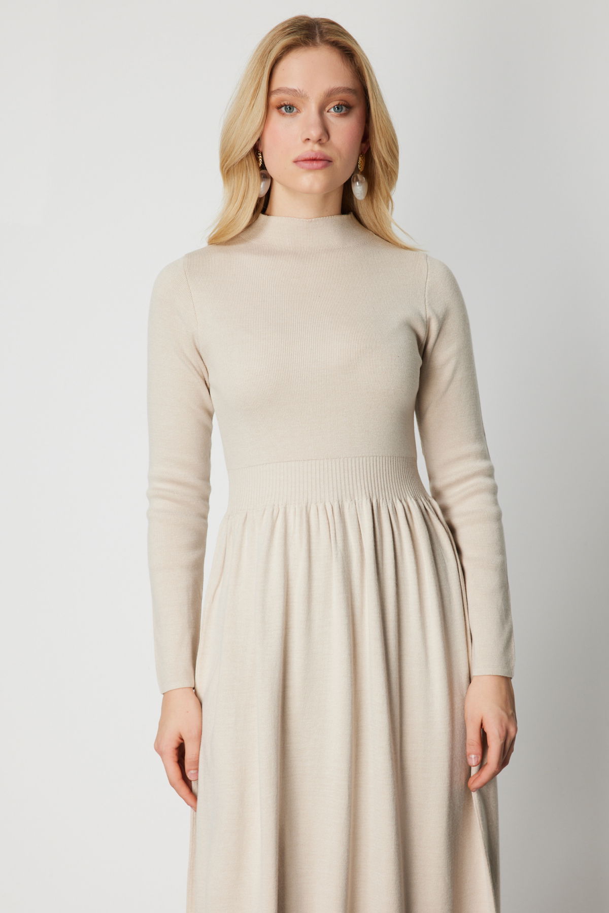 Detay: Triko kumaşıyla sıcak tutan ve astarsız yapısıyla hafiflik sunan bu uzun kollu elbise, dik yaka detayıyla modern ve zarif bir duruş sergiler. Günlük stilinize konfor katarken, sade şıklığıyla mevsim geçişlerinde ideal bir tercih olur;