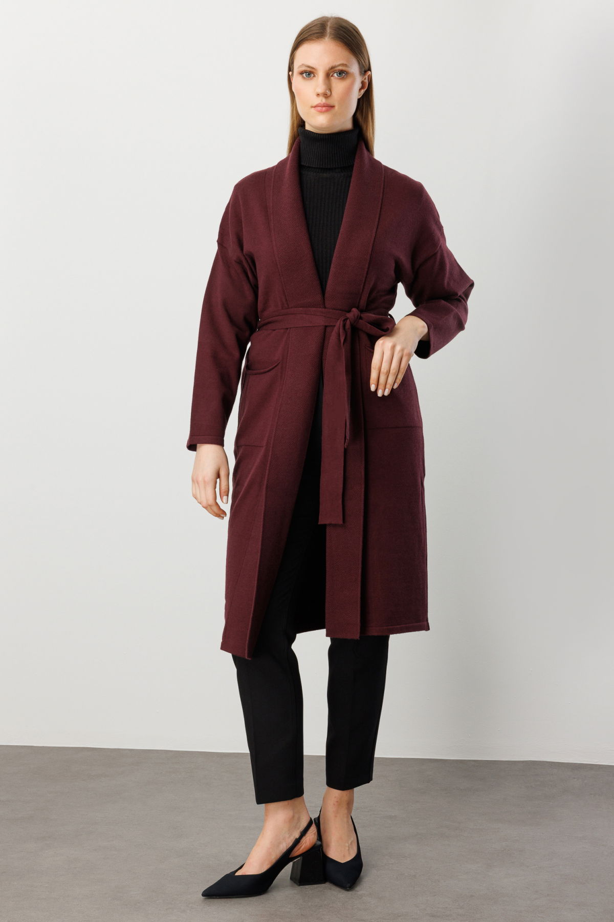 Detay: Yumuşak triko kumaşıyla konforlu bir sıcaklık sunan bu kuşaklı hırka, şal yaka detayıyla zarif ve akıcı bir duruş sergiler. Uzun kollu tasarımı ve torba cep detaylarıyla hem işlevsel hem de stil sahibi bir görünüm kazandıran bu astarsız model, günlük kombinlerden şık geçiş parçalarına kadar geniş bir kullanım alanı sunar. Kuşağı sayesinde vücuda uyumlu bir siluet elde etmek isteyenler için ideal bir tercihtir;