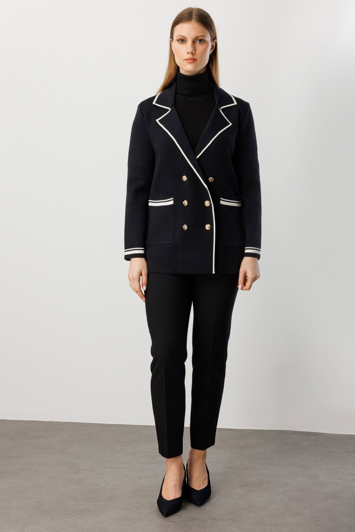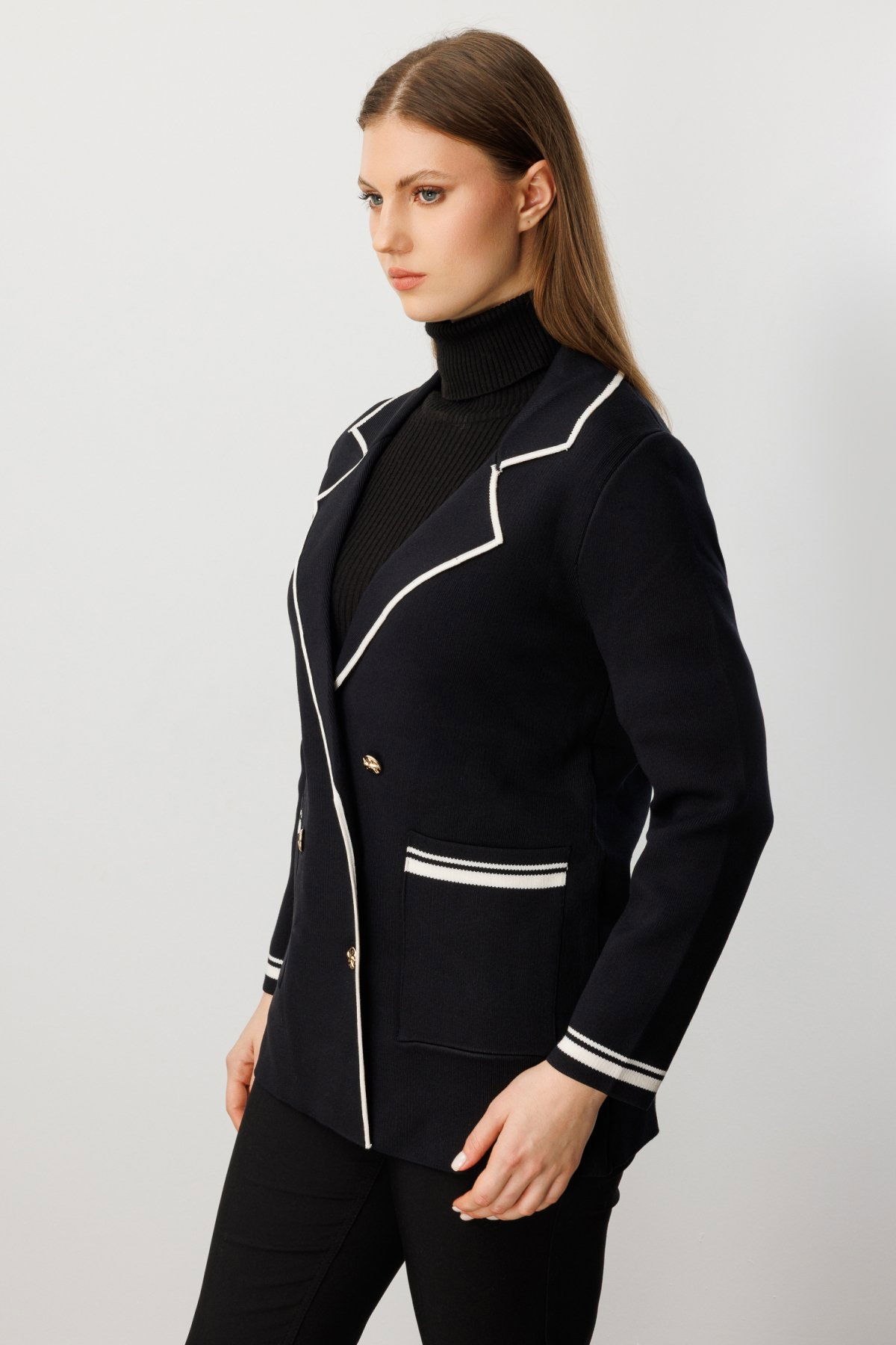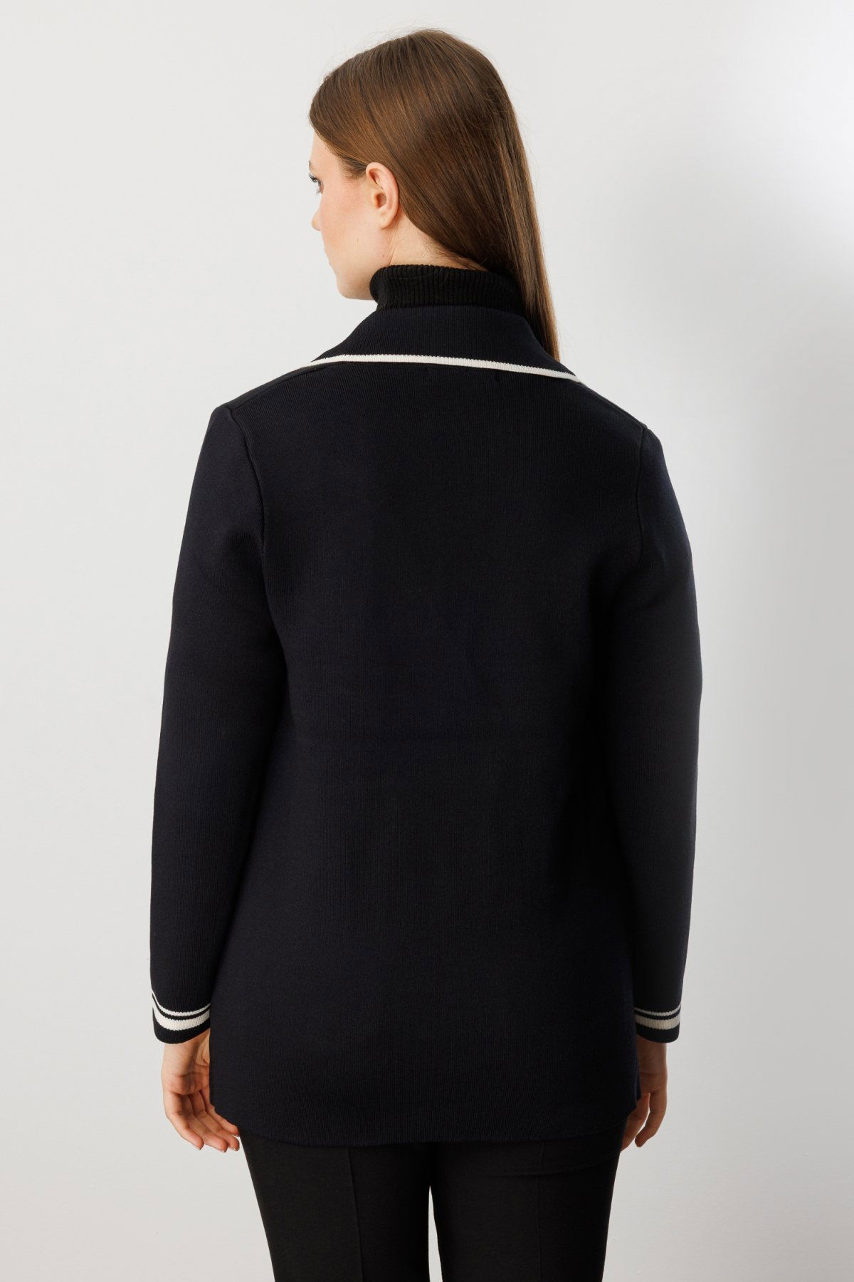 Detay: Ceket yaka detayıyla klasik şıklığı yansıtan bu uzun kollu triko hırka, düğmeli kapaması ve torba cep tasarımıyla fonksiyonel bir stil sunar. Astarsız yapısı sayesinde hafiflik sağlayan bu parça, mevsim geçişlerinde konforlu ve zarif bir tamamlayıcıdır;