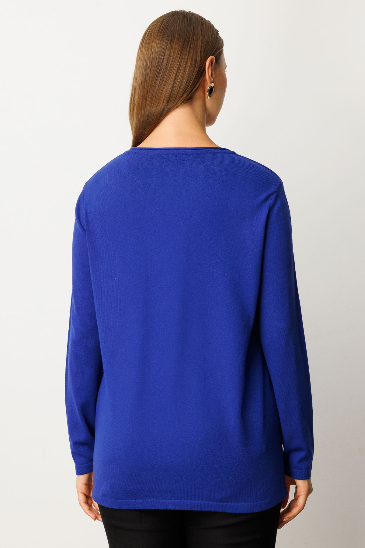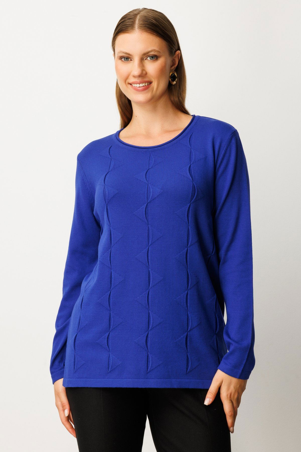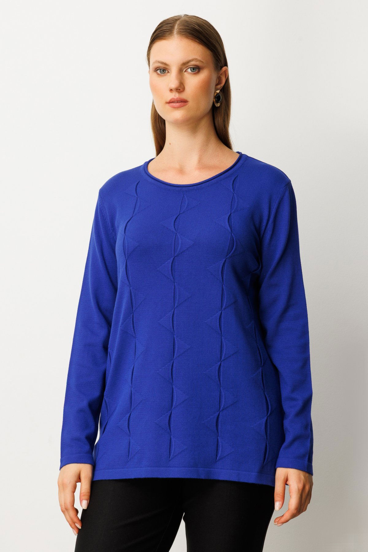 On Kadın Büyük Beden Kendinden Desenli Triko Kazak 65329 Saks