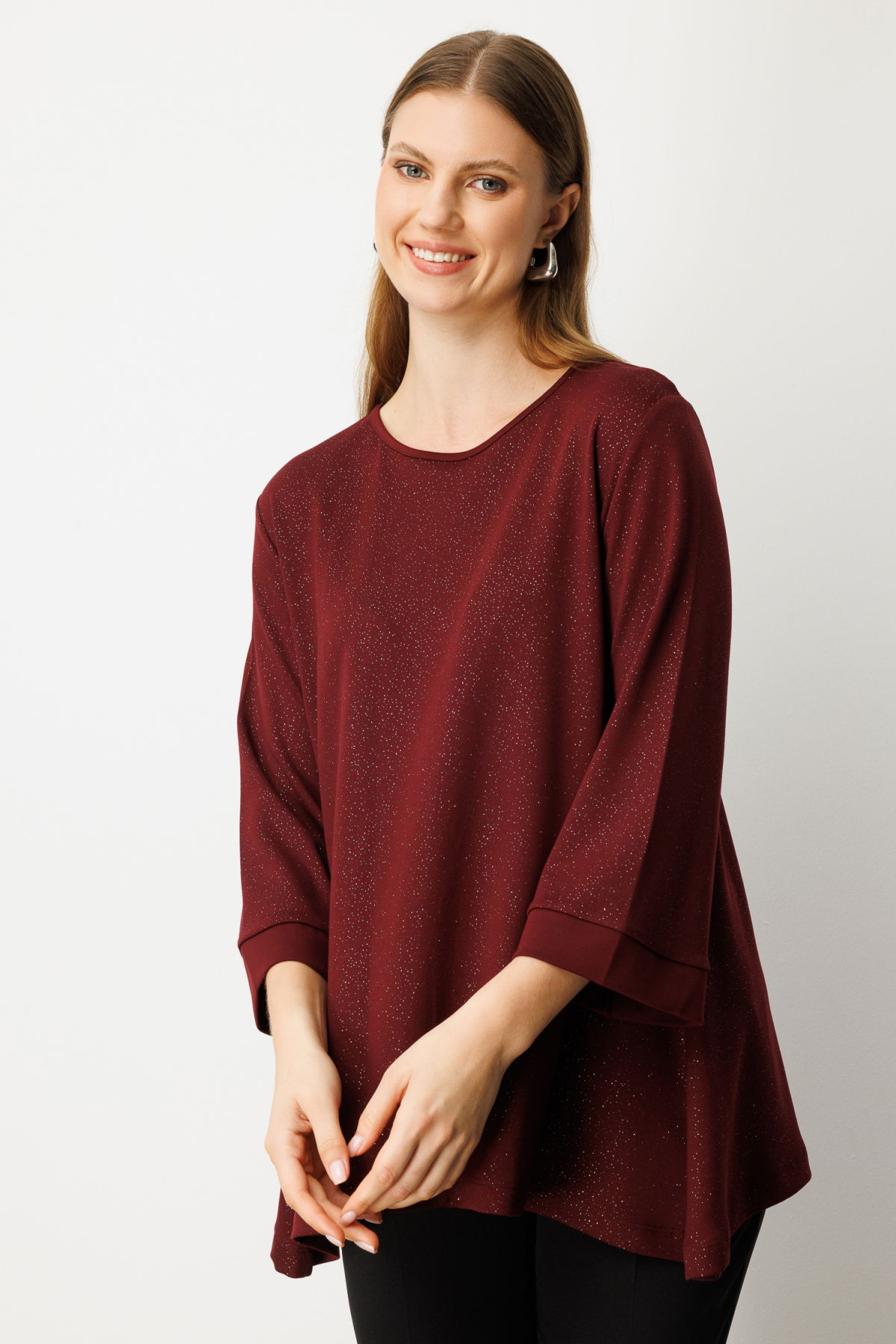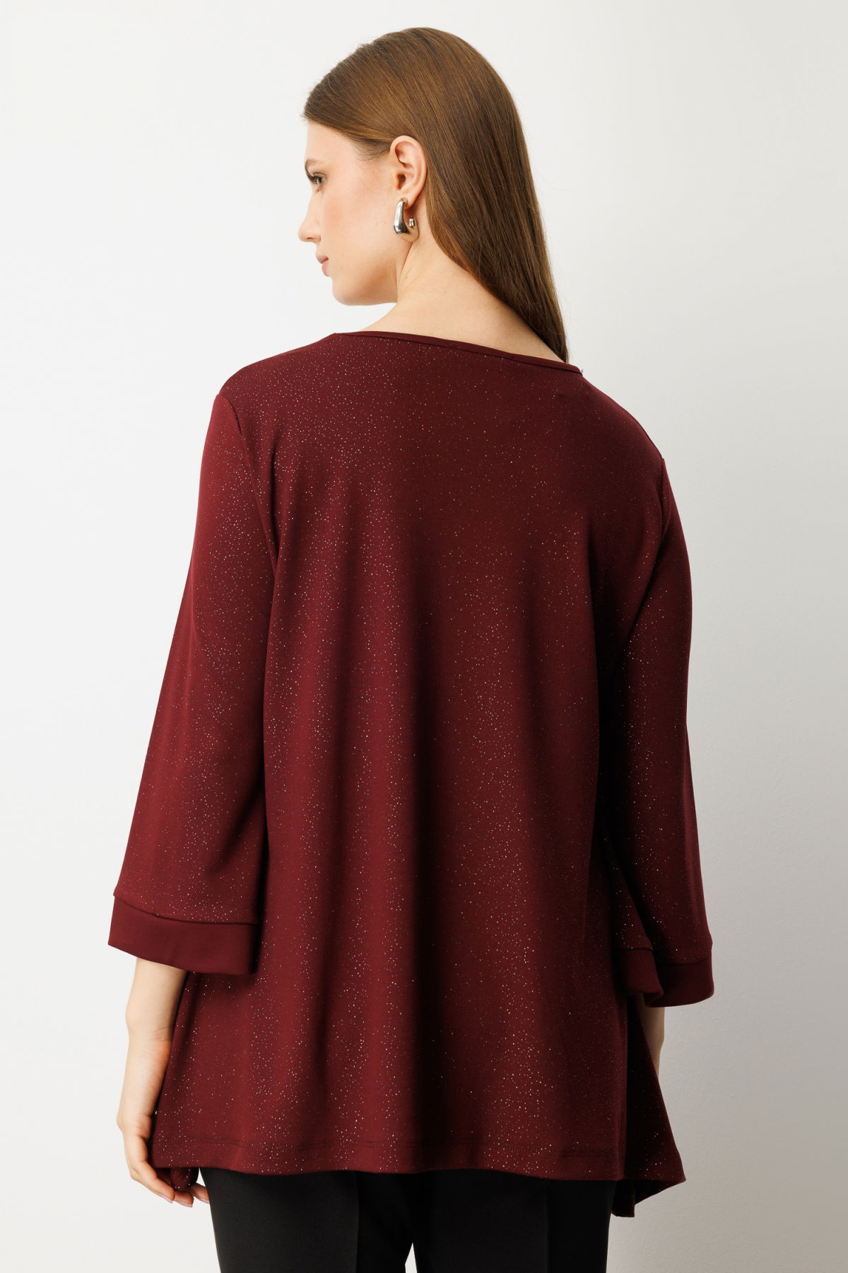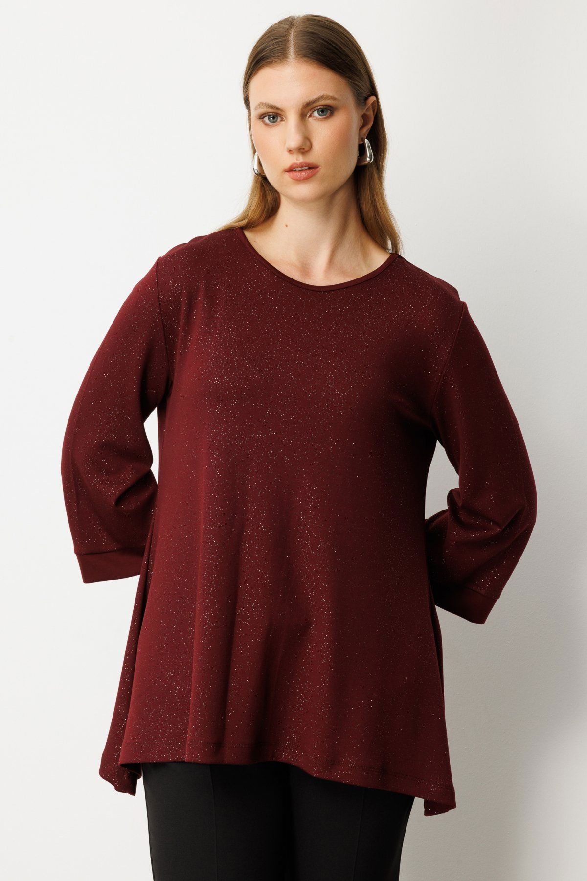 On Kadın Büyük Beden Kumaşı Simli Rahat Kalıp Bluz 61393 Bordo