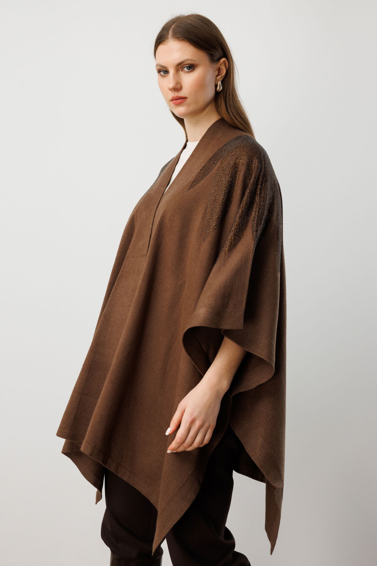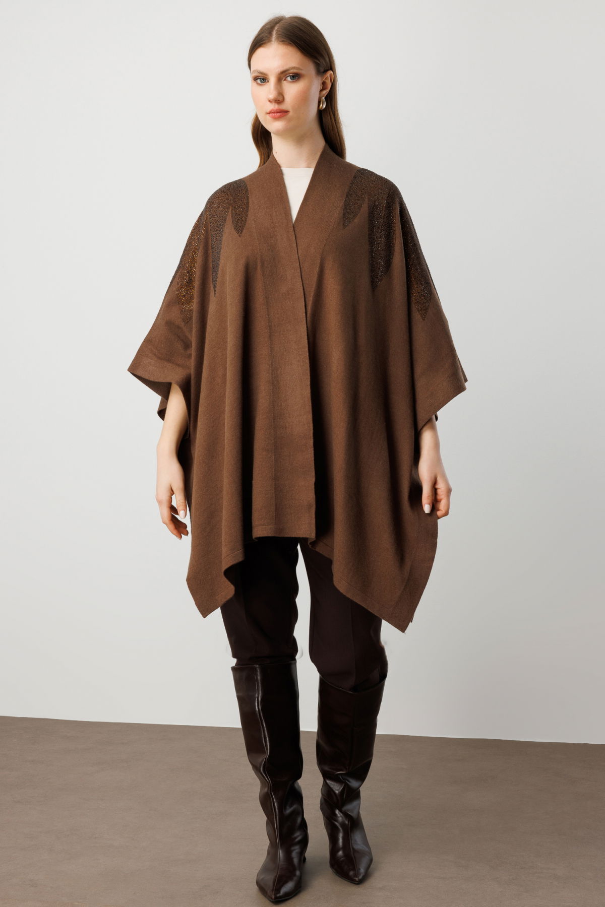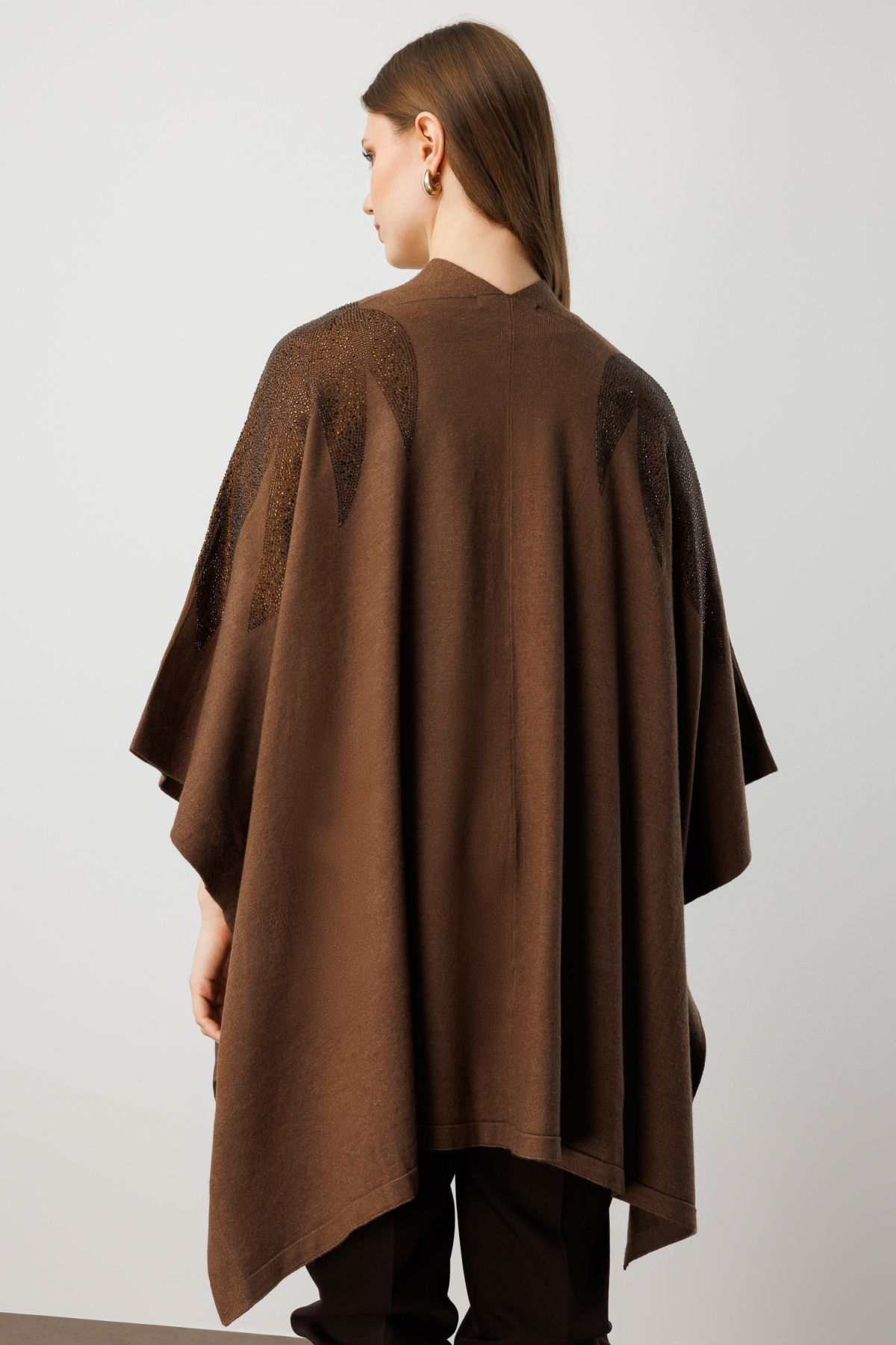 On Kadın Büyük Beden Omuzları Taşlı Yarasa Kol Hırka 60322 Kahverengi