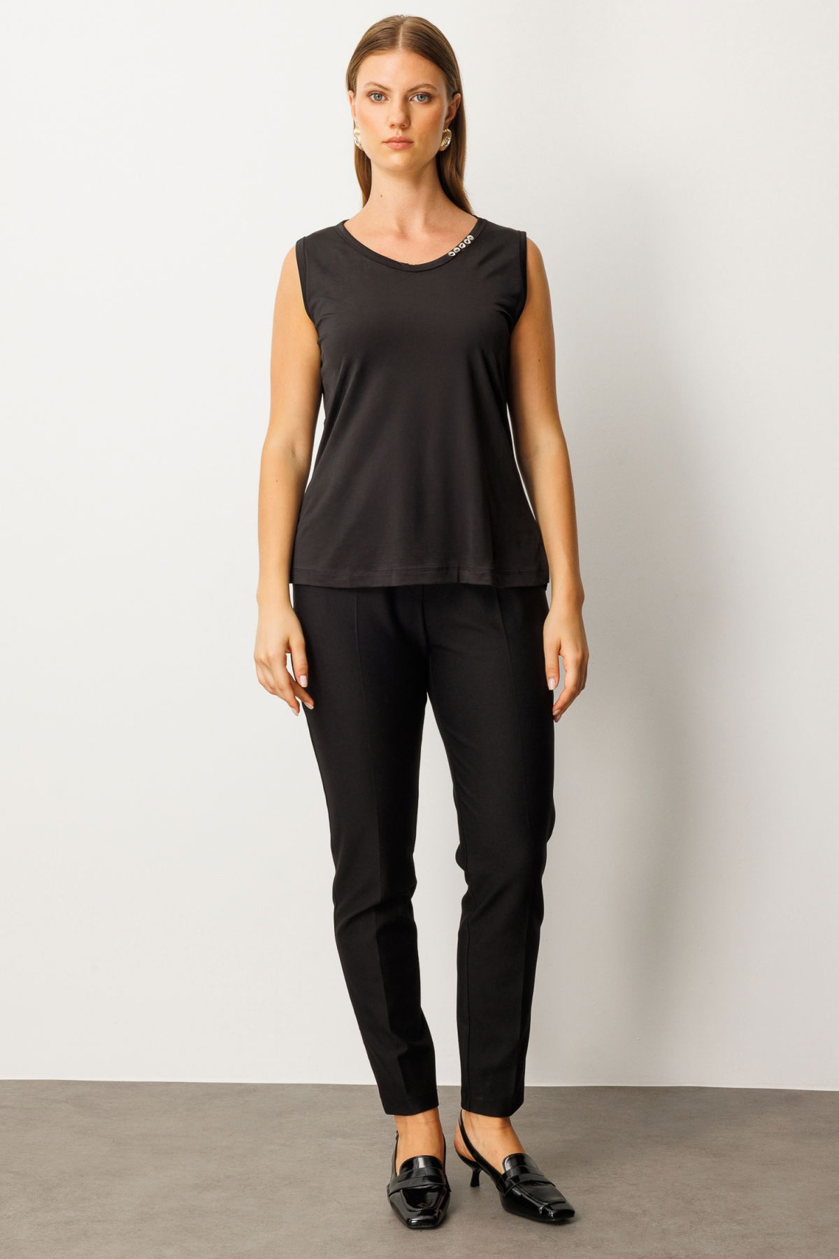 On Kadın Büyük Beden Yakası Düğme Detaylı Kolsuz Basic Bluz 61333 Siyah