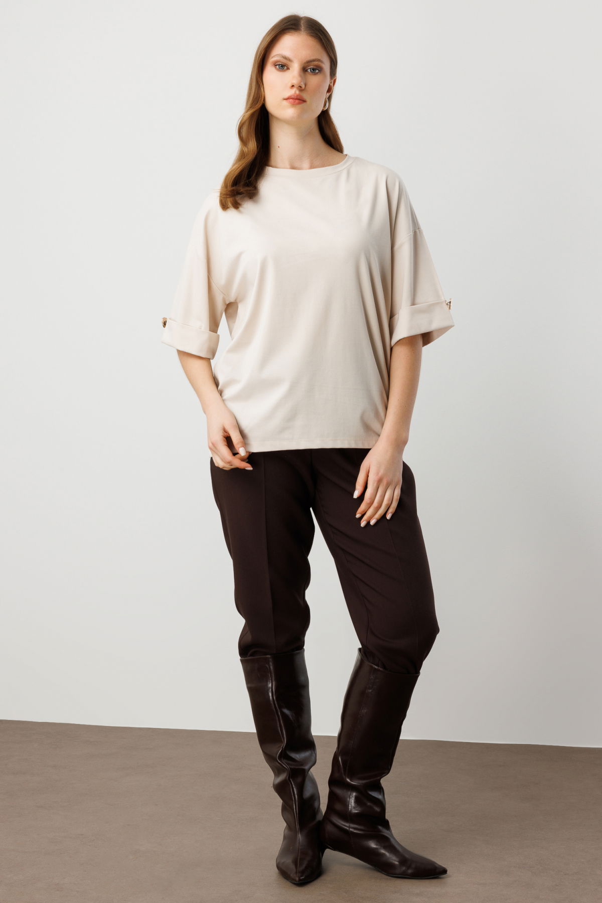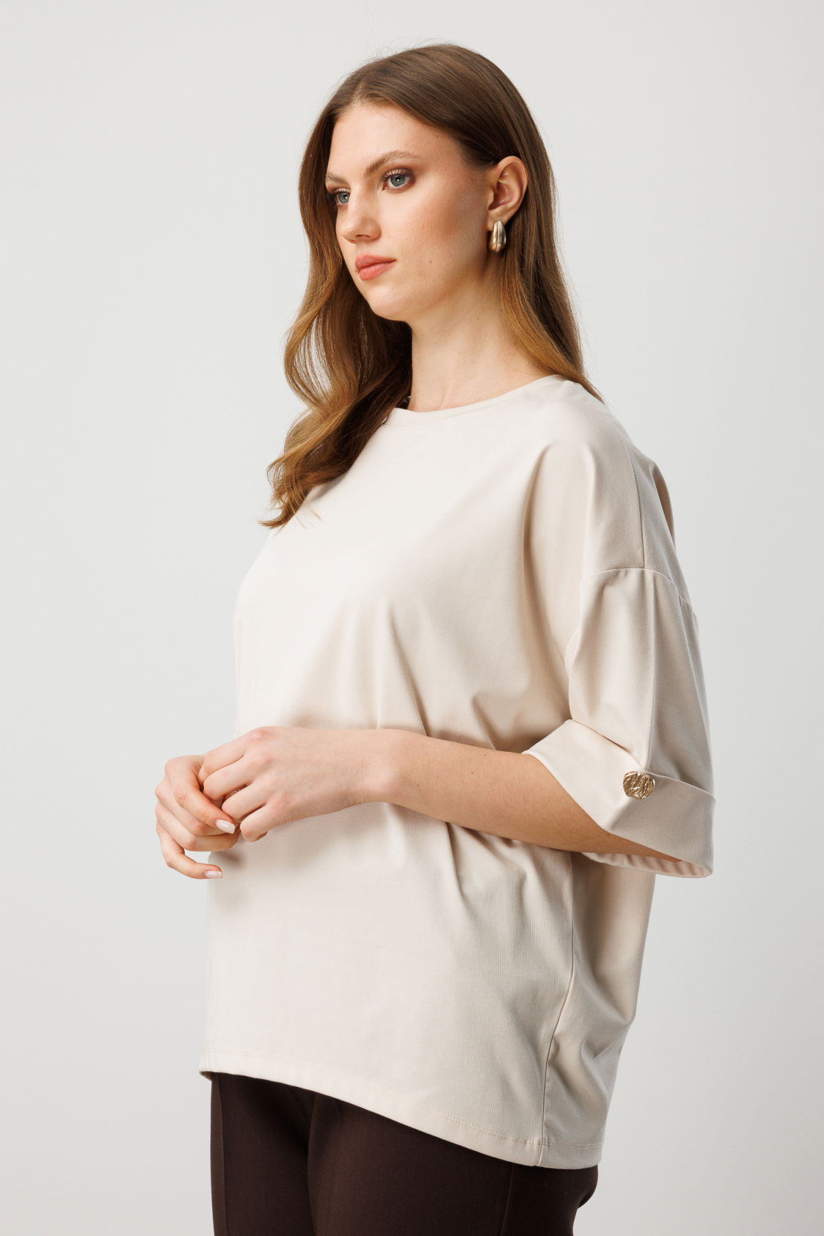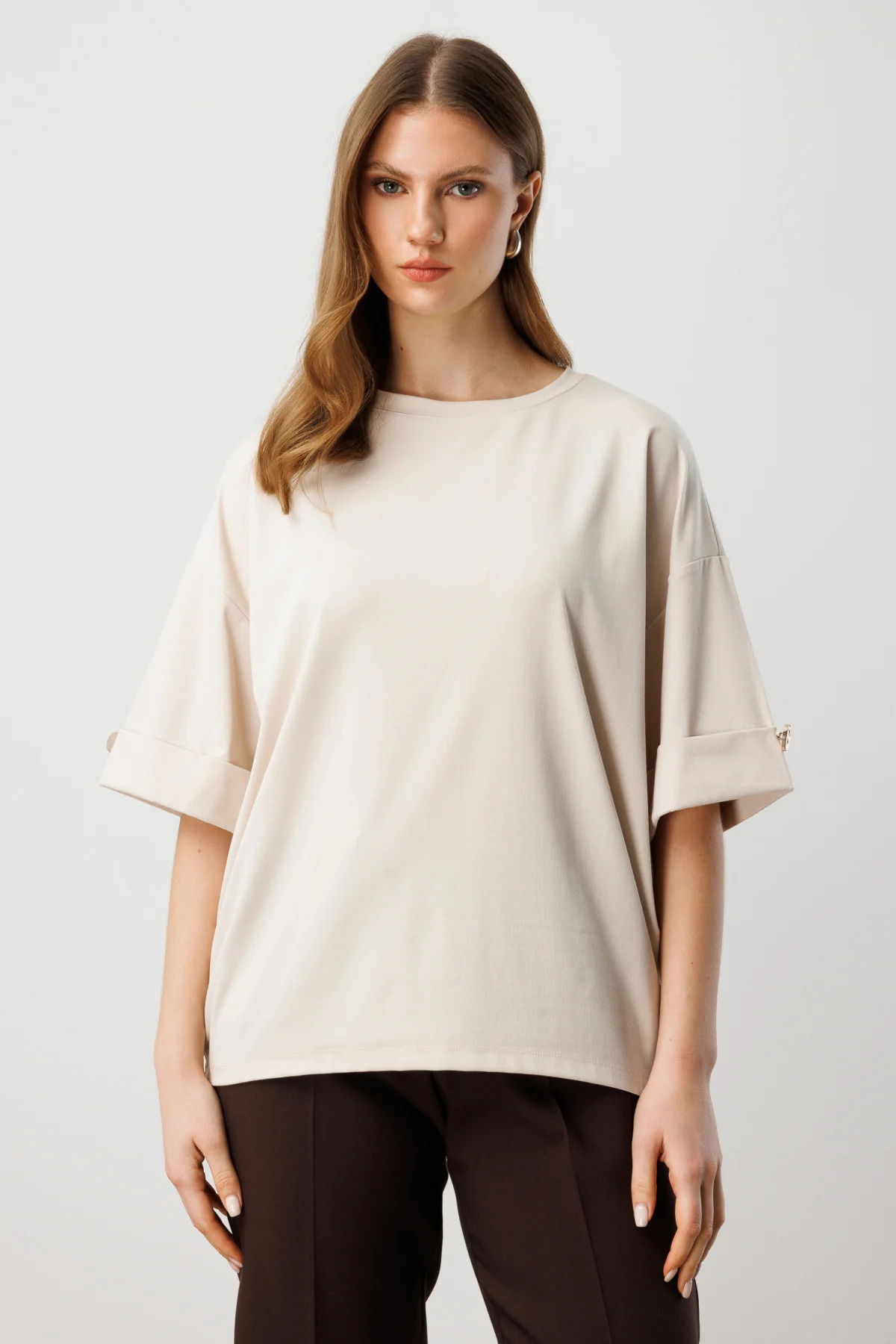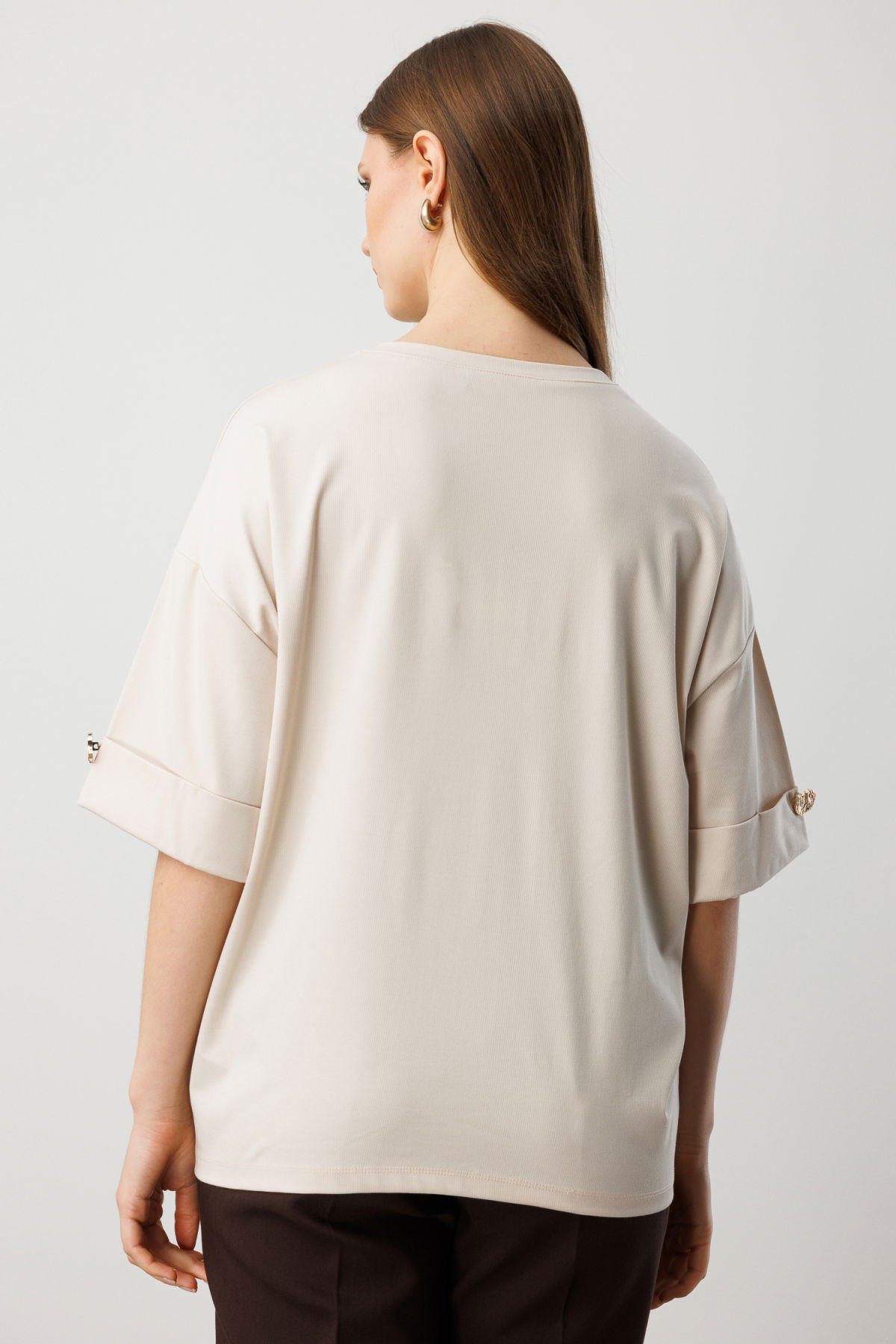 On Kadın Büyük Beden Yarım Kol Metal Aksesuarlı Bluz 61434 Taş