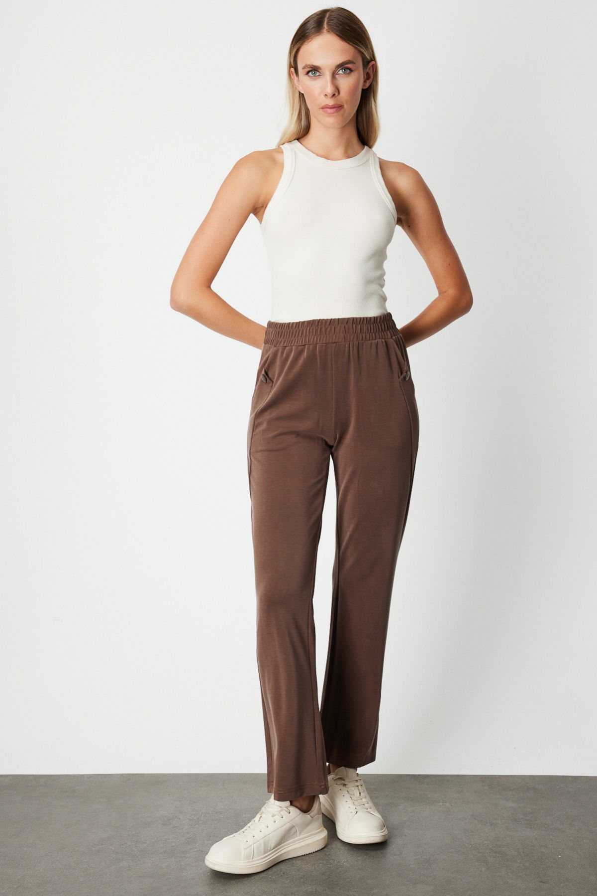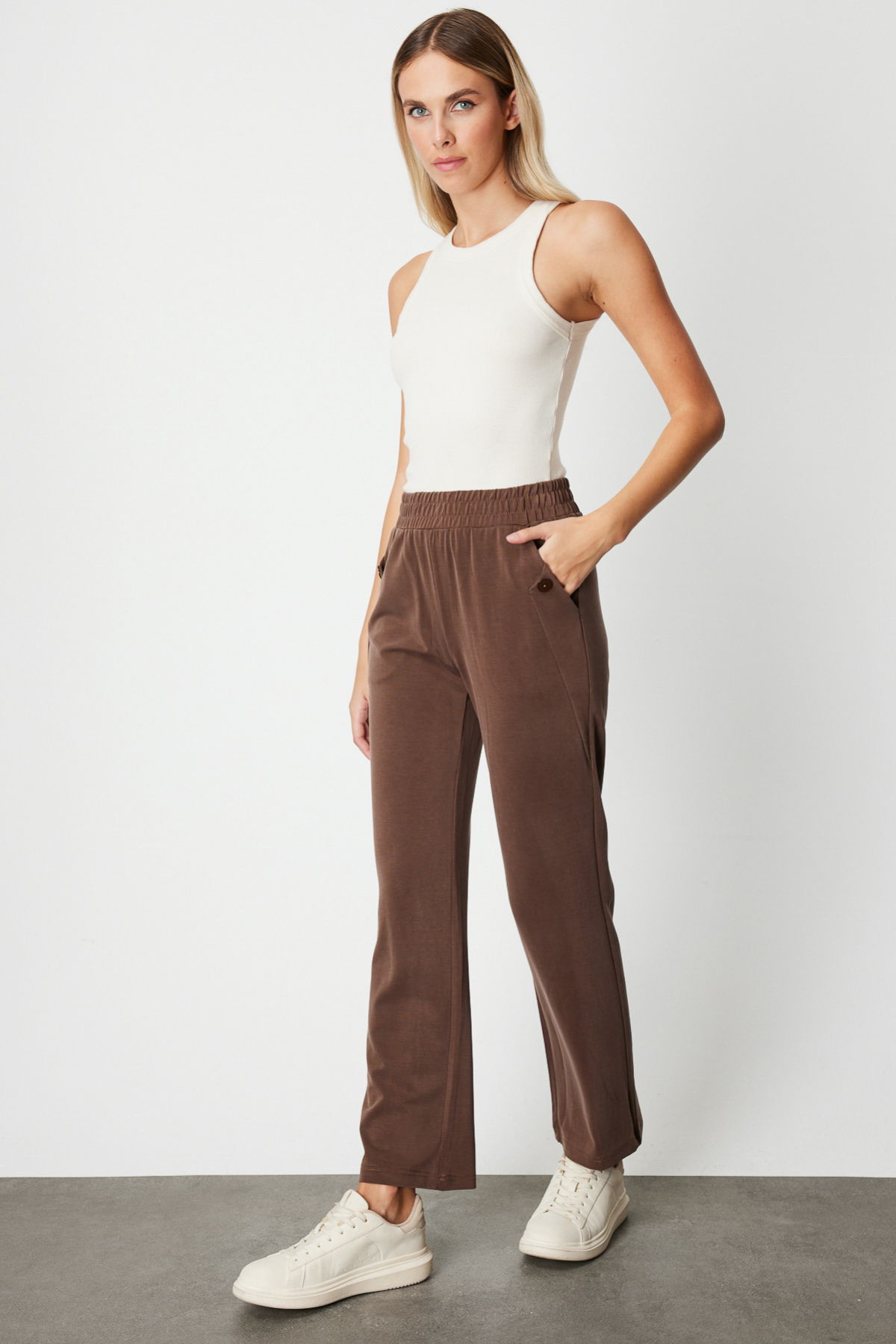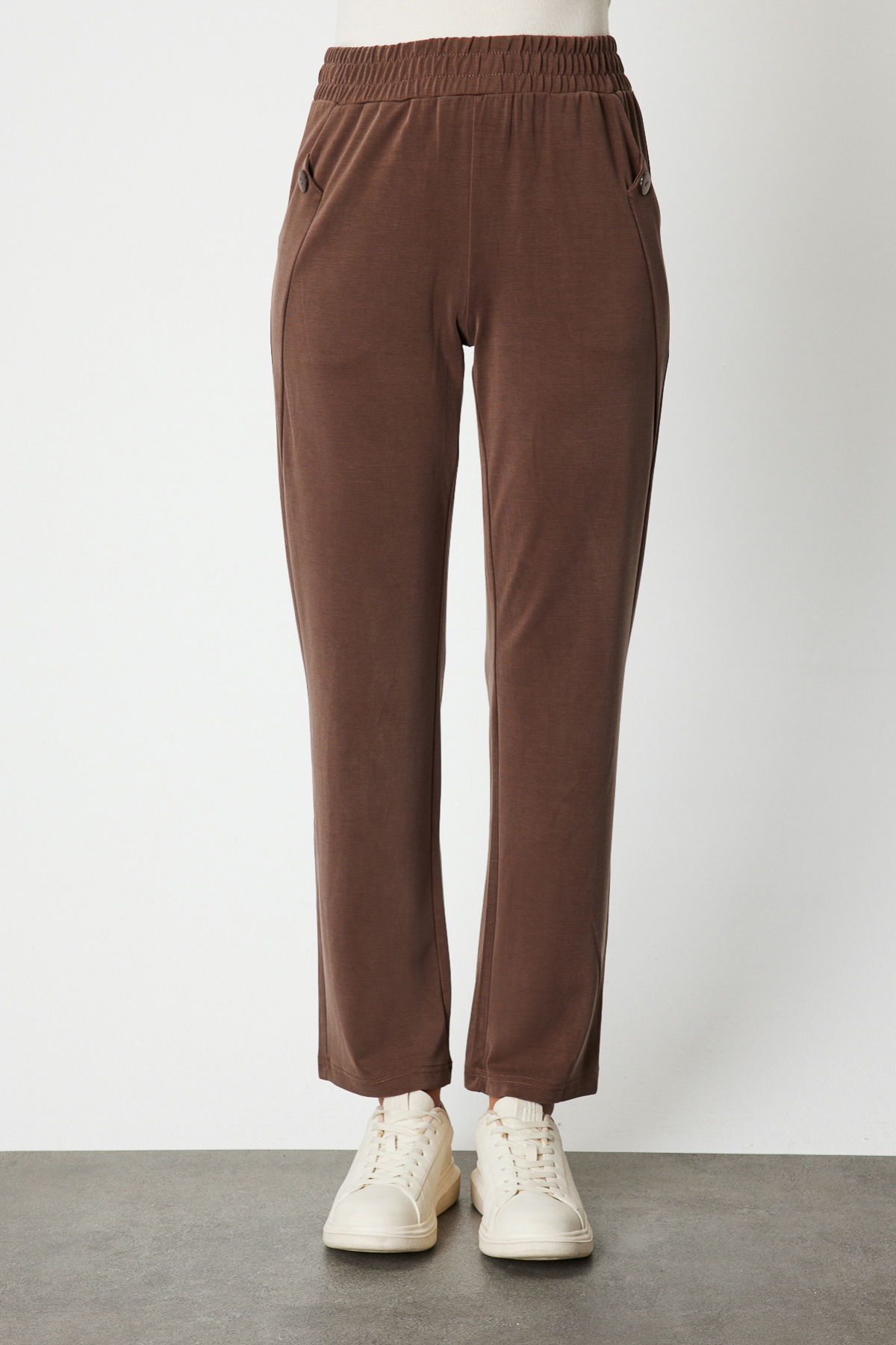 On Kadın Cebi Düğme Detaylı Eşofman Altı 66107 Kahverengi