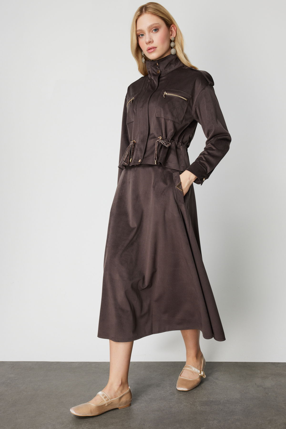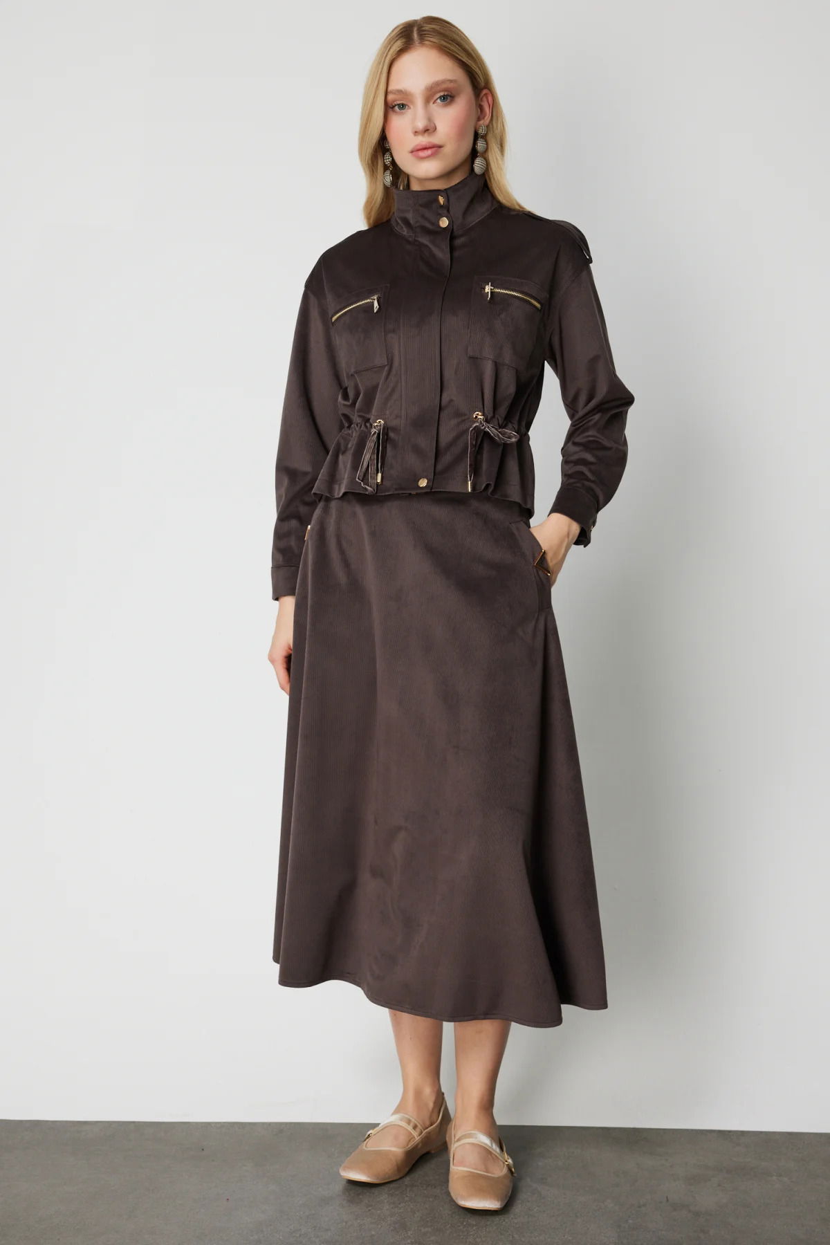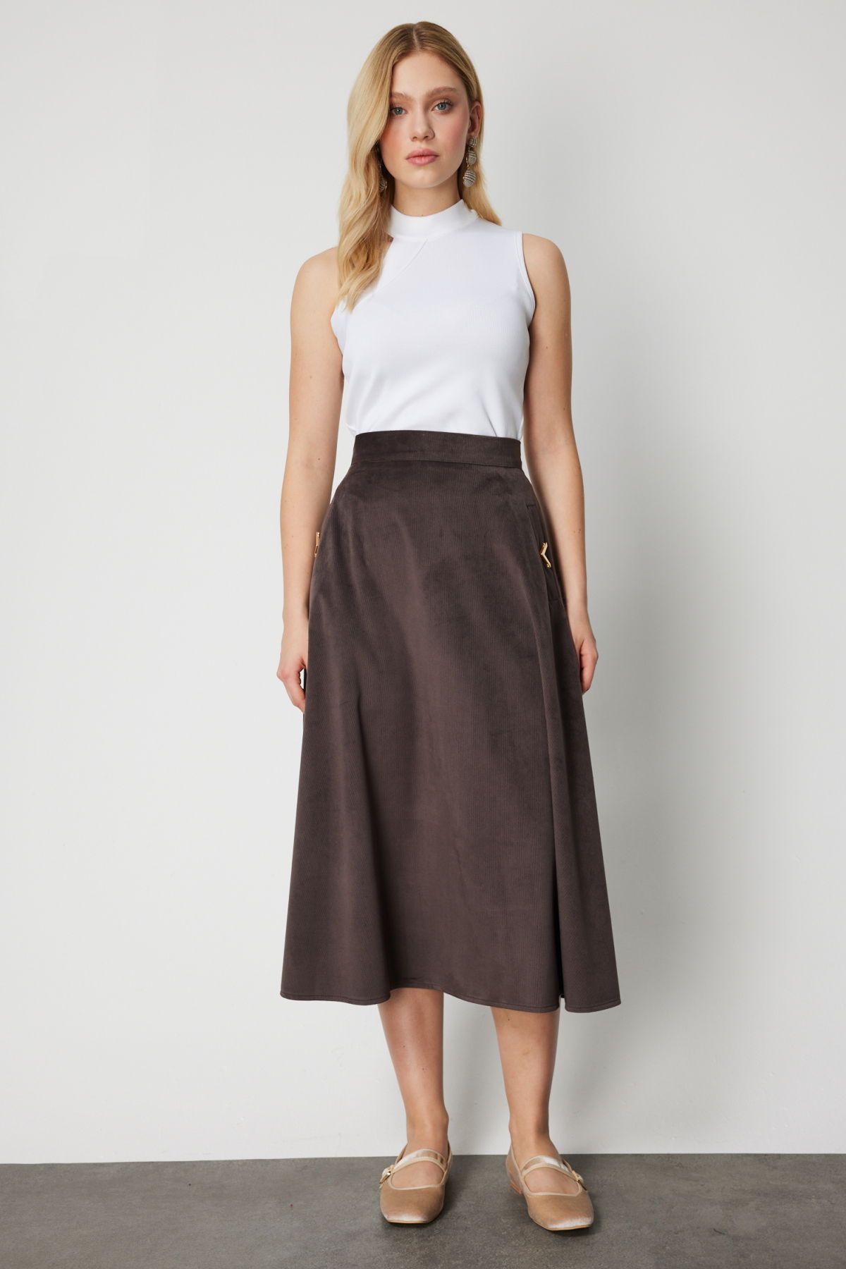 Detay: Dokuma kumaşın zarif ve dayanıklı yapısı ile tasarlanan bu astarsız midi etek, fermuarlı kapama detayı sayesinde pratik kullanım imkânı sunar. Yan cepler hem işlevsellik hem de modern bir dokunuş katarak günlük kombinlerde rahatlık sağlar. Şık ve kullanışlı tasarımıyla dokuma midi etek, hem casual hem de ofis stilinde ideal bir seçenektir.;