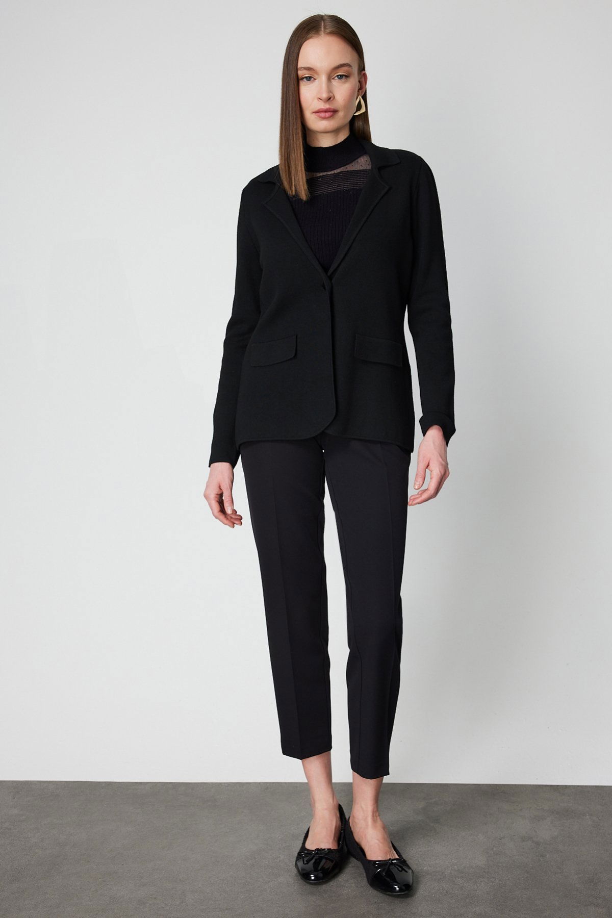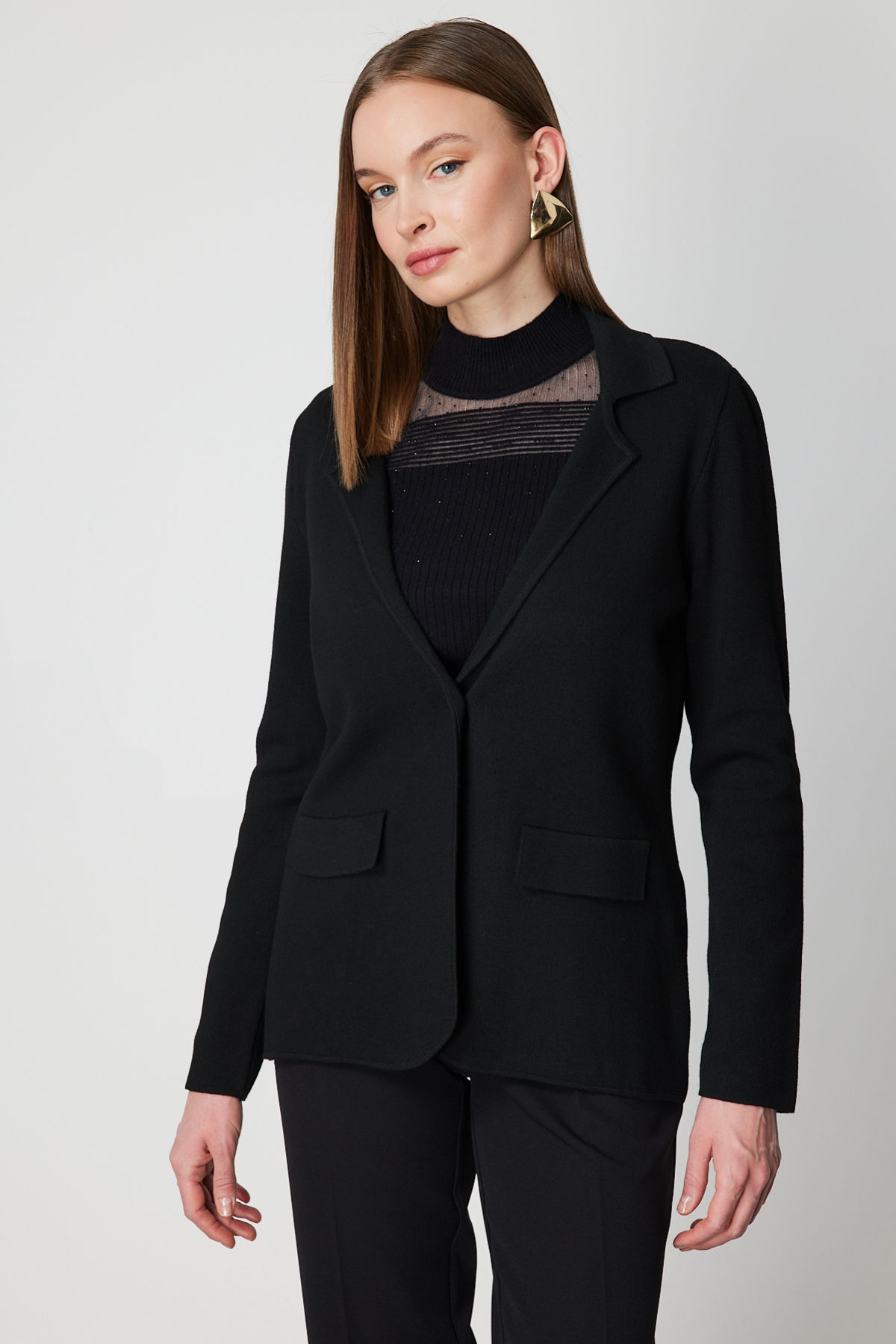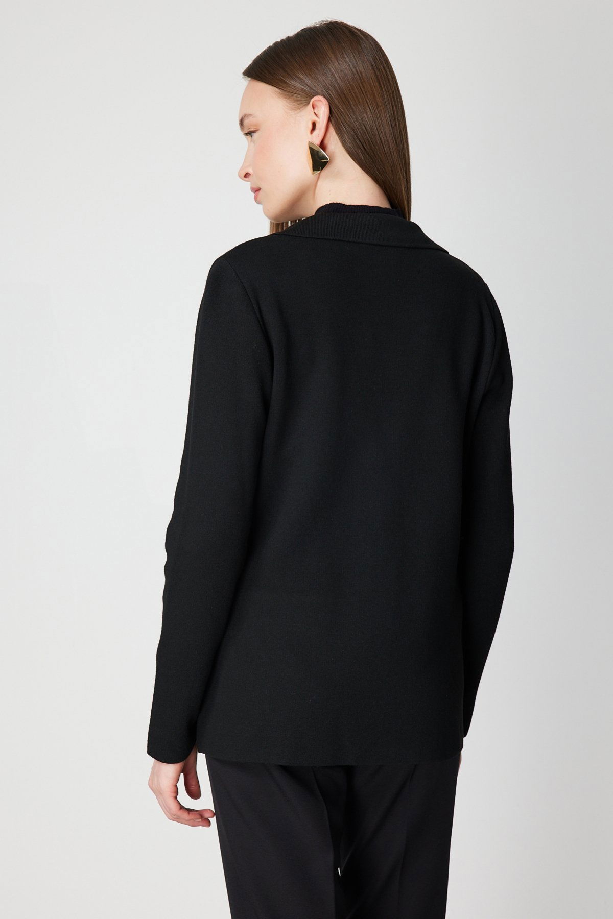 On Kadın Ceket Yaka Triko Hırka 63926 Siyah