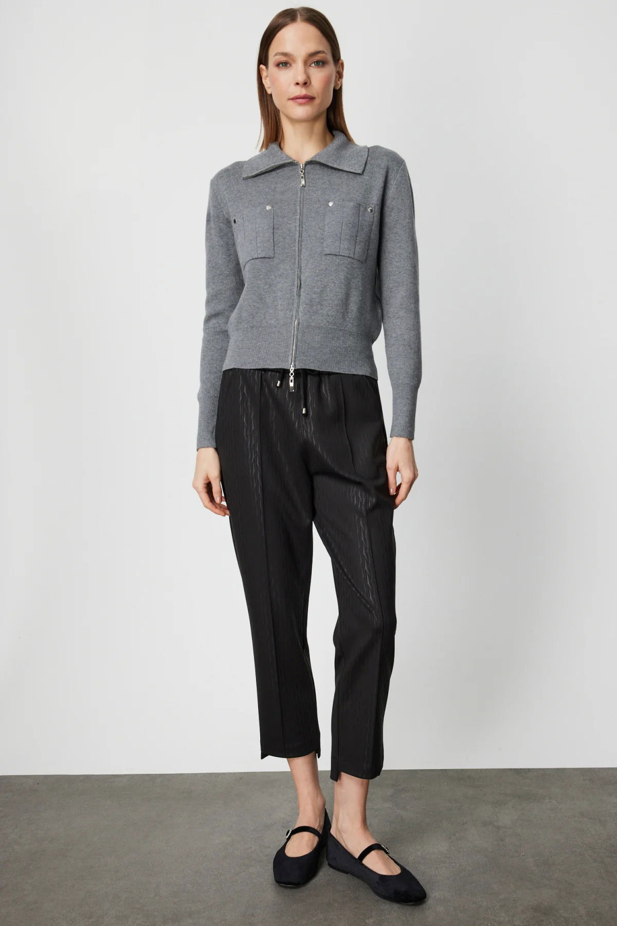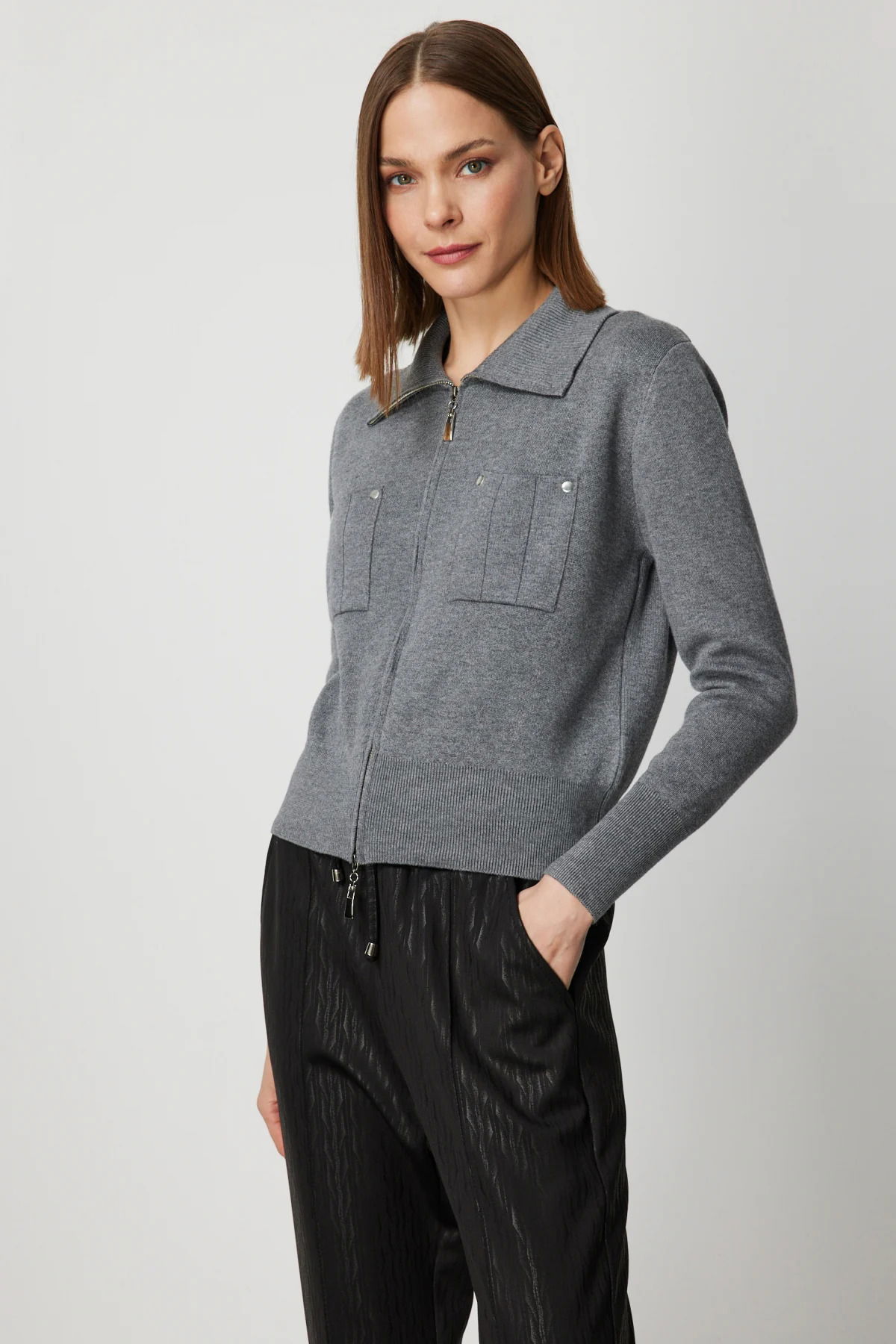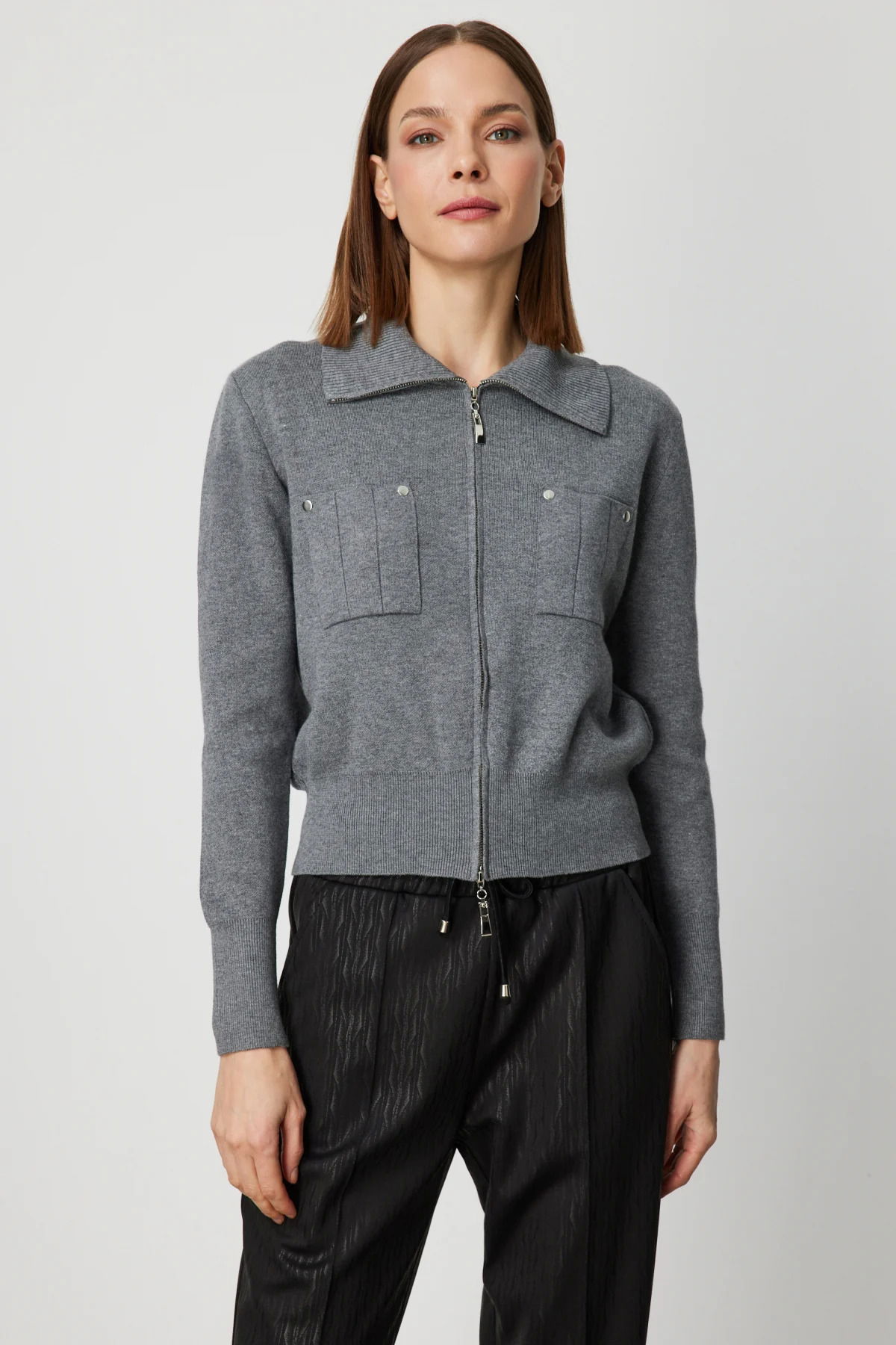 On Kadın Cep Detaylı Fermuarlı Triko Hırka 69904 Antrasit
