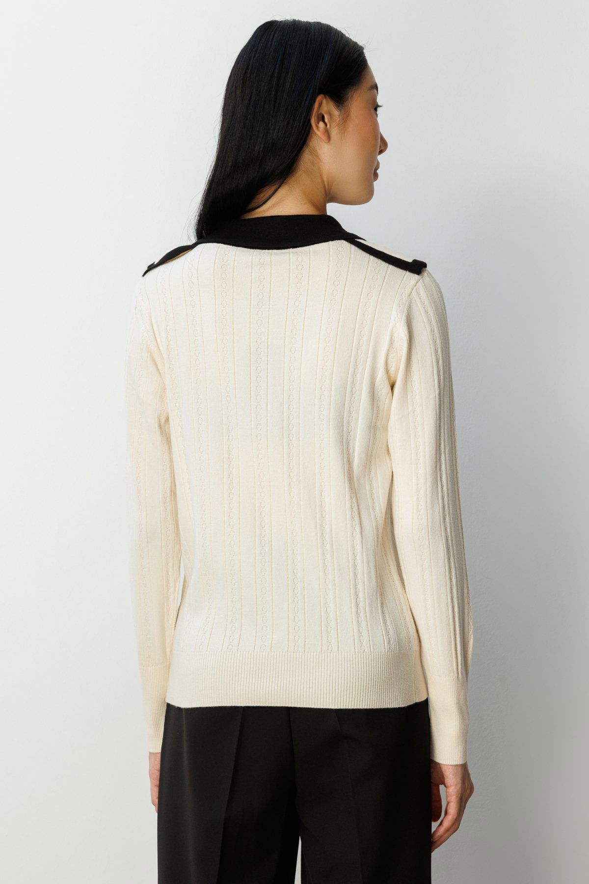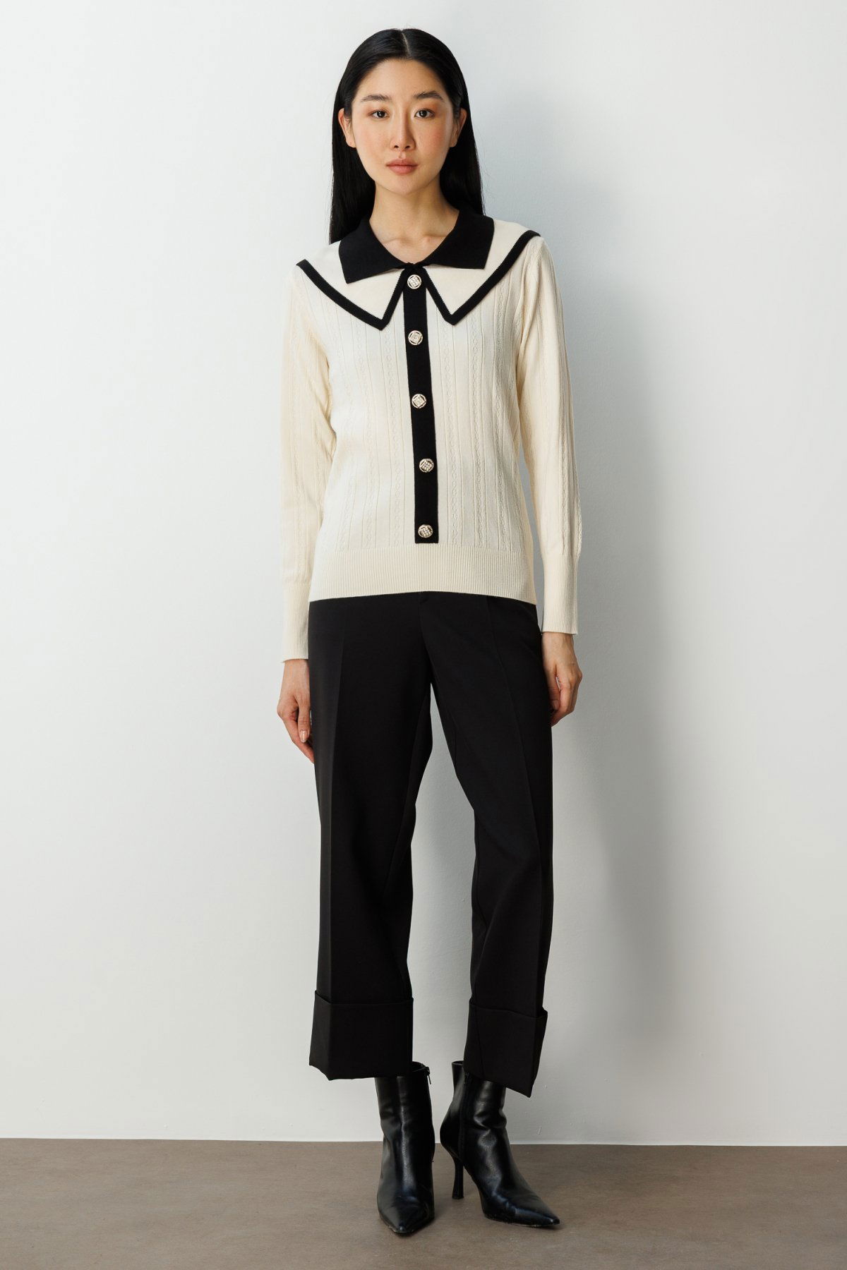 Detay: Bu astarsız triko kazak, gömlek yaka detayıyla klasik şıklığı modern bir dokunuşla buluşturuyor. Uzun kol yapısı sayesinde serin havalarda ideal bir kullanım sunarken, triko kumaşın yumuşak ve esnek dokusu gün boyu konfor sağlar. Hem günlük stilinize hem de ofis kombinlerinize kolayca uyum sağlayan bu kazak, zarif ve kullanışlı bir parça olarak gardırobunuzda öne çıkabilir;