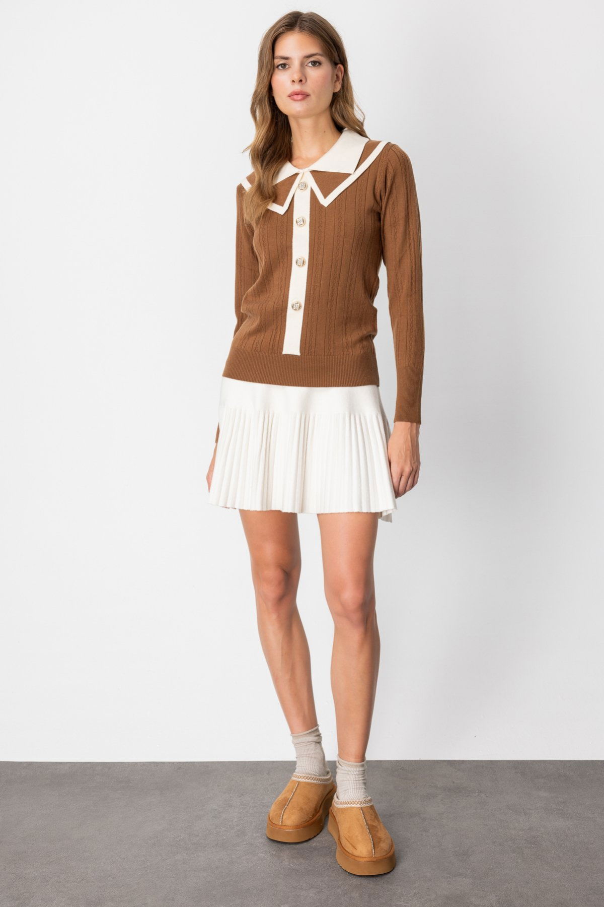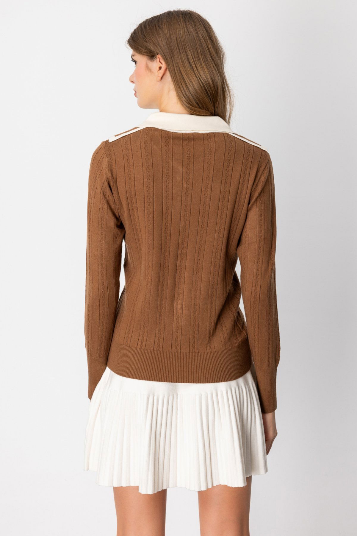 Detay: Bu astarsız triko kazak, gömlek yaka detayıyla klasik şıklığı modern bir dokunuşla buluşturuyor. Uzun kol yapısı sayesinde serin havalarda ideal bir kullanım sunarken, triko kumaşın yumuşak ve esnek dokusu gün boyu konfor sağlar. Hem günlük stilinize hem de ofis kombinlerinize kolayca uyum sağlayan bu kazak, zarif ve kullanışlı bir parça olarak gardırobunuzda öne çıkabilir;