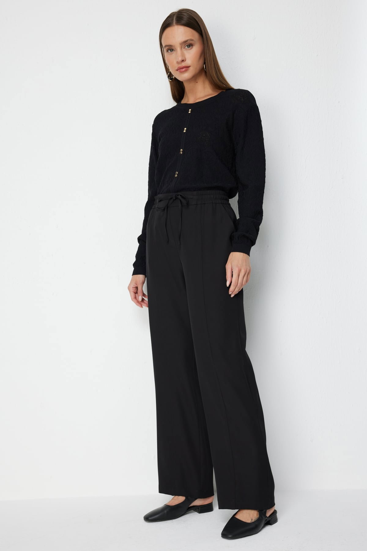Detay: Dokuma kumaştan üretilen bu pantolon, astarsız yapısıyla hafif ve rahat bir kullanım sunar. Lastikli bel detayı konforlu bir deneyim sağlarken bol paça tasarımı özgür ve modern bir duruş kazandırır. Yan cepler ise hem işlevsellik hem de şıklık katar. Günlük kombinlerden hafta sonu gezilerine kadar stilinizi tamamlayacak rahat ve kullanışlı bir parça olarak öne çıkar;