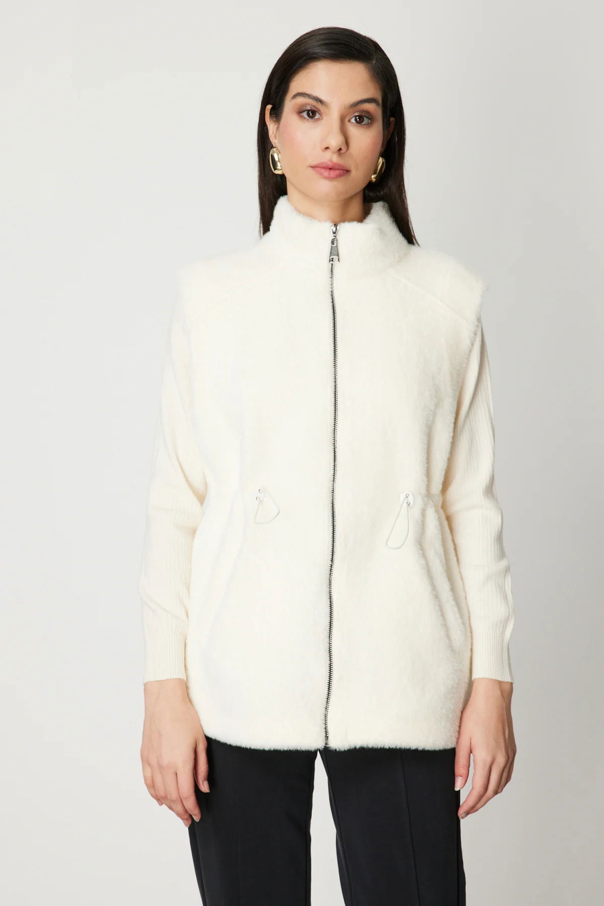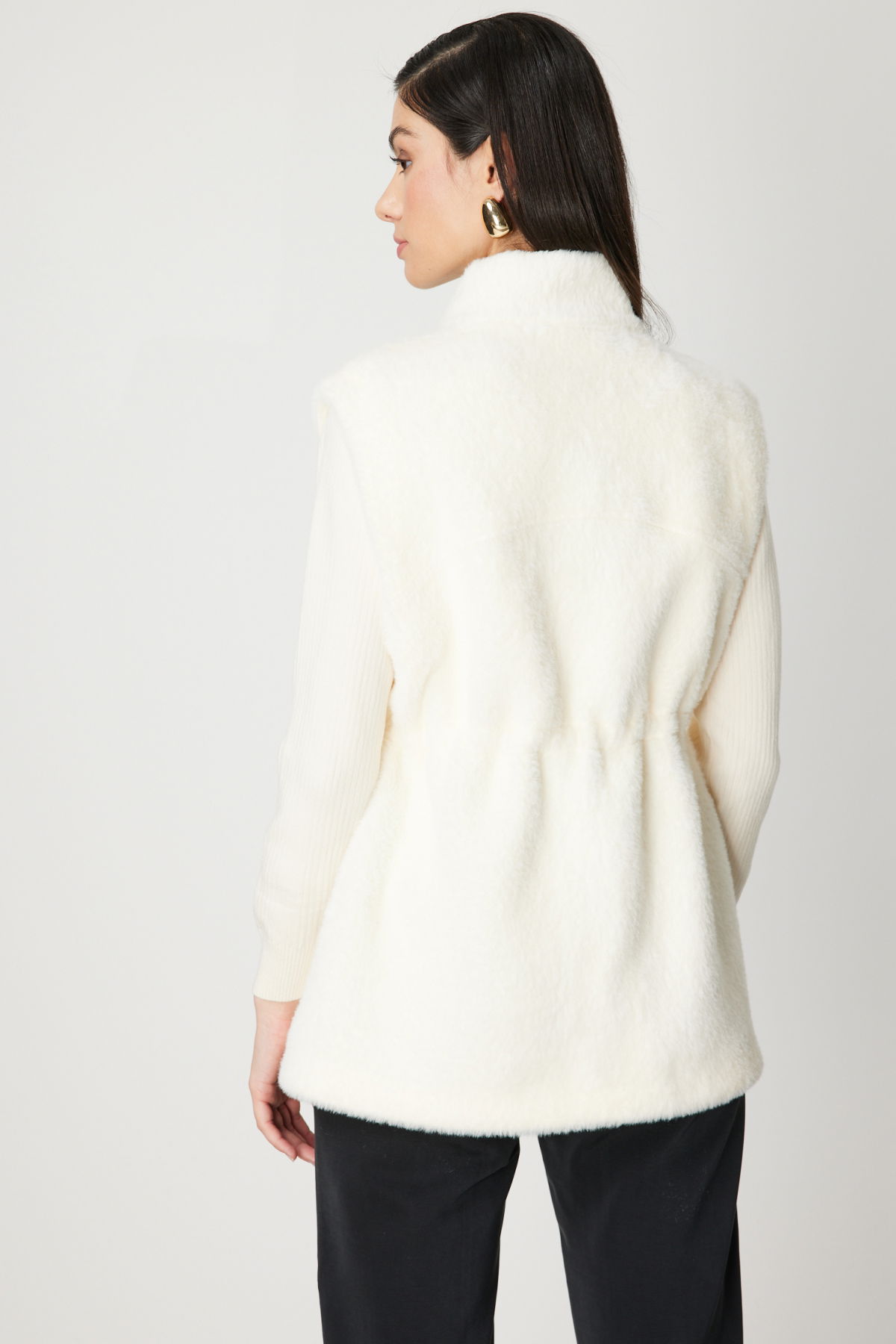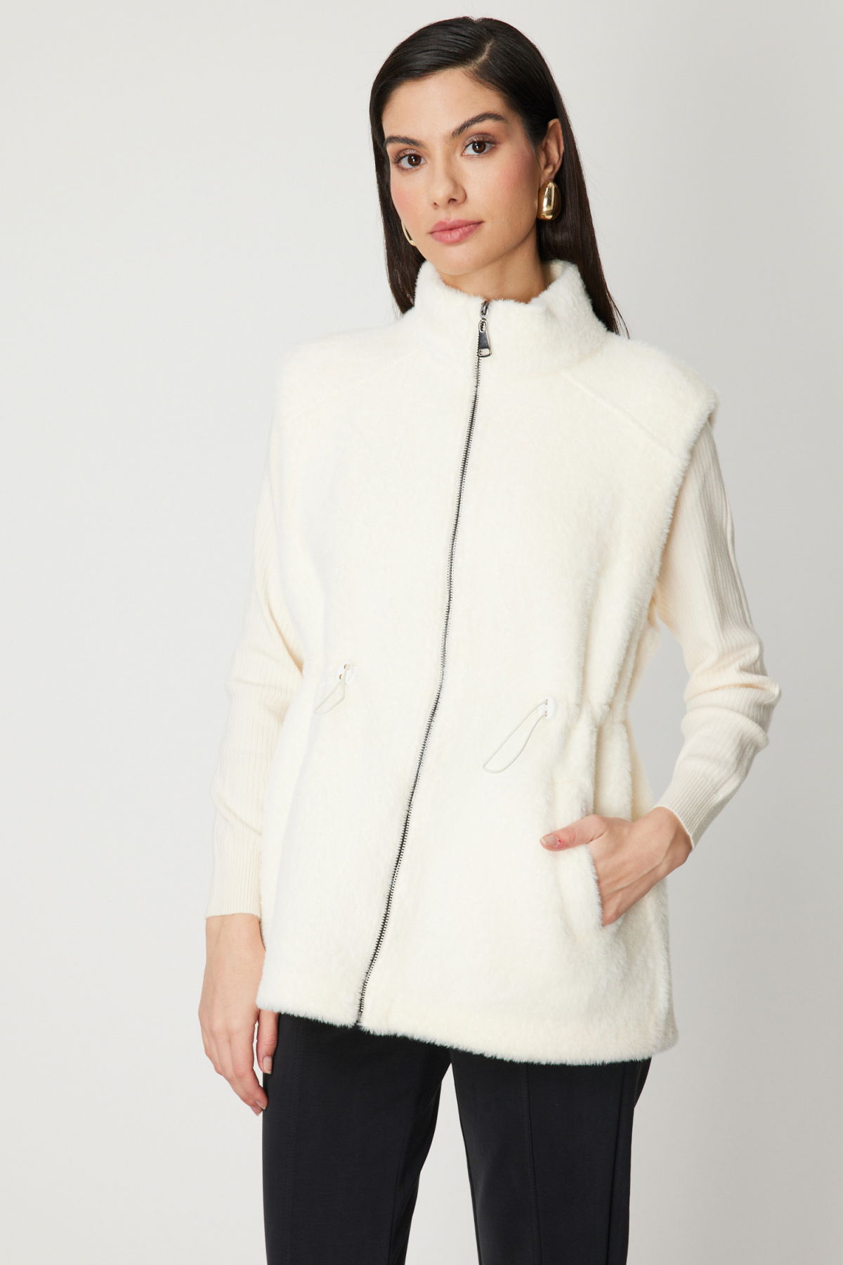 On Kadın Dik Yaka Beli Lastikli Peluş Yelek 66932 Ekru