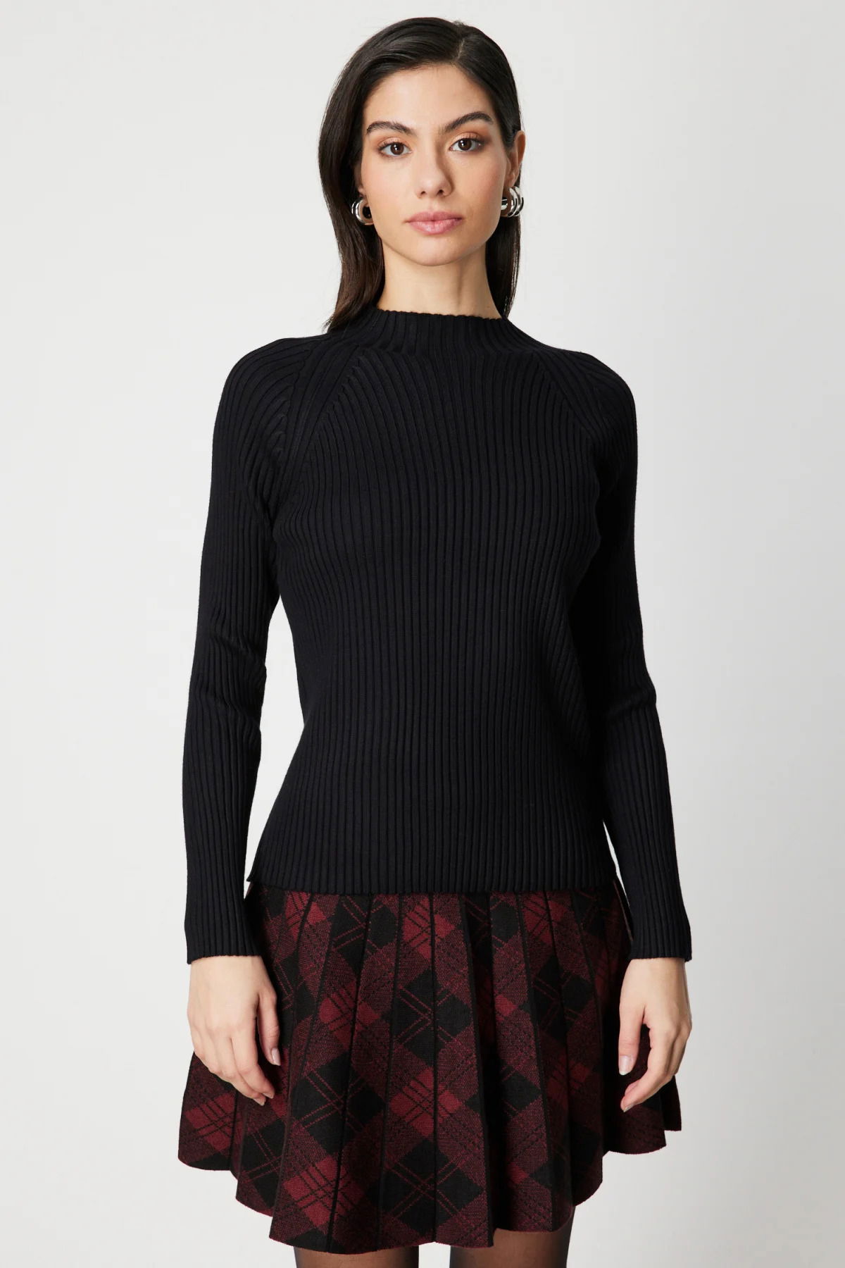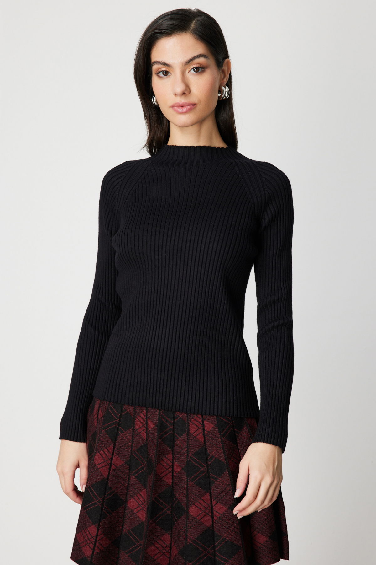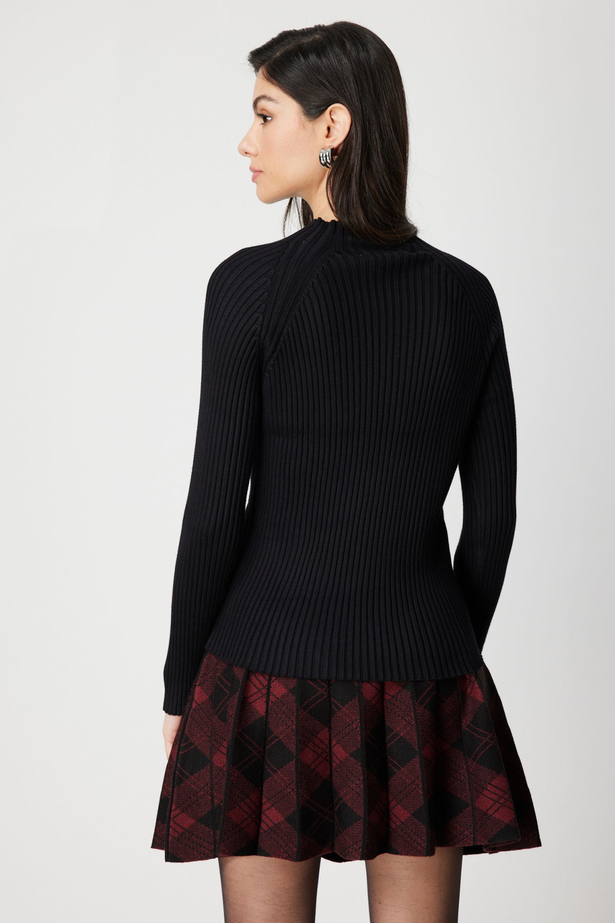 On Kadın Dik Yaka Fitilli Triko Kazak 60357 Siyah