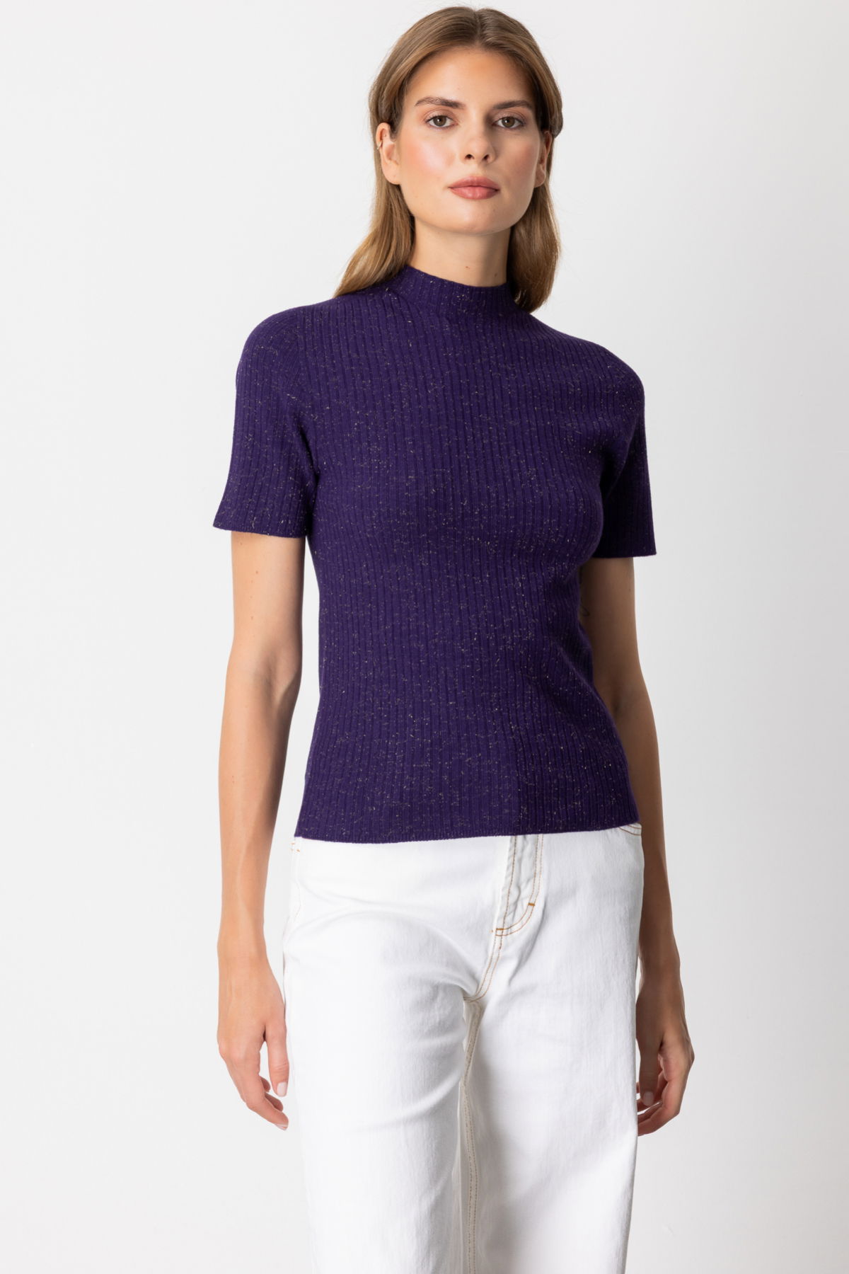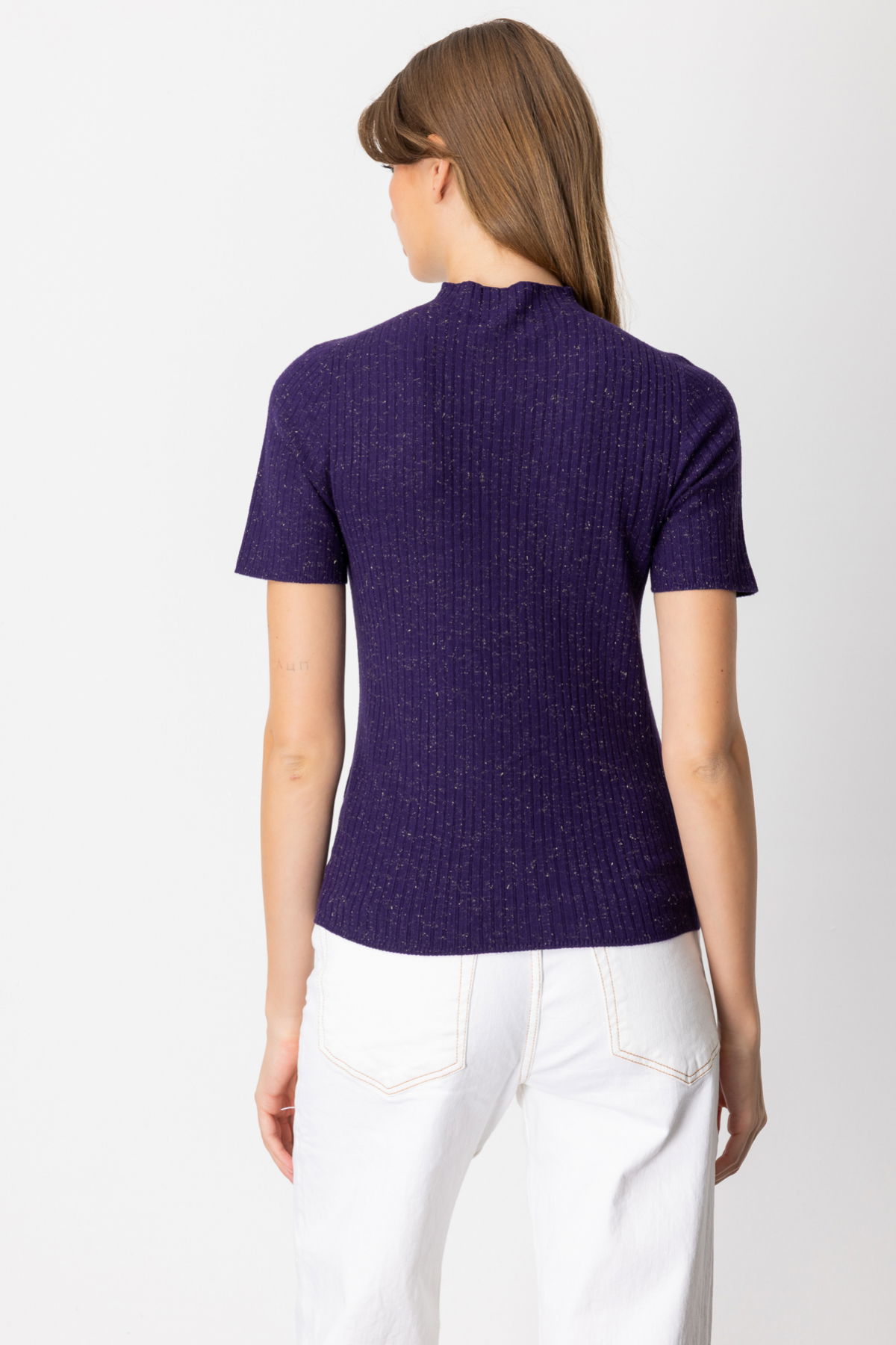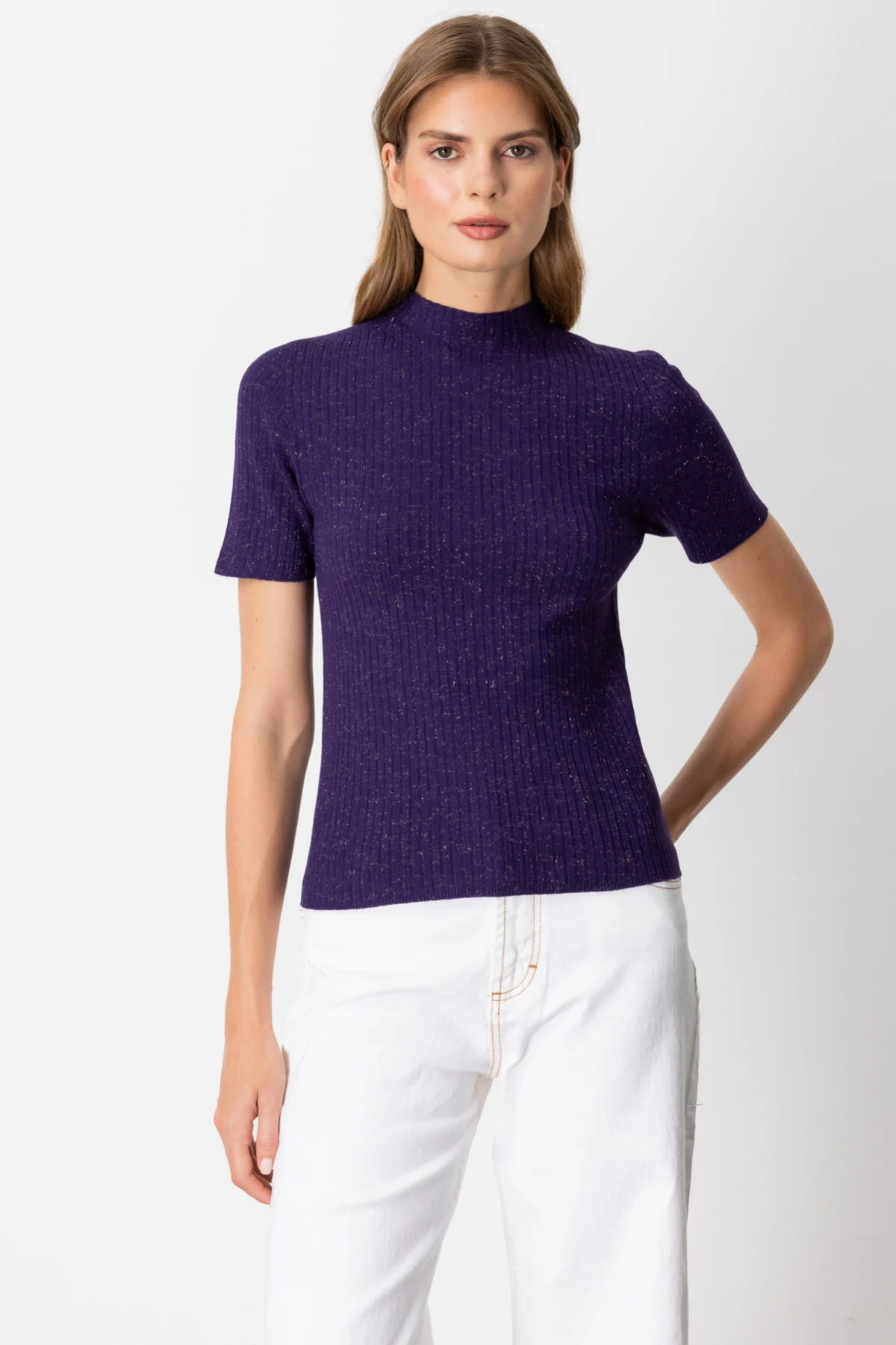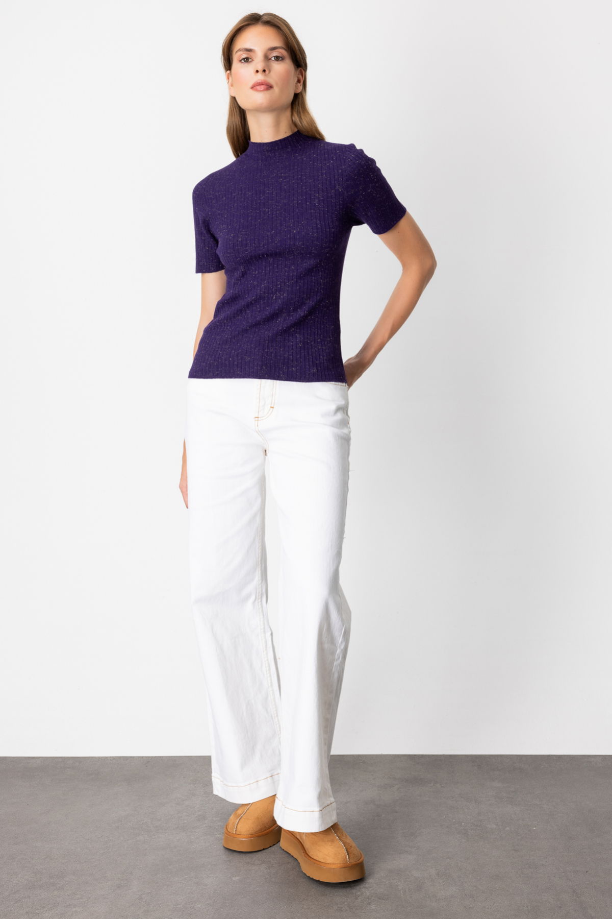 On Kadın Dik Yaka Kısa Kollu Triko Kazak 69302 Mor