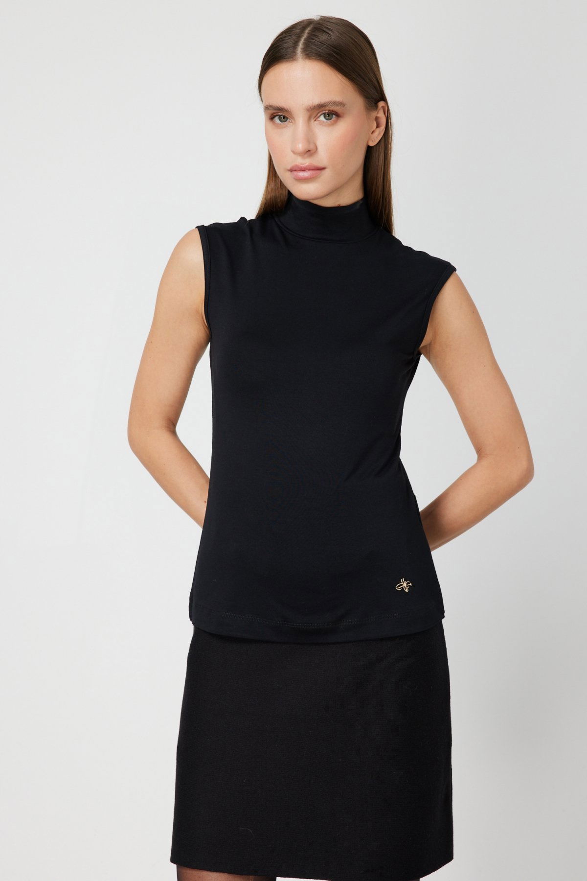On Kadın Dik Yaka Kolsuz Basic Bluz 61432 Siyah