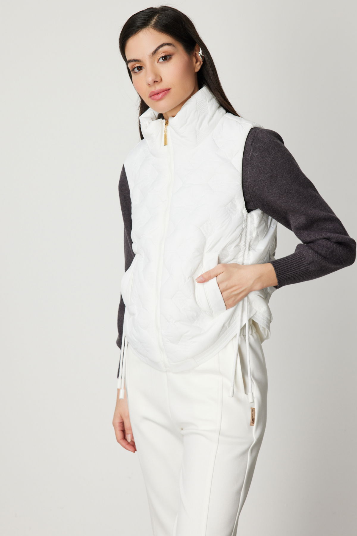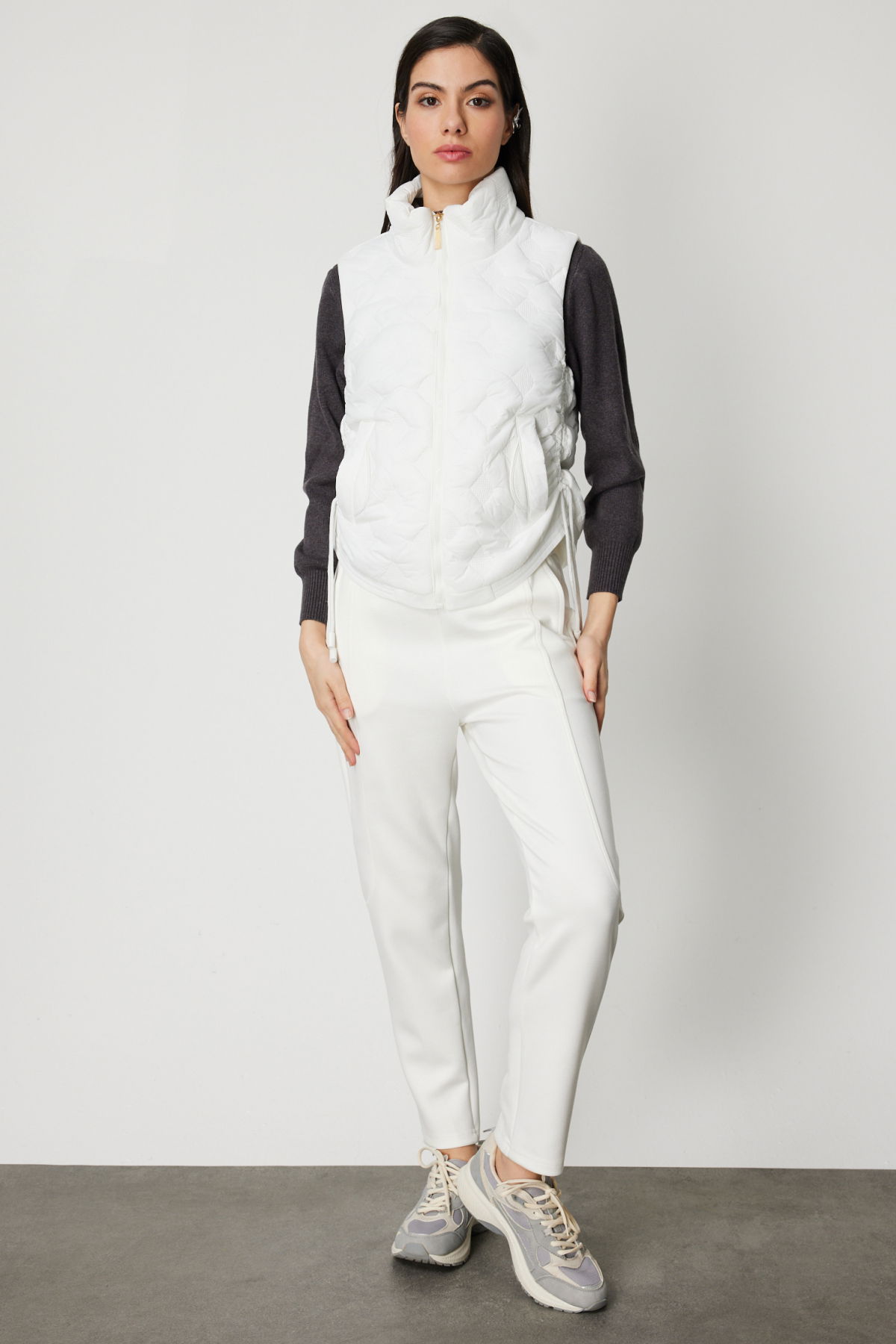 On Kadın Dik Yaka Şişme Yelek 60997 Ekru