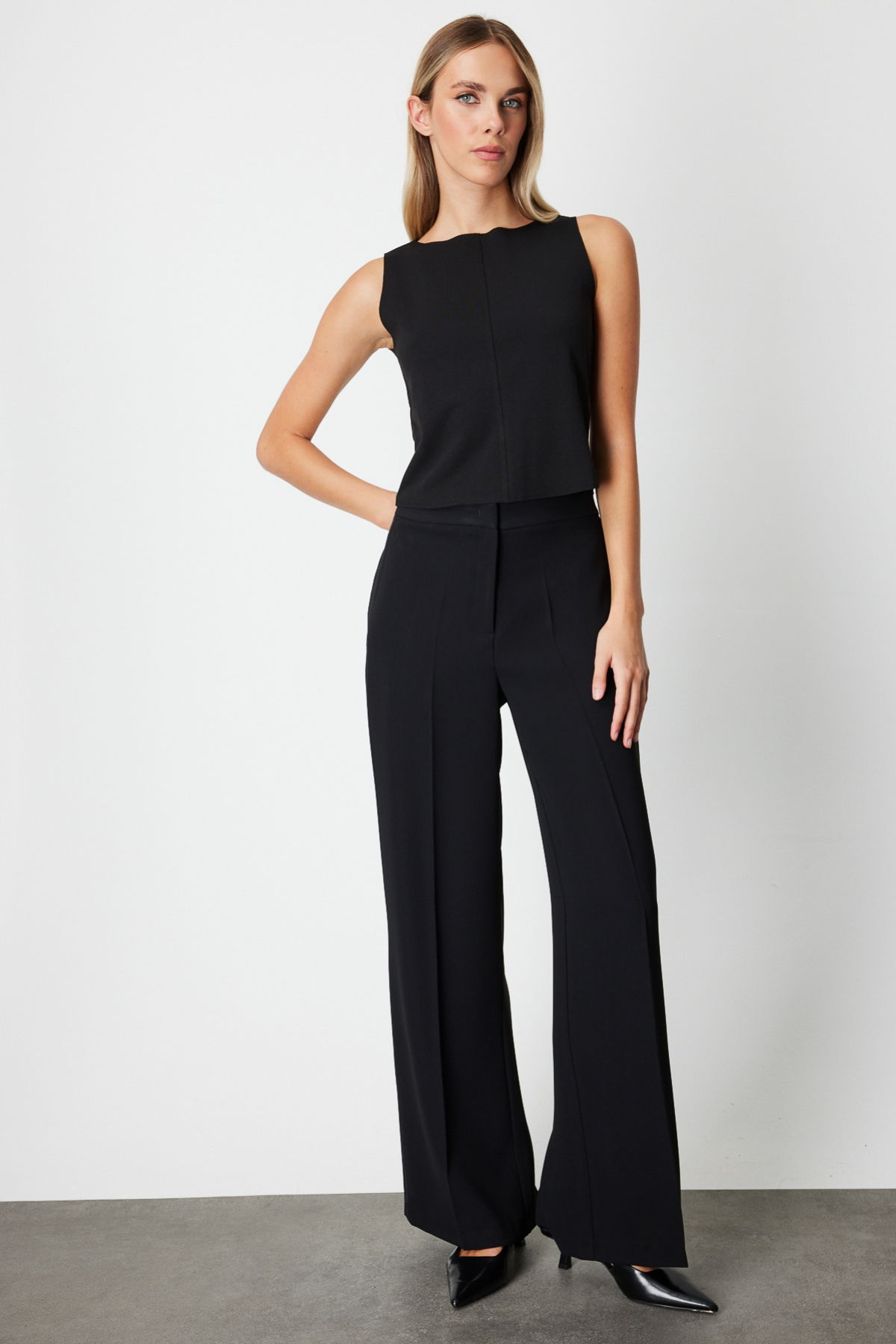 On Kadın Dikiş Detaylı Kolsuz Bluz 61369 Siyah