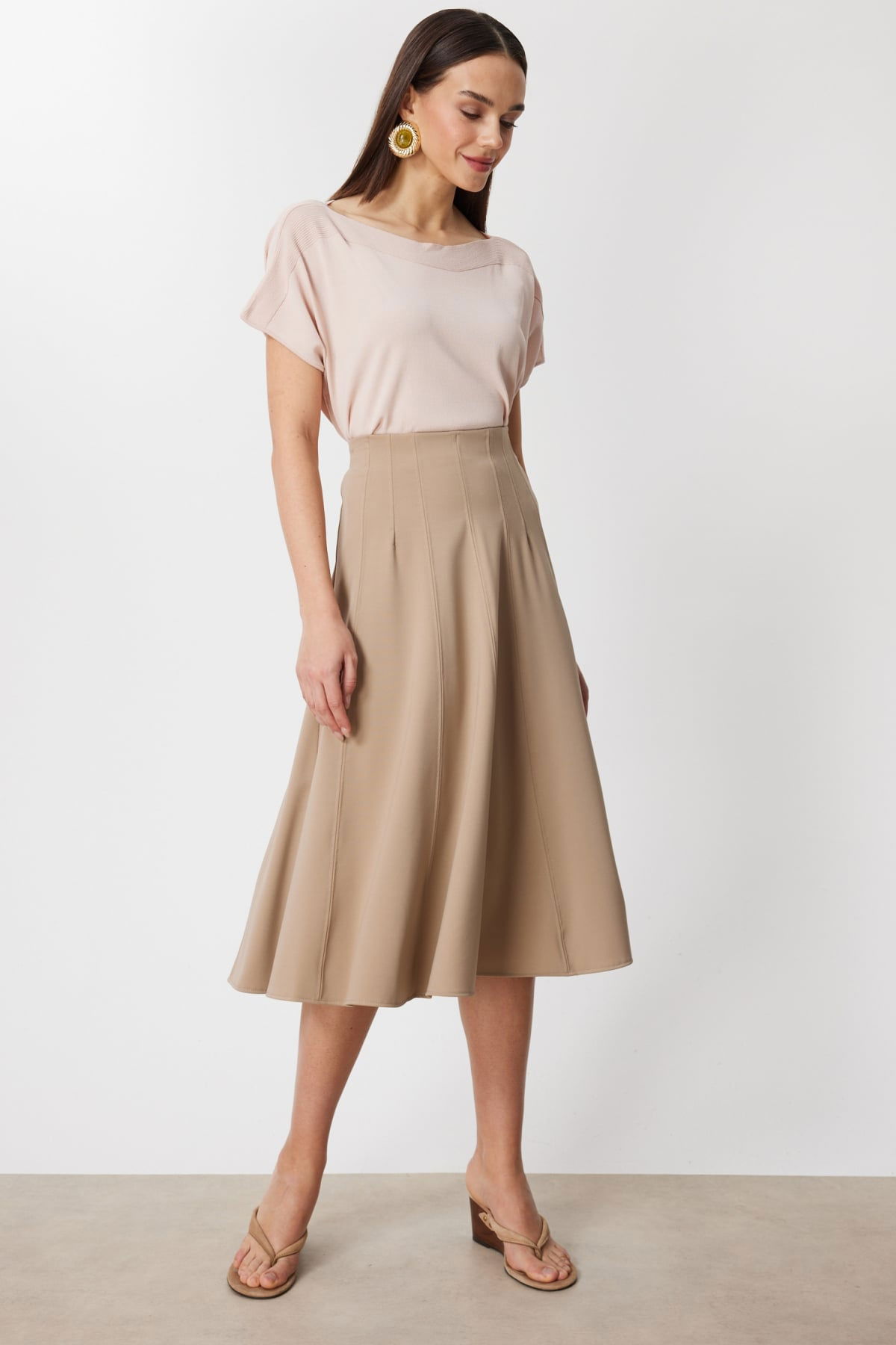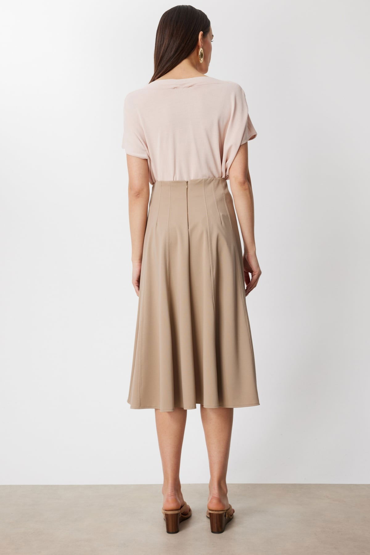 Detay: Dokuma kumaştan üretilen bu etek, astarsız yapısıyla hafif ve rahat bir kullanım sunar. Lastikli bel detayı konforlu bir deneyim sağlarken fermuarlı kapama şekli pratiklik ve modern bir görünüm kazandırır. Günlük kombinlerden özel davetlere kadar şıklığınızı tamamlayacak zarif bir parça olarak öne çıkar;