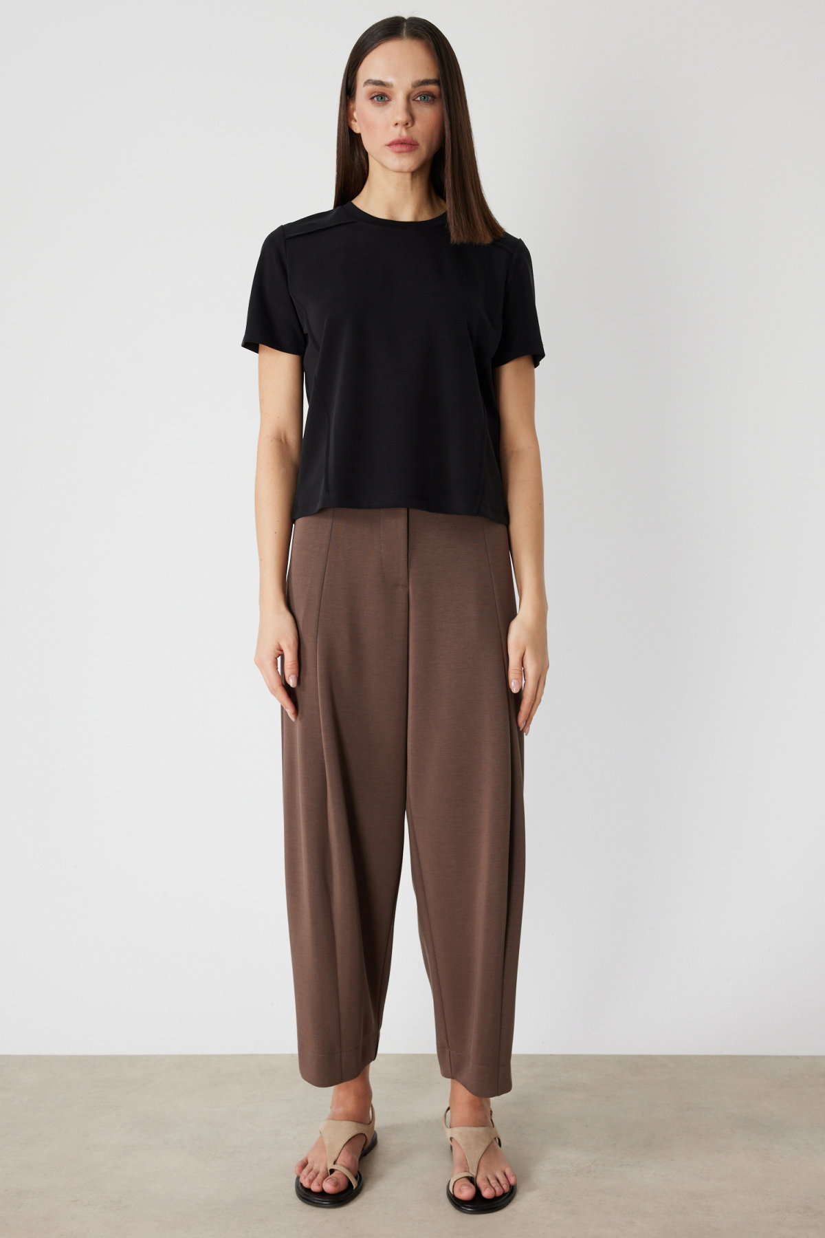 Detay: Dokuma kumaştan üretilen bu t-shirt, astarsız yapısıyla hafif ve rahat bir kullanım sunar. Sıfır yaka detayı modern bir görünüm kazandırırken kısa kol formu yaz aylarında serinlik ve konfor sağlar. Günlük kombinlerden özel davetlere kadar her ortamda şıklığınızı tamamlayacak zarif bir parça olarak öne çıkar;