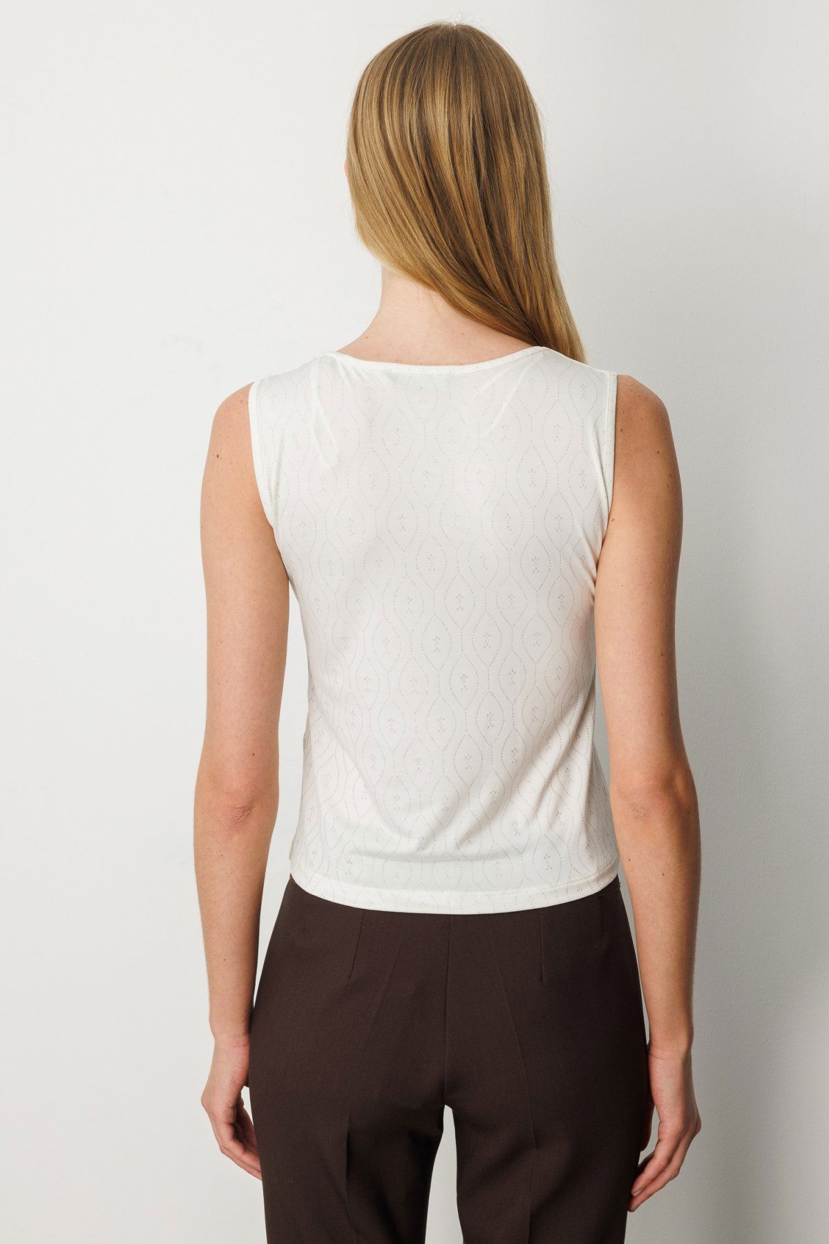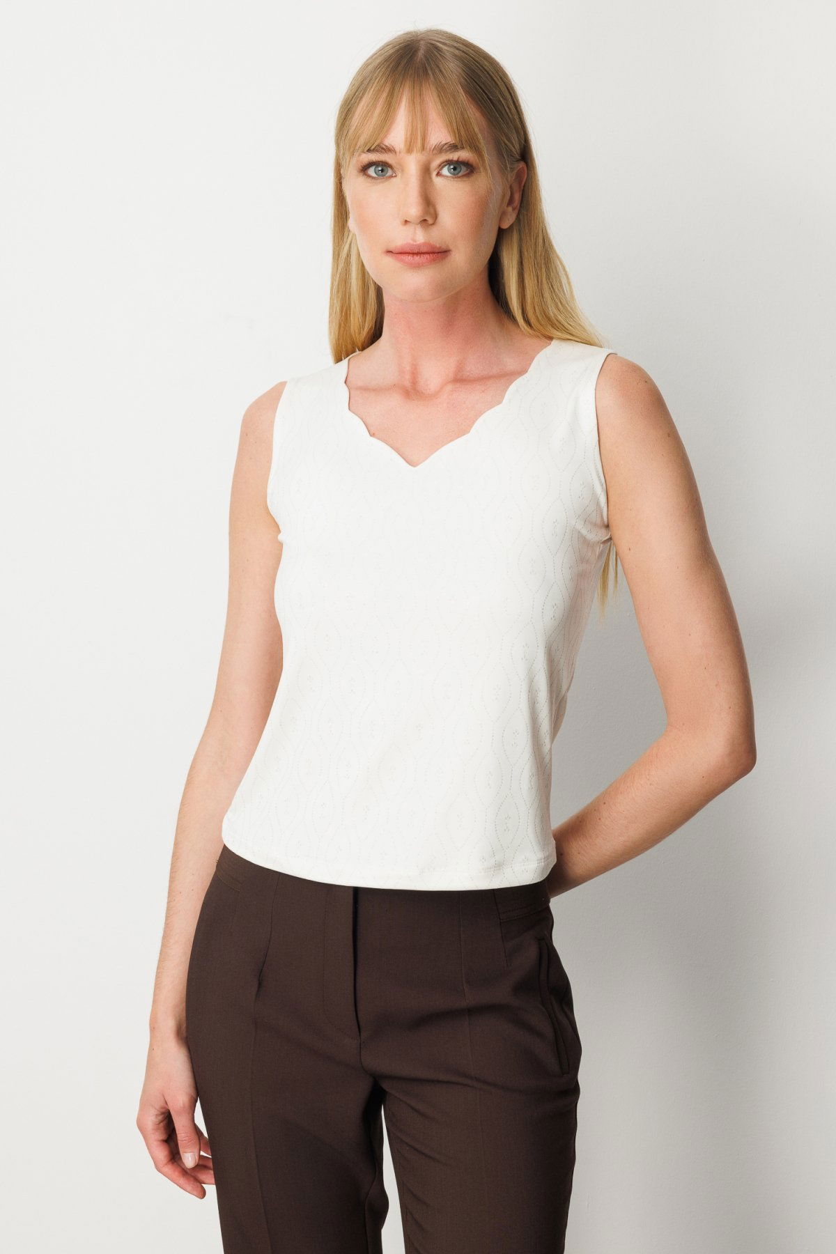 Detay: Polyester kumaştan üretilmiş, astarsız ve V yaka tasarıma sahip bu kolsuz bluz, hafif yapısıyla yaz aylarında ideal bir konfor sunar. Modern kesimi ve sade çizgileriyle günlük kombinlere zarif bir dokunuş katar. Şıklığı ve rahatlığı bir arada arayanlar için vazgeçilmez bir parçadır;