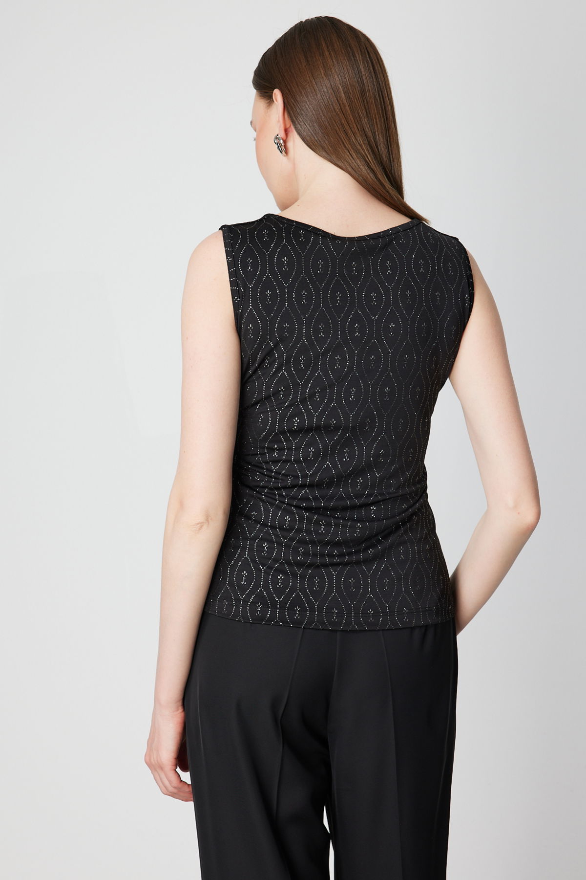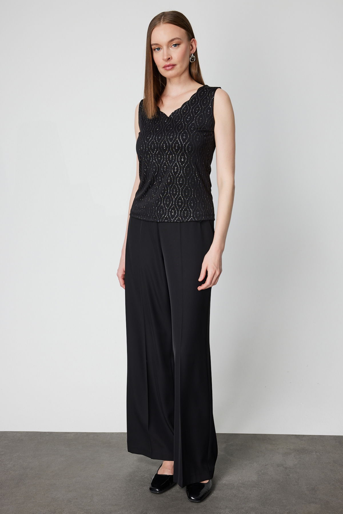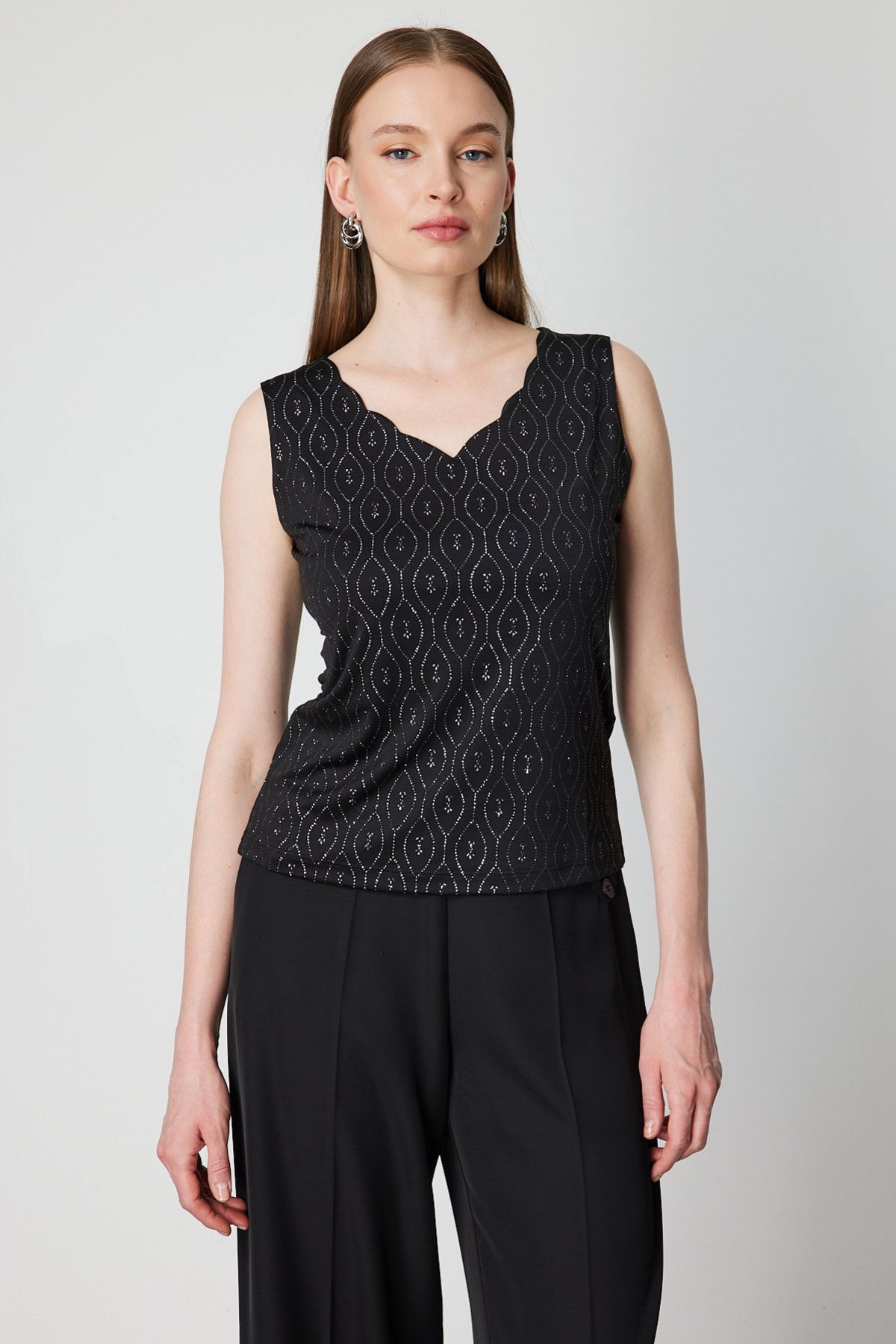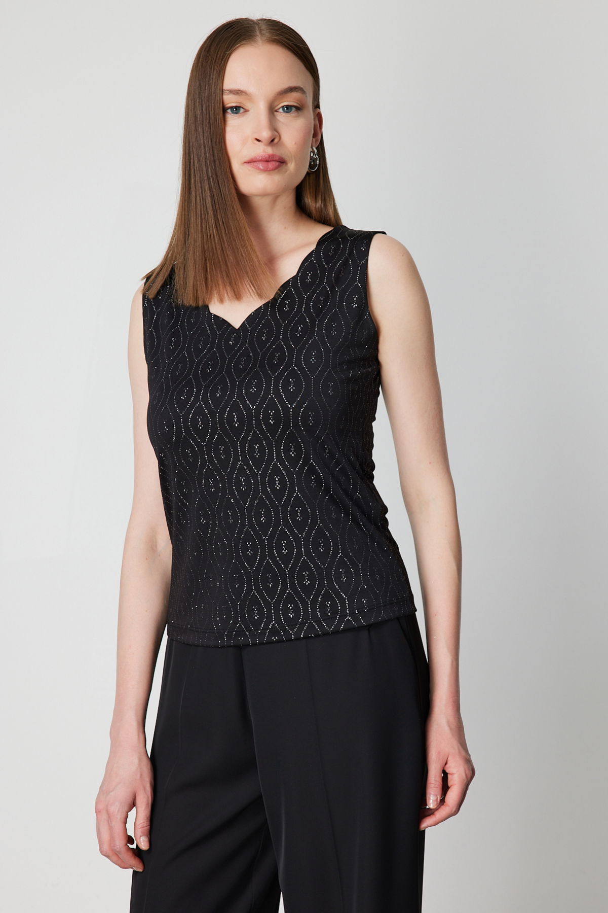 Detay: Polyester kumaştan üretilmiş, astarsız ve V yaka tasarıma sahip bu kolsuz bluz, hafif yapısıyla yaz aylarında ideal bir konfor sunar. Modern kesimi ve sade çizgileriyle günlük kombinlere zarif bir dokunuş katar. Şıklığı ve rahatlığı bir arada arayanlar için vazgeçilmez bir parçadır;