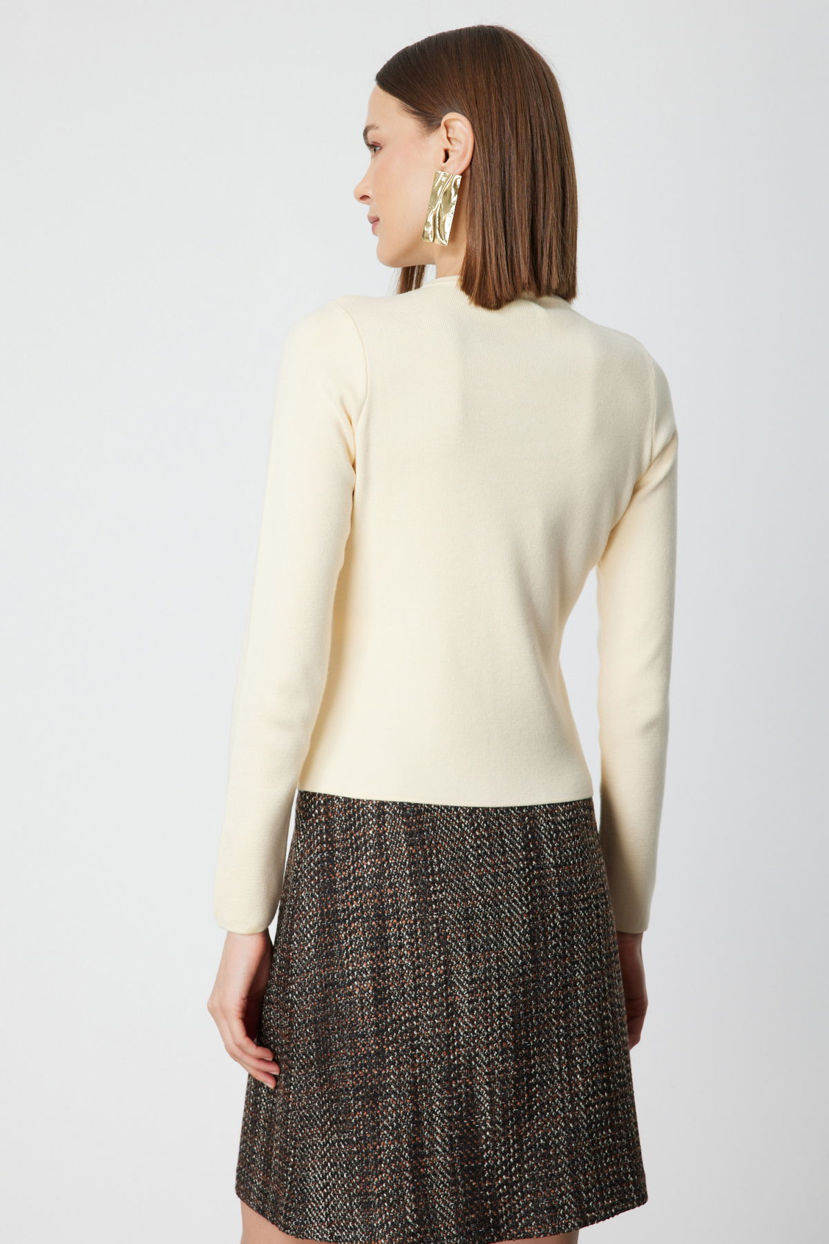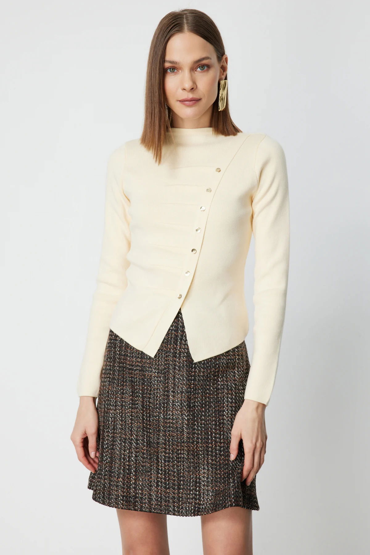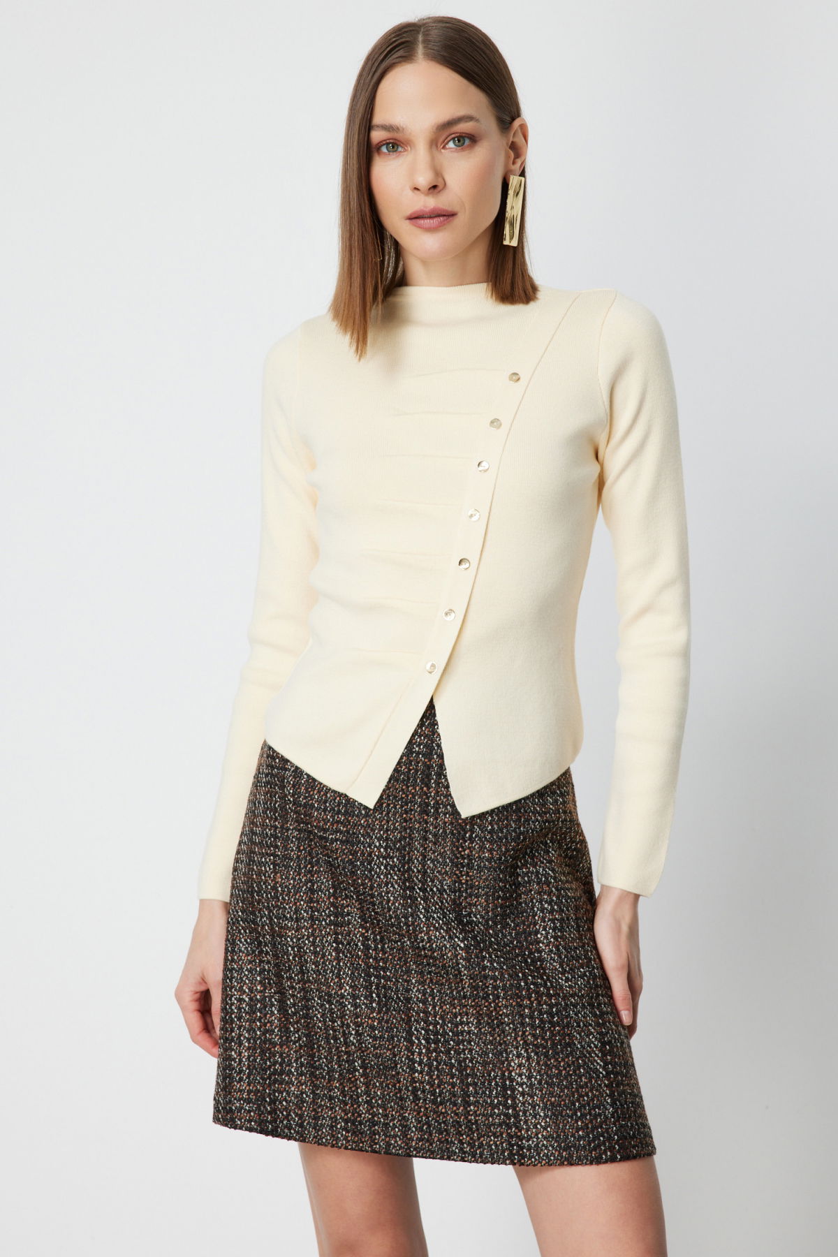 On Kadın Drape Detaylı Düğmeli Triko Kazak 65339 Krem