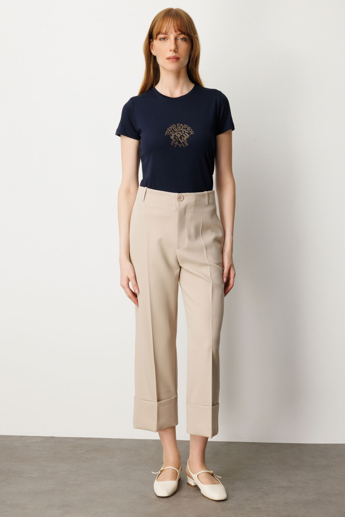 Detay: Yüksek bel tasarımıyla vücut hatlarını zarifçe vurgulayan bu dokuma pantolon, duble paça detayıyla modern ve şık bir duruş sergiliyor. Fermuarlı kapama özelliği sayesinde pratik bir kullanım sunarken, yan ceplerle hem fonksiyonellik hem de günlük rahatlık sağlanıyor. Günlük stilinizden ofis kombinlerine kadar geniş bir kullanım alanı sunan bu pantolon, sade tasarımıyla zamansız bir parça olarak öne çıkıyor;