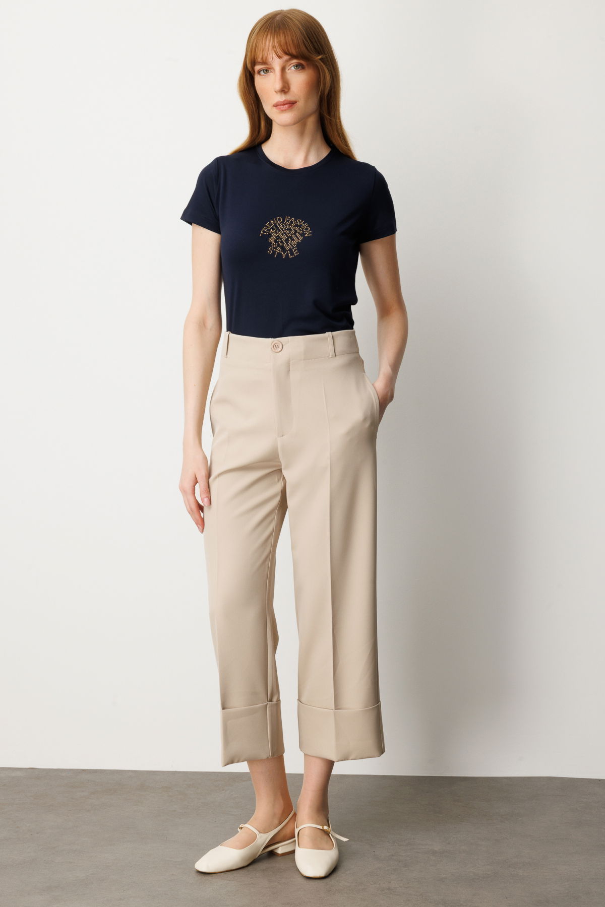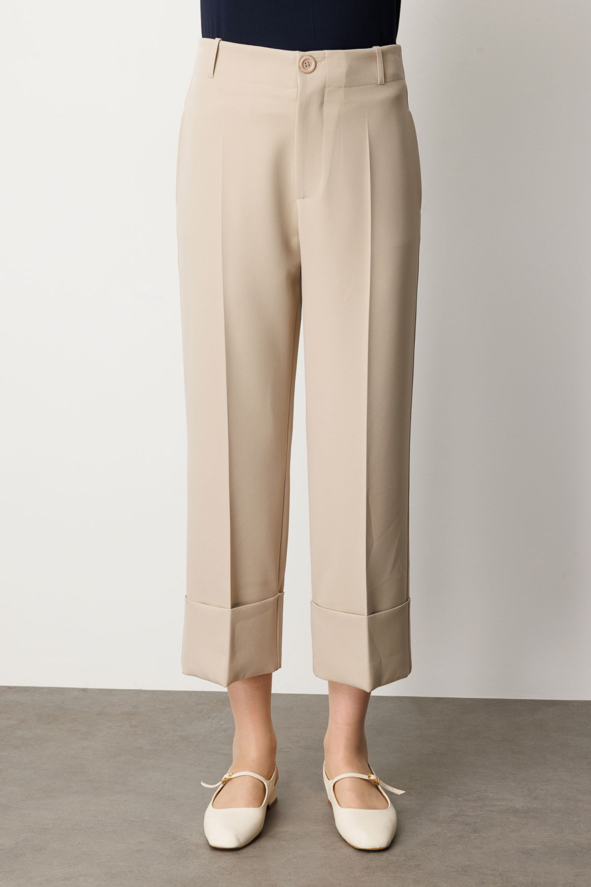 On Kadın Duble Paça Yan Cepli Pantolon 64127 Taş