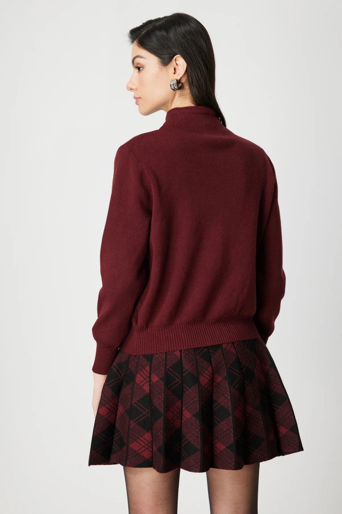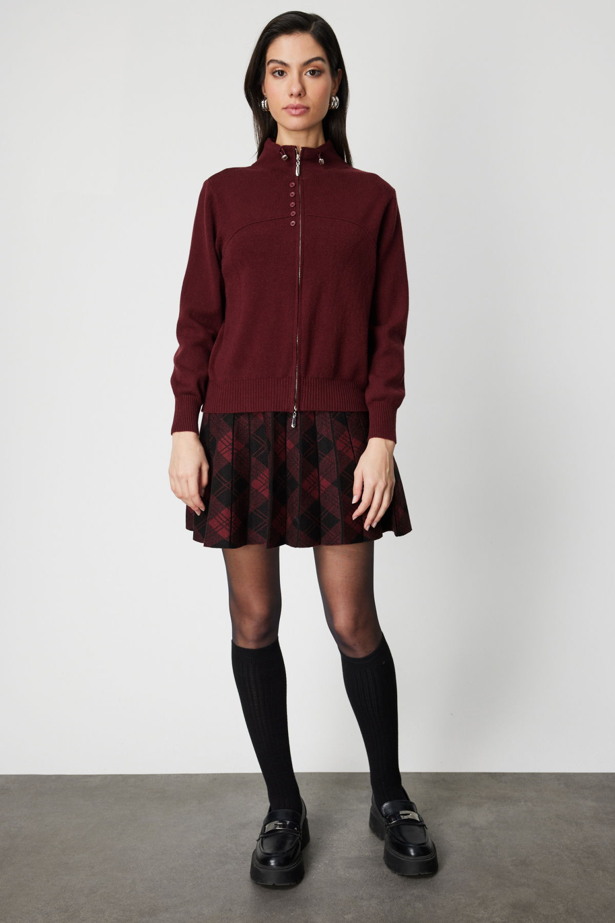 On Kadın Düğme Detaylı Dik Yaka Hırka 60952 Bordo