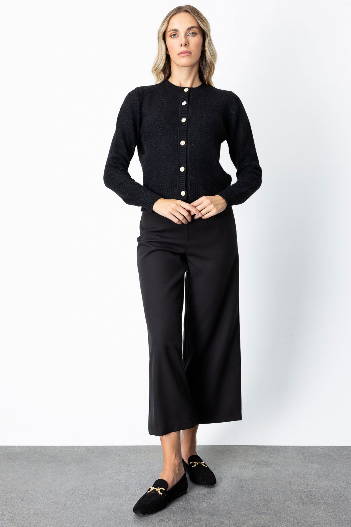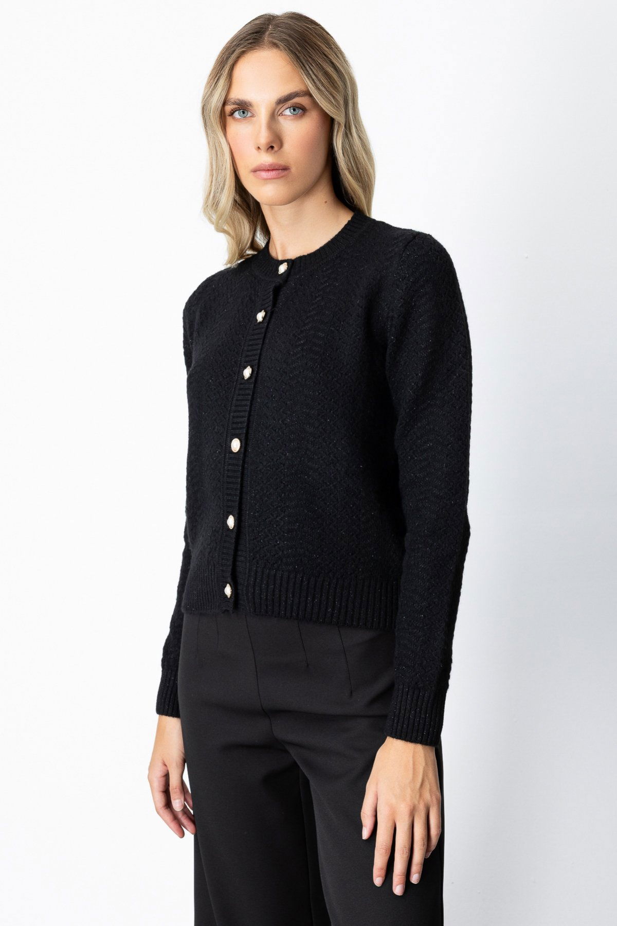 On Kadın Düğmeli Sıfır Yaka Hırka 63903 Siyah