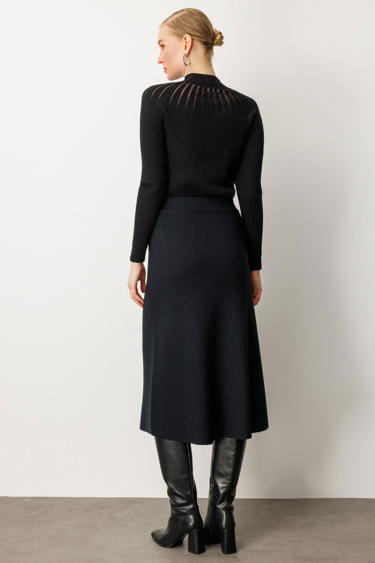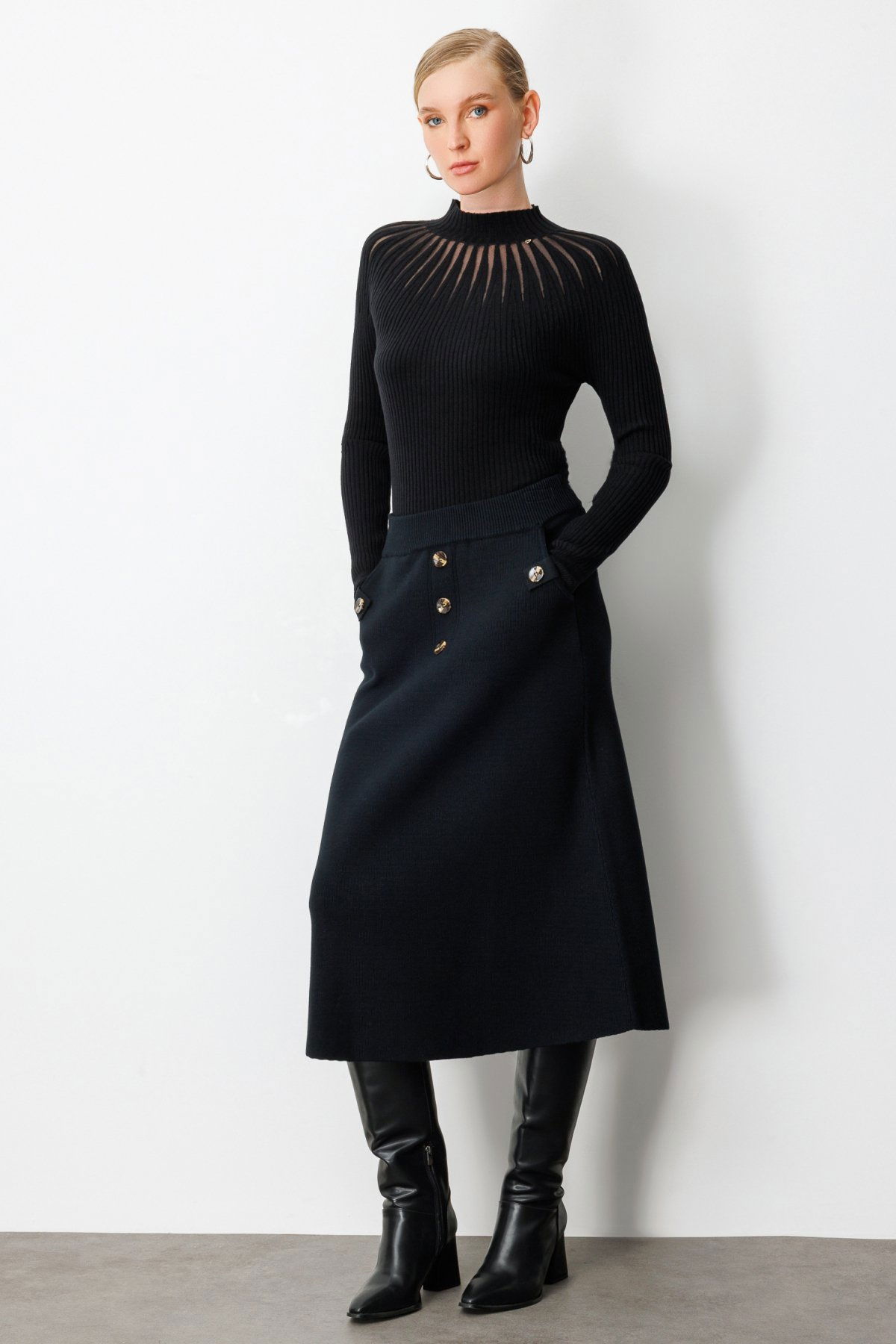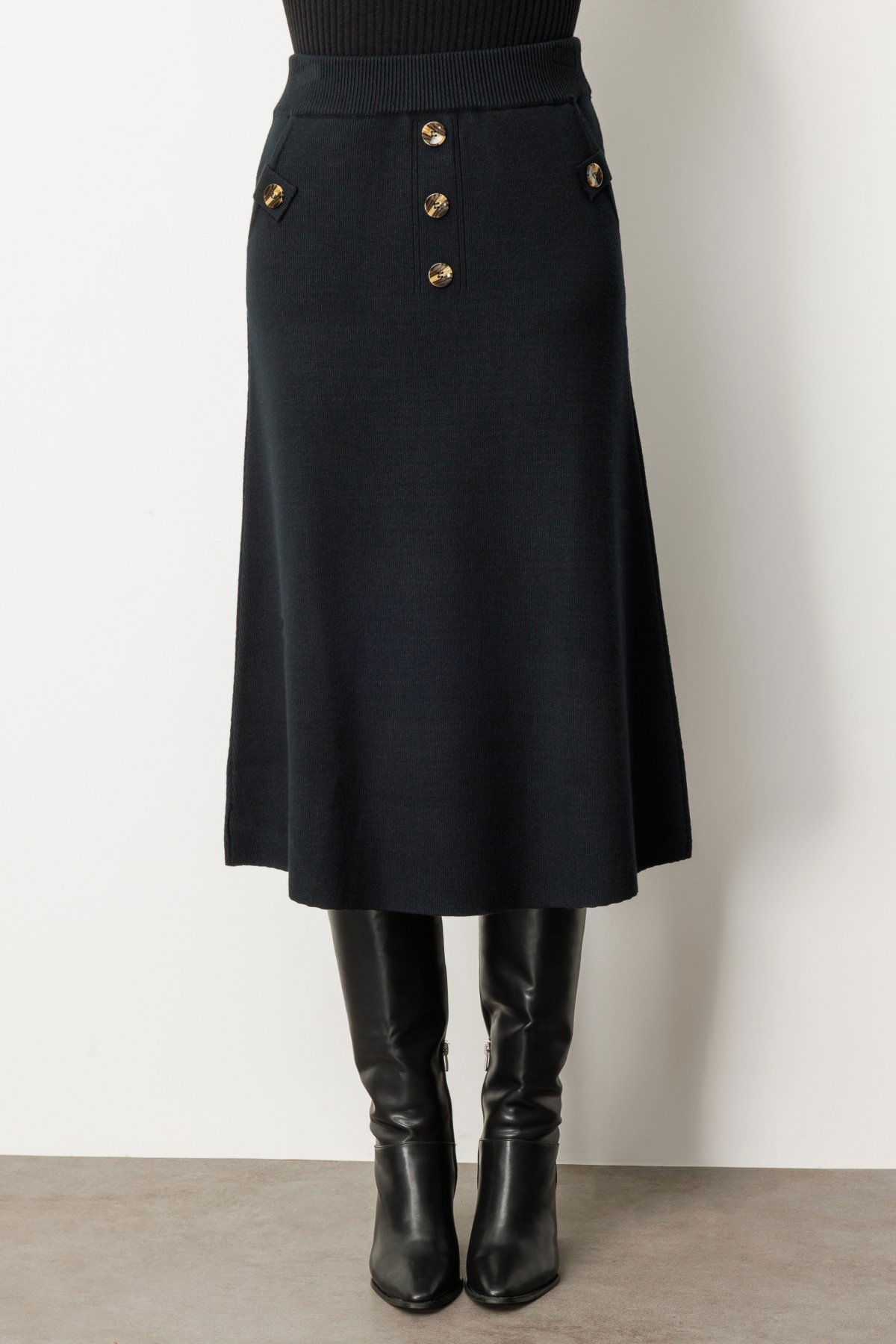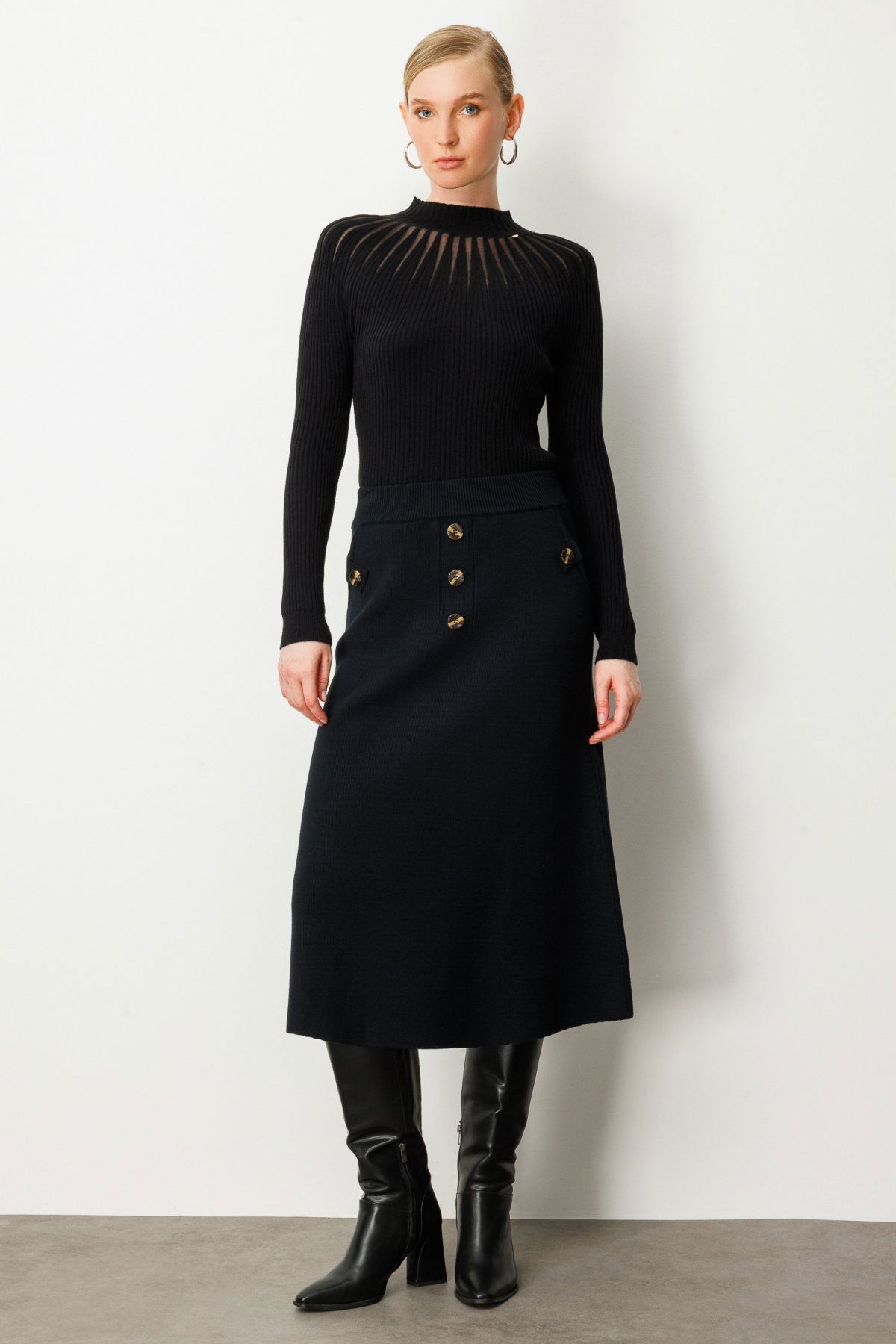 On Kadın Düğmeli Triko Etek 65207 Siyah