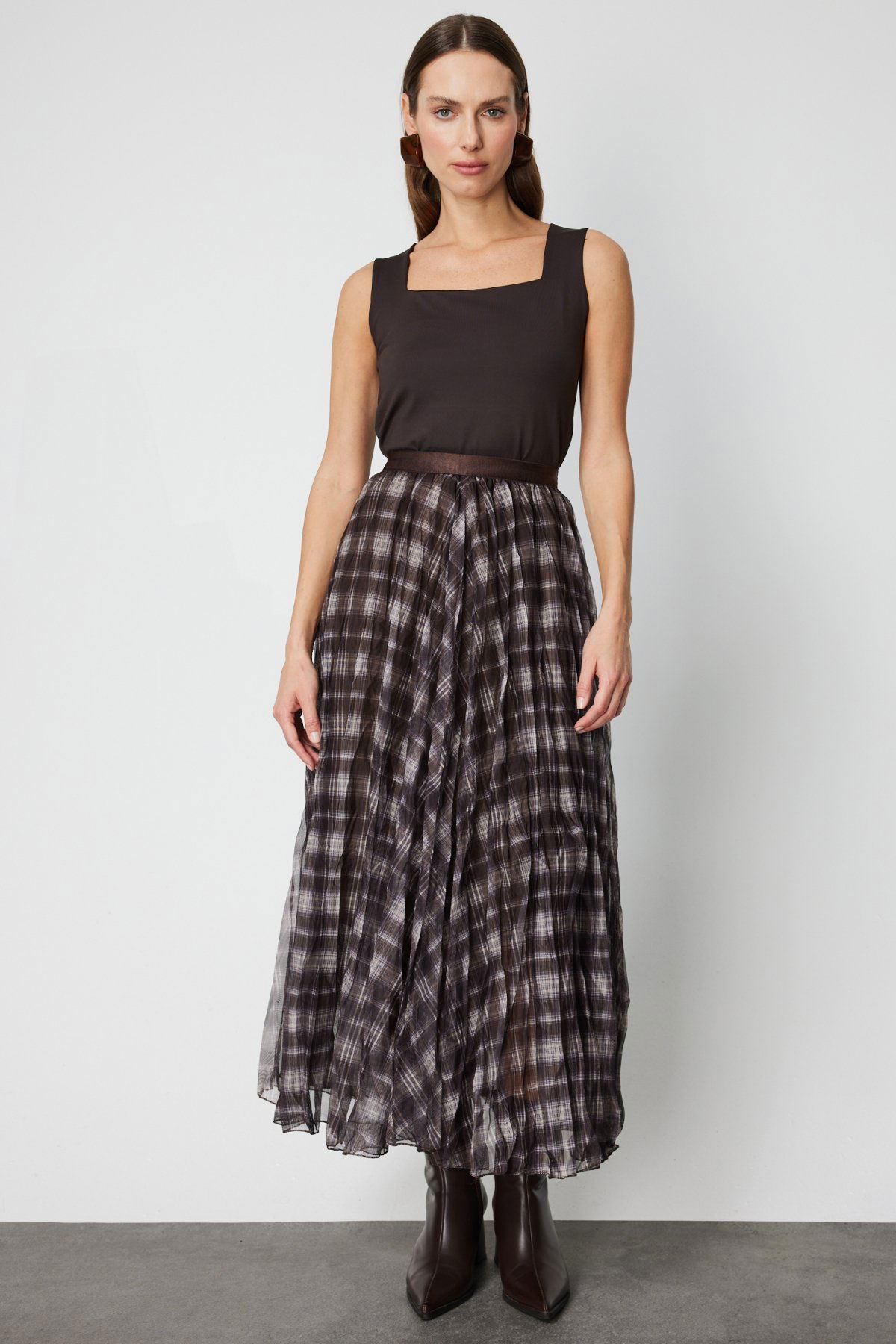 Detay: Dayanıklı polyester kumaşıyla uzun ömürlü ve formunu koruyan bir yapı sunan bu maxi etek, astarlı tasarımı sayesinde ekstra konfor ve düzgün bir duruş sağlar. Lastikli bel detayıyla vücuda uyum sağlayarak rahat bir kullanım sunan bu parça, hem günlük kombinlerde hem de daha şık stil arayışlarında ideal bir tercihtir. Hafif parlak dokusuyla modern ve zarif bir görünüm kazandırır;