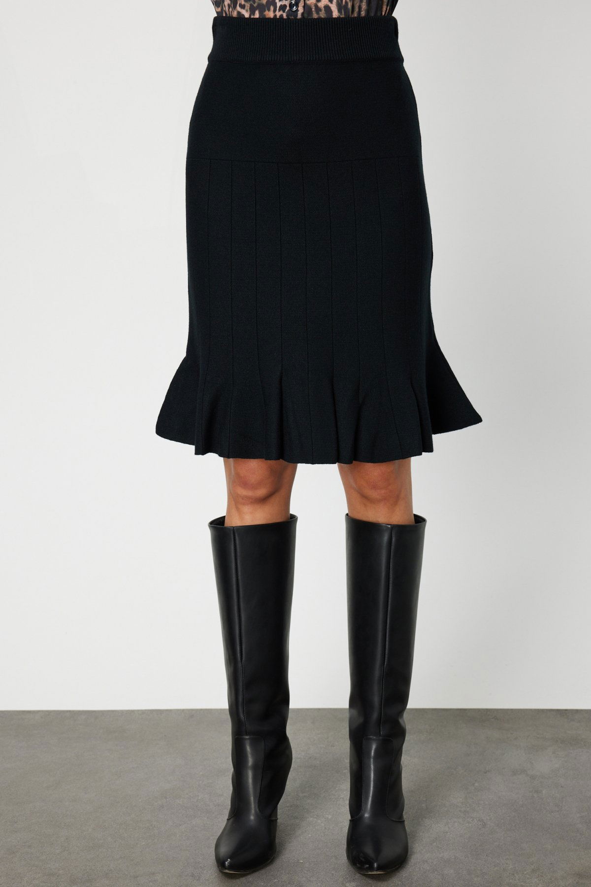 On Kadın Eteği Pileli Diz Üstü Triko Etek 65200 Siyah