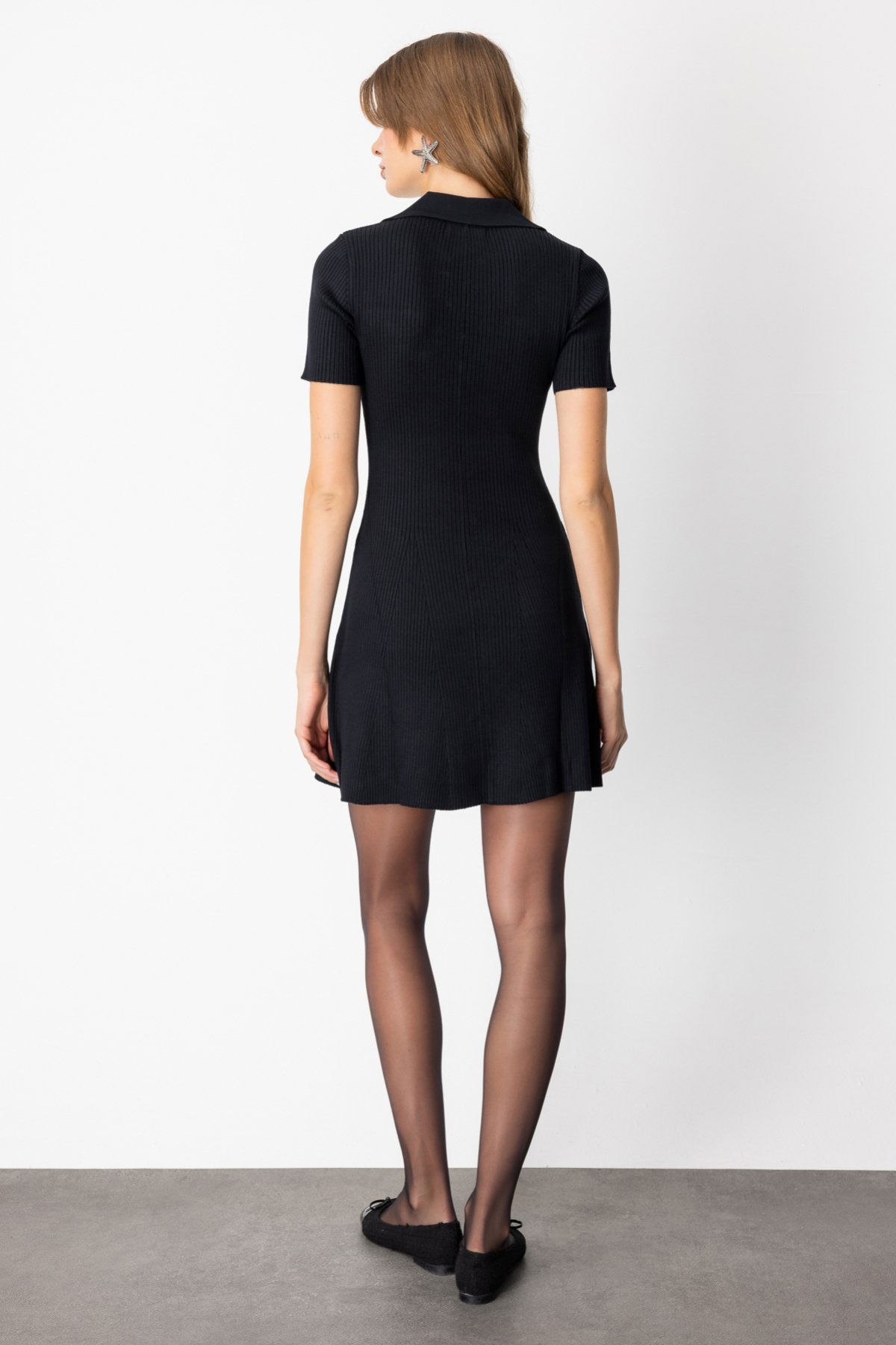 On Kadın Eteği Volanlı Mini Triko Elbise 65401 Siyah