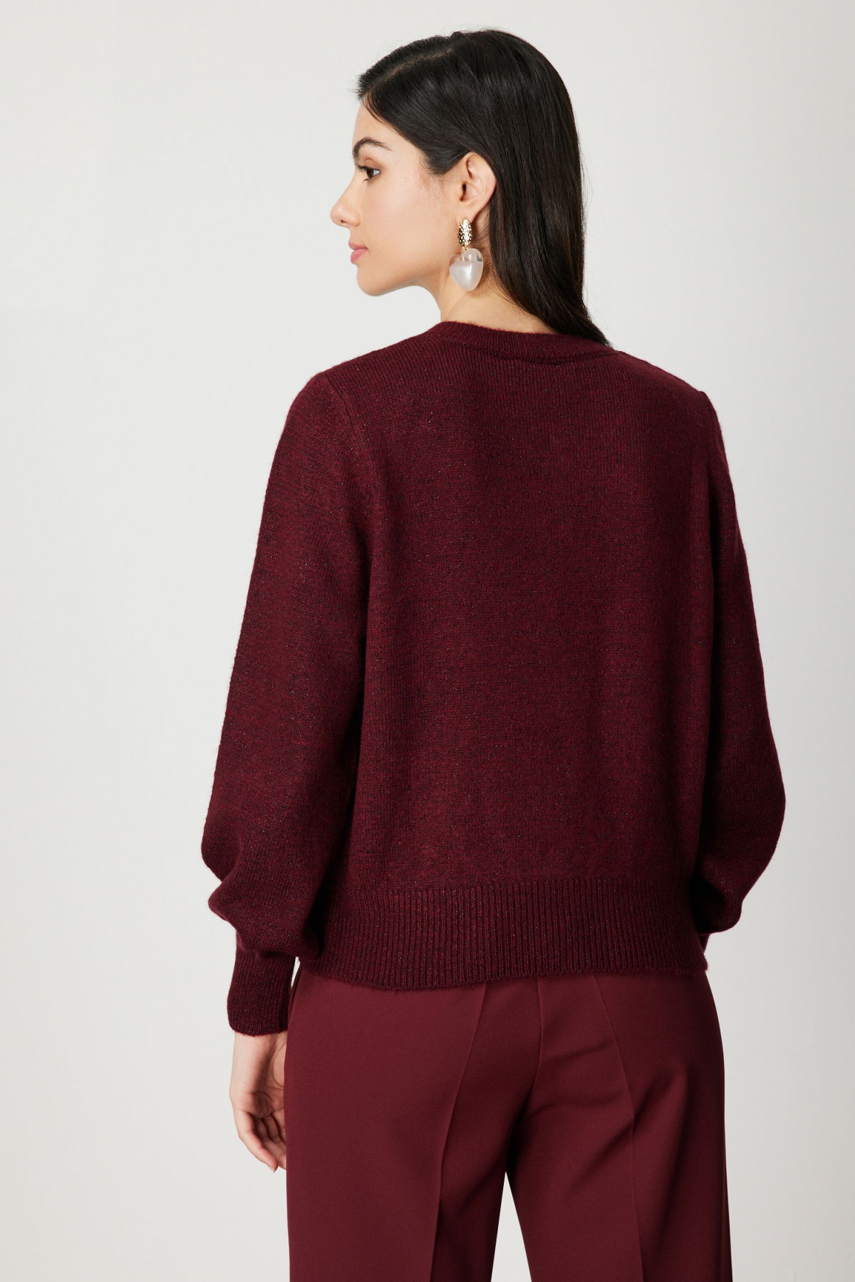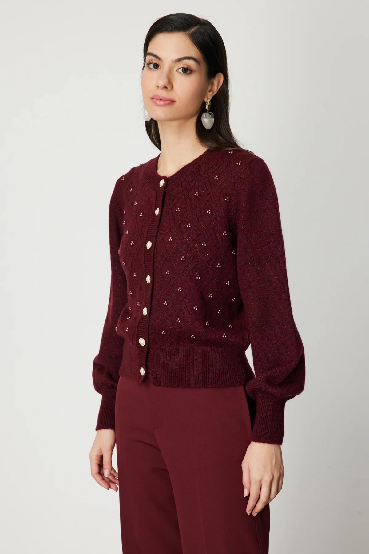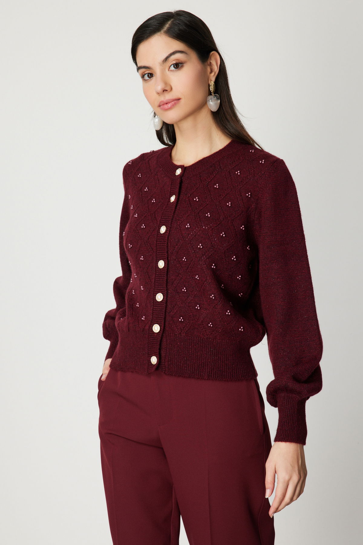 On Kadın İnci Düğmeli Triko Hırka 63922 Bordo