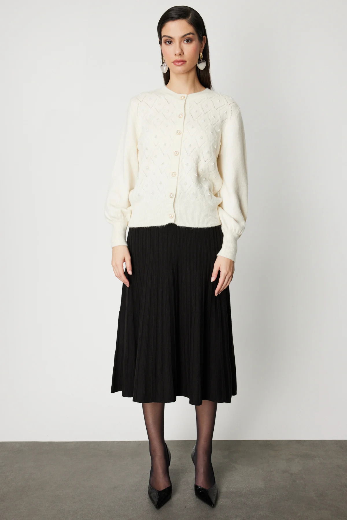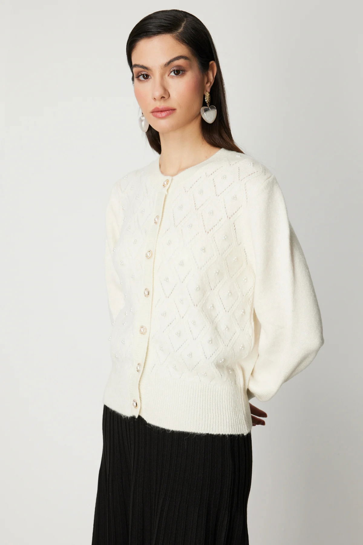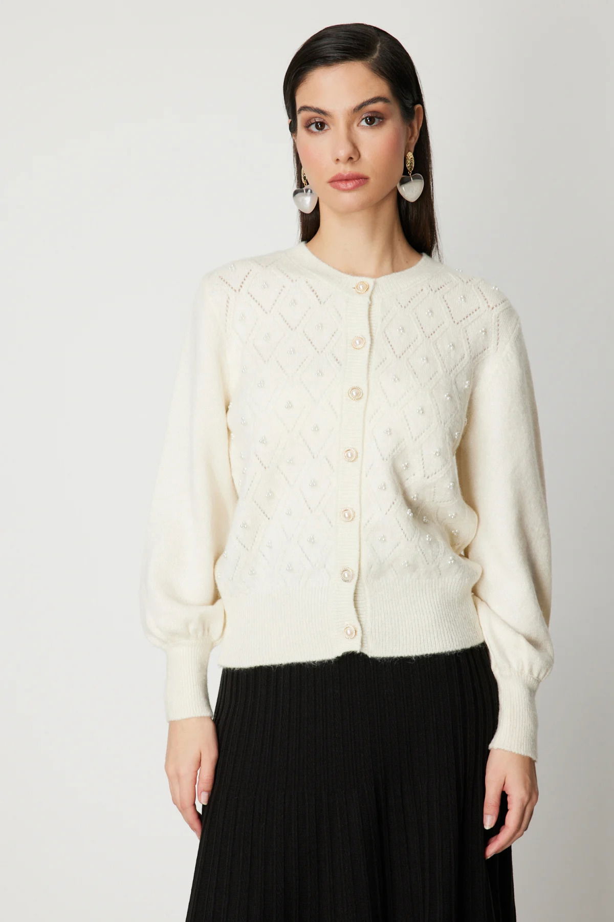 On Kadın İnci Düğmeli Triko Hırka 63922 Ekru