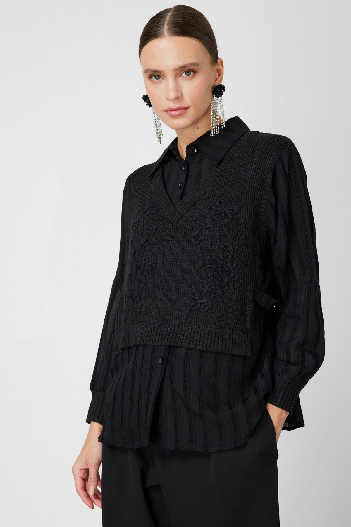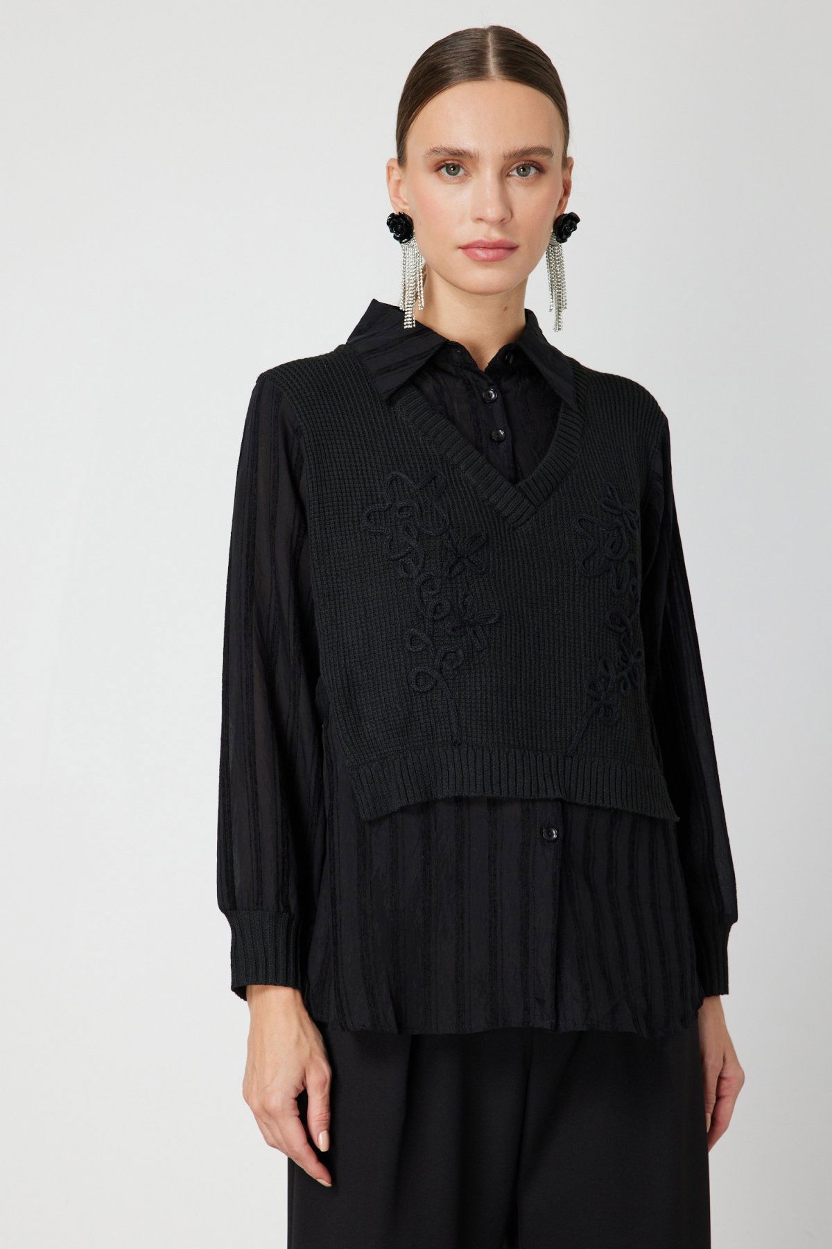 Detay: Uzun kollu, gömlek yakalı tasarımıyla şıklığı ön plana çıkaran bu astarsız polyester gömlek, hafif yapısıyla gün boyu konfor sunar. Dayanıklı kumaşı sayesinde kırışmaya karşı dirençli olan ürün, hem günlük kullanım hem de ofis stiline uyum sağlar;