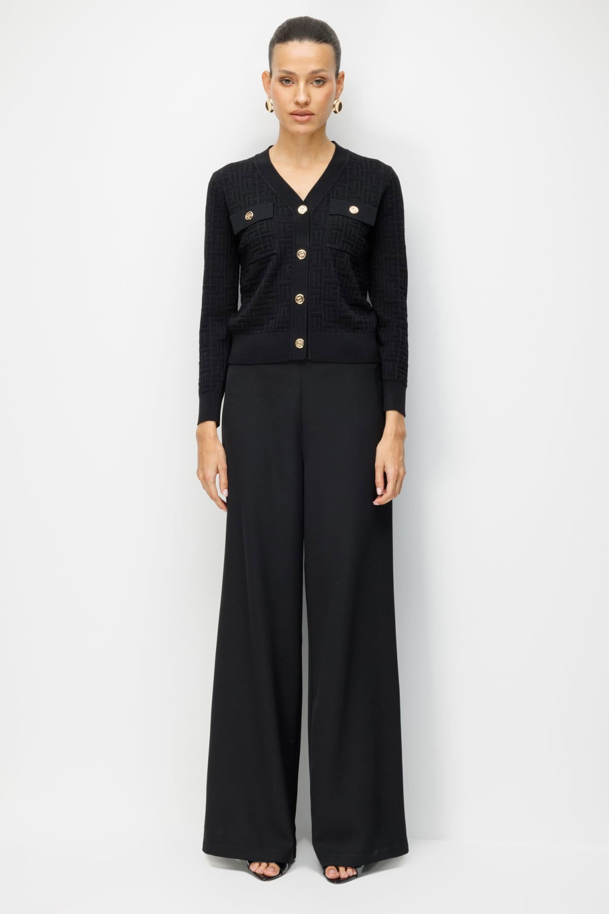 On Kadın Kapak Cepli V Yaka Hırka 70913 Siyah
