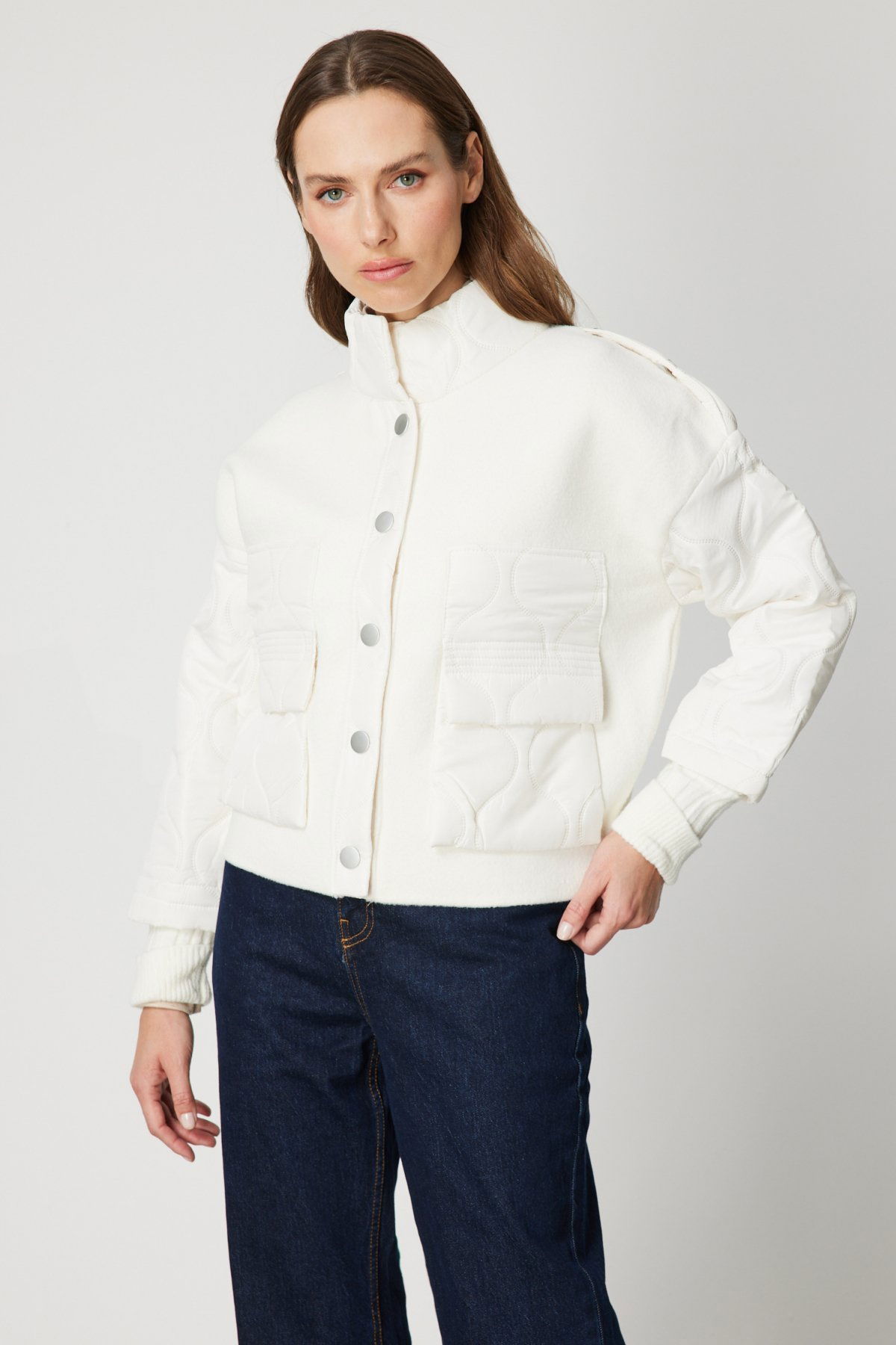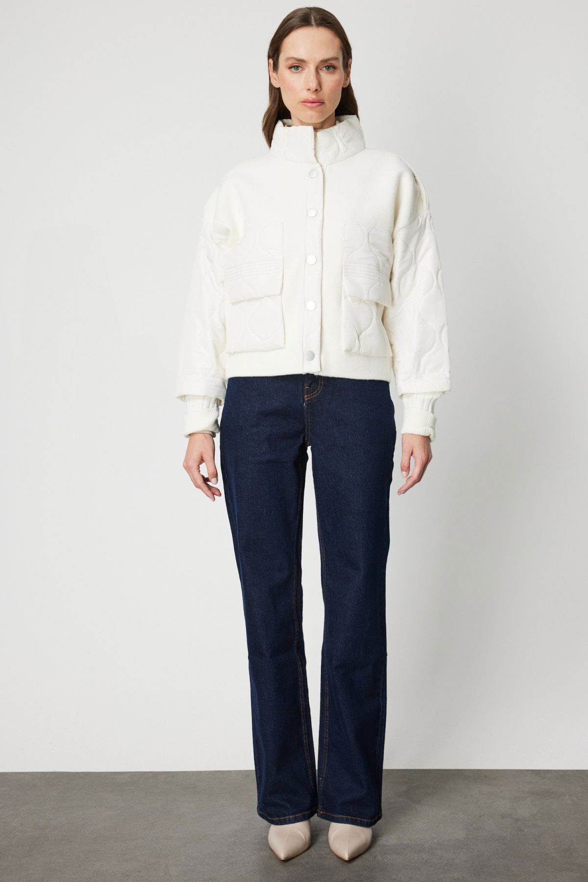 On Kadın Kapitone Detaylı Kapak Cepli Mont 60711 Ekru