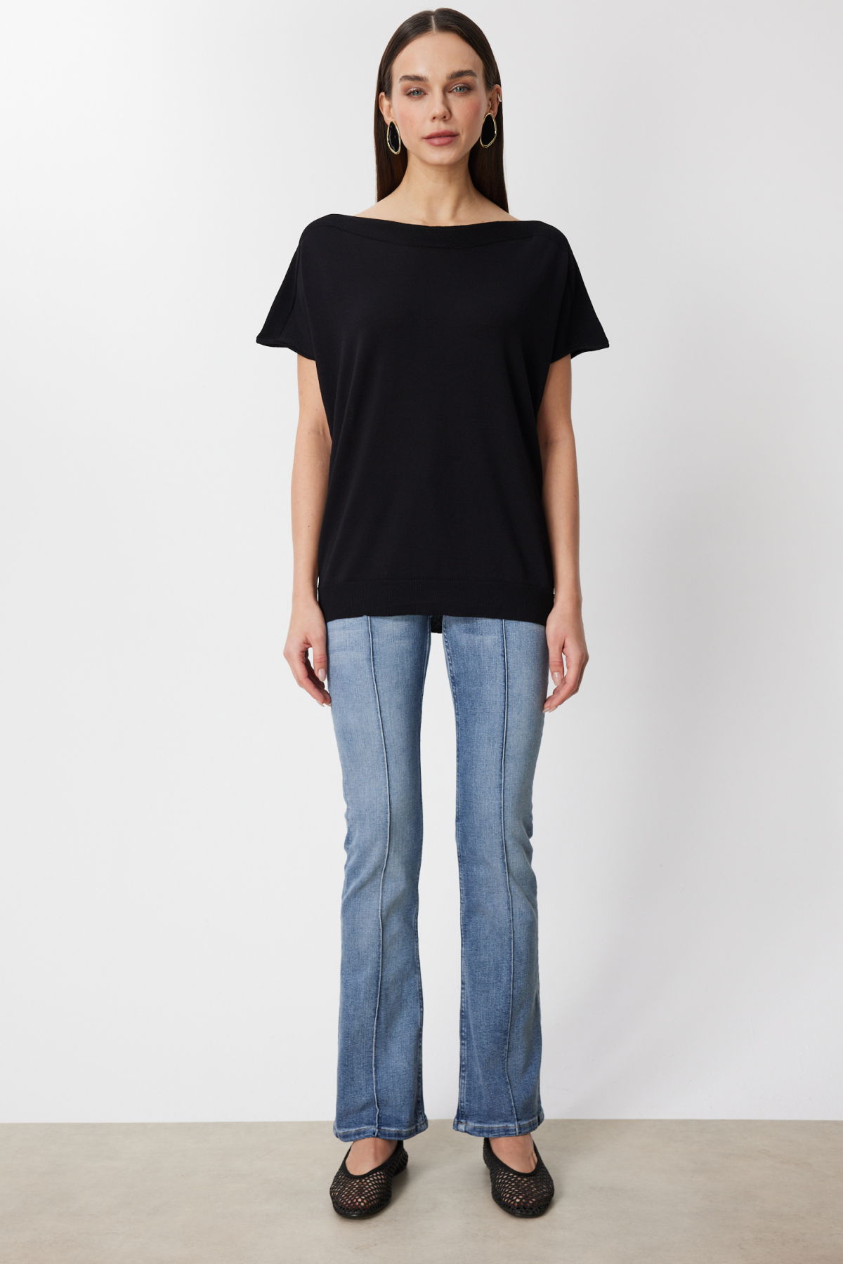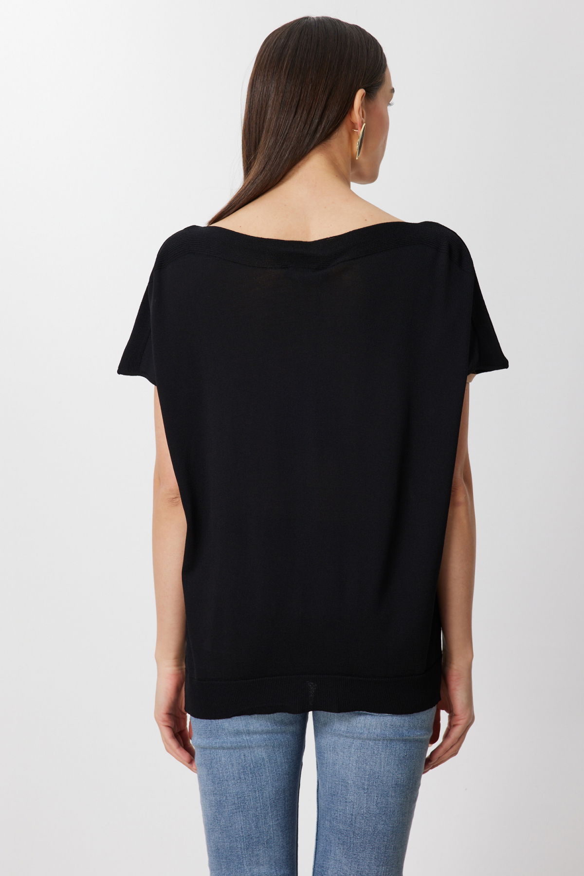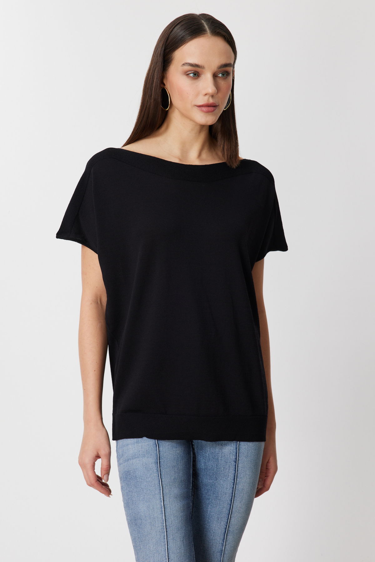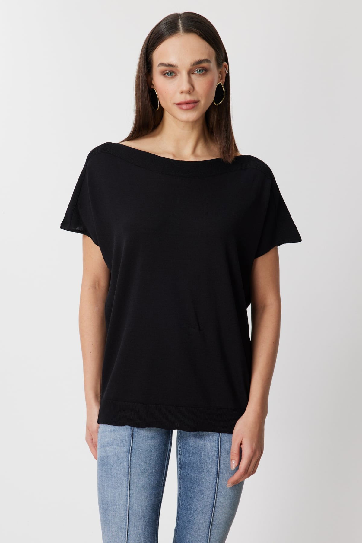 On Kadın Kayık Yaka Kısa Kollu Bluz 76370 Siyah